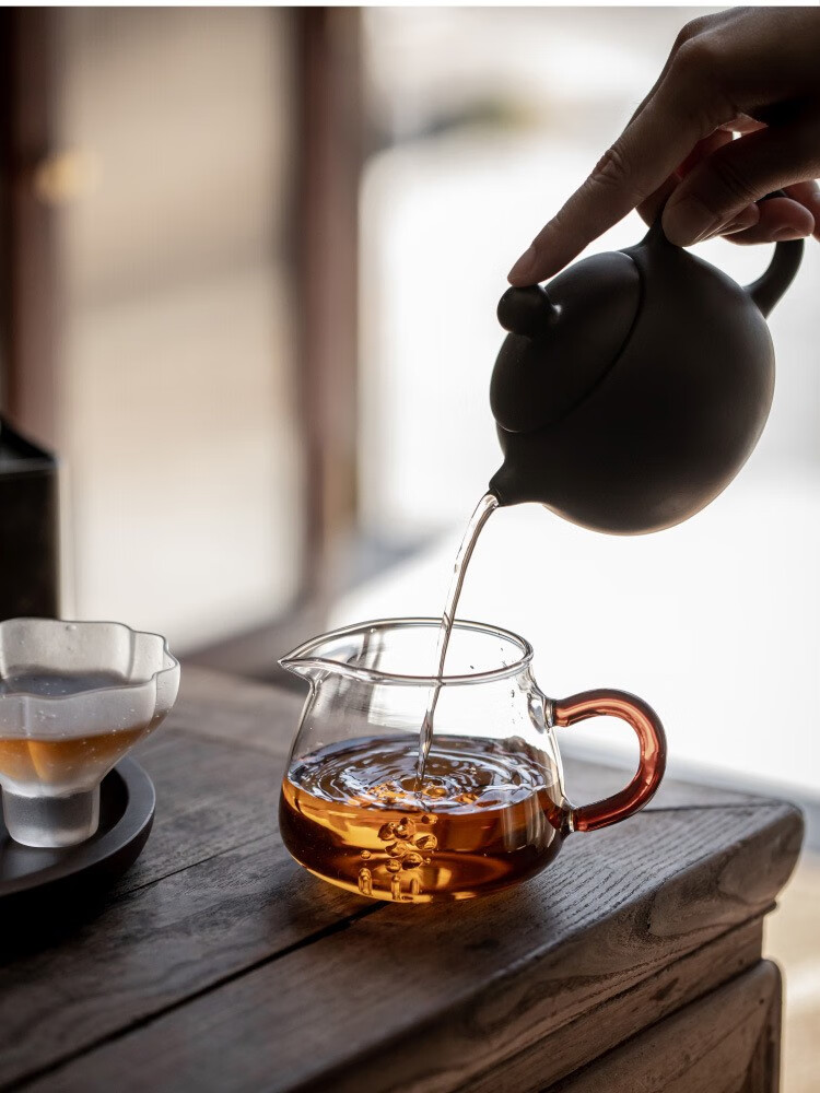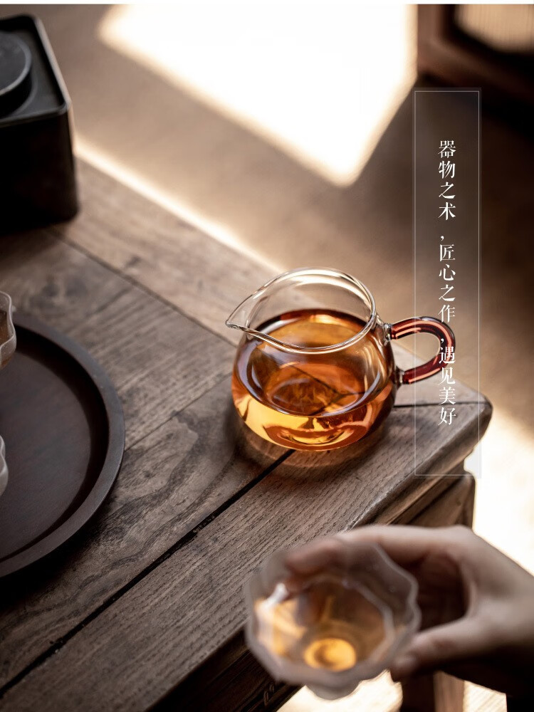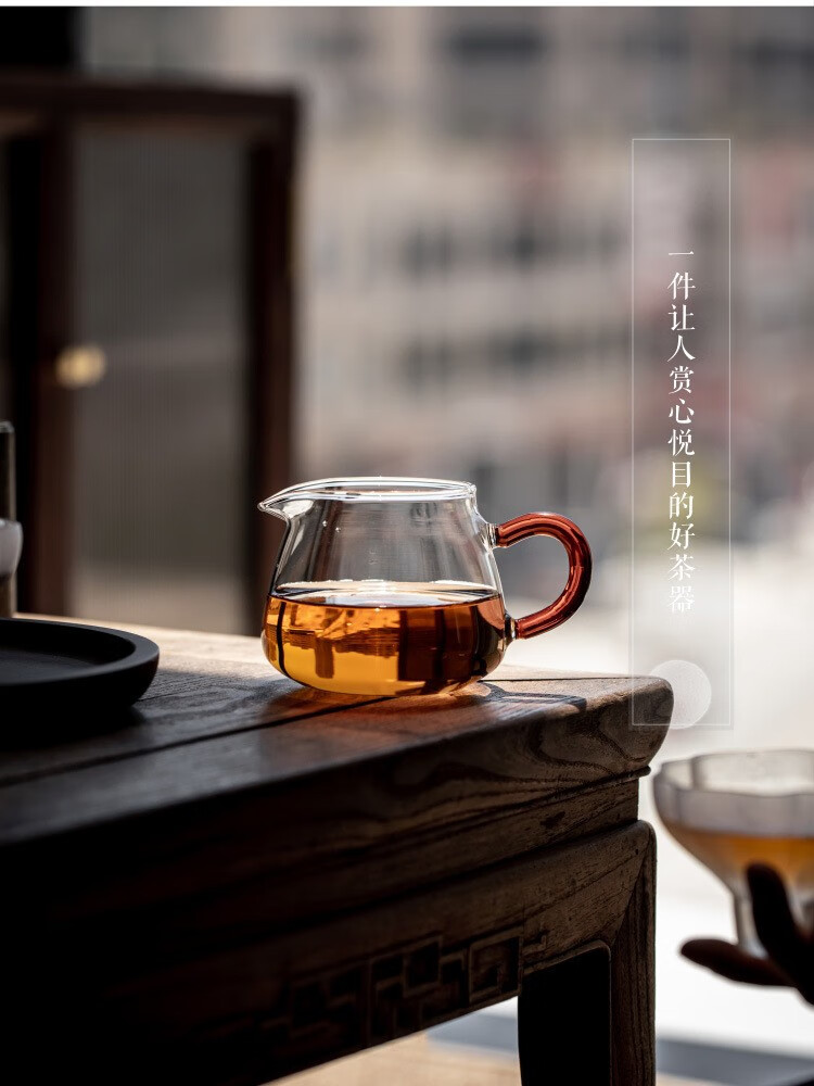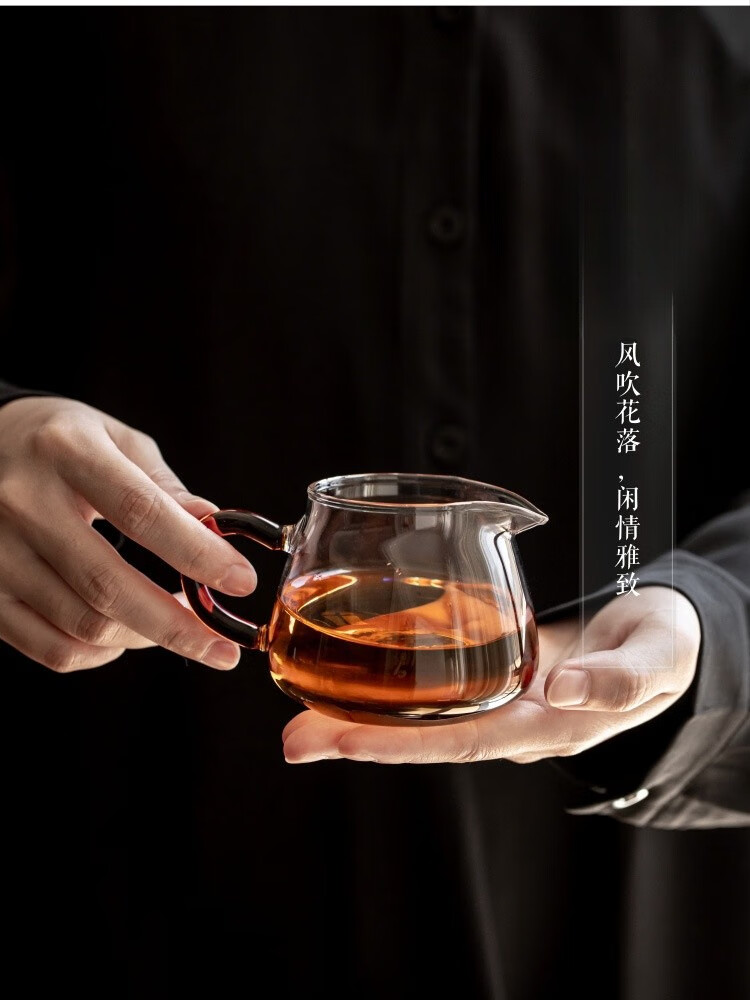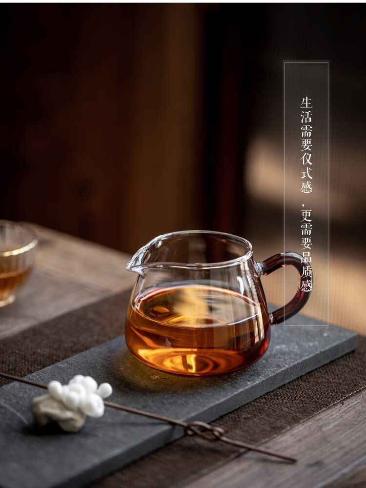 Gudong Xiaoming glass side handle fair cup tea filter set high temperature resistant male cup tea divider thickened tea set accessories pouring tea yellow handle 200ML