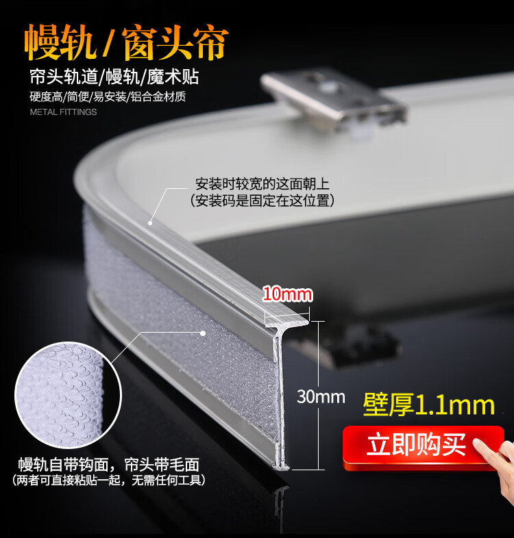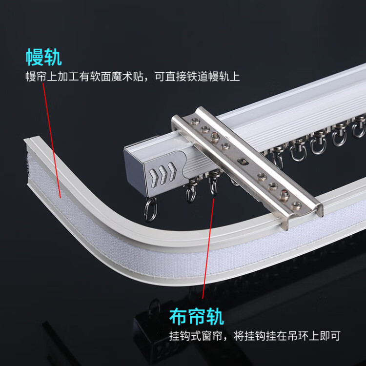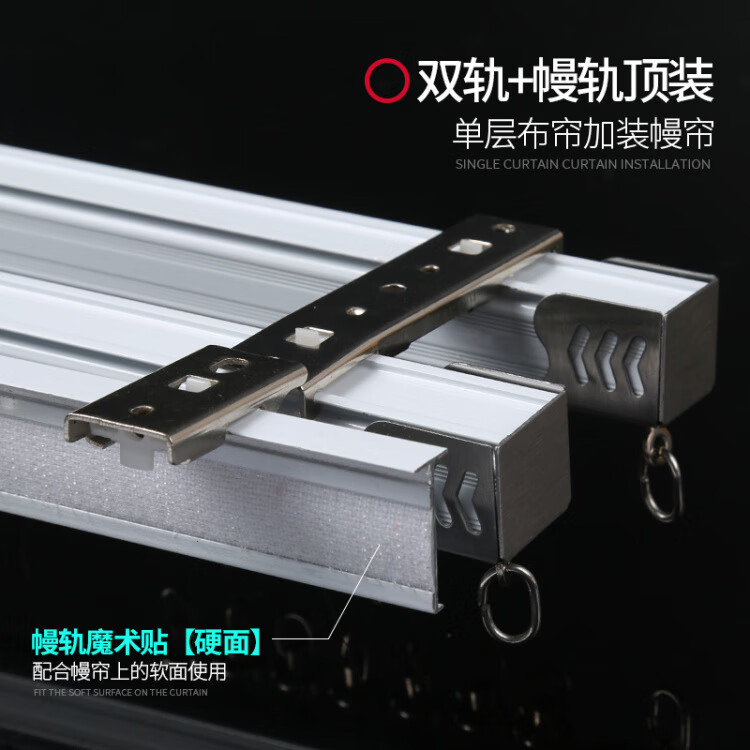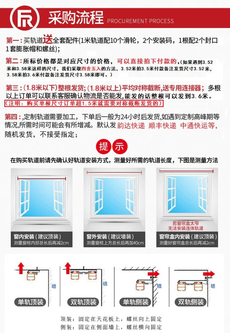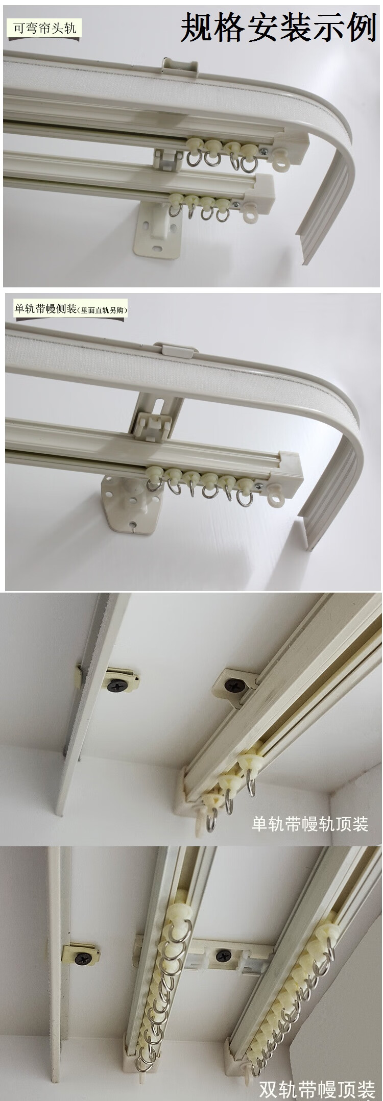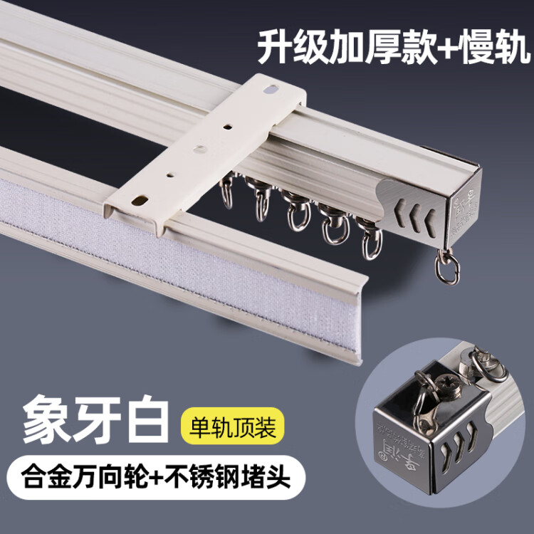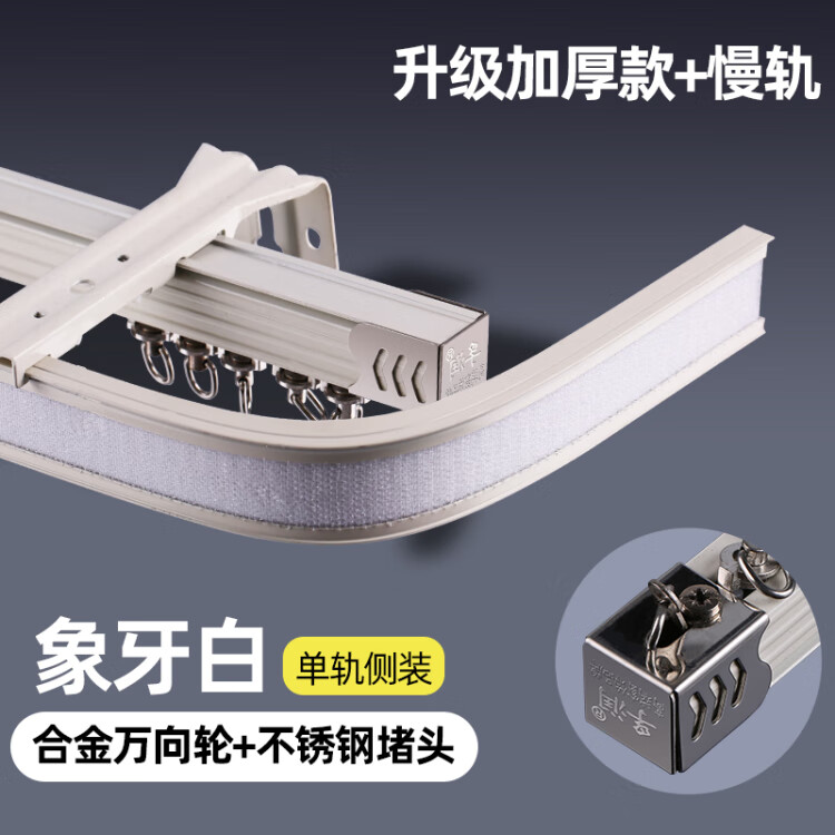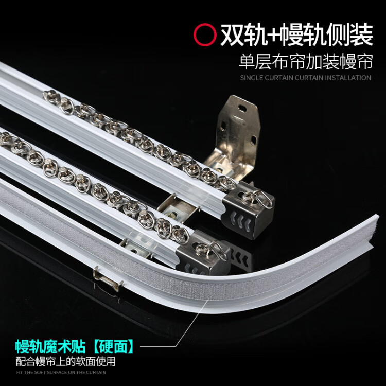 Curtain track with curtain track Curtain track Curtain sticker letter sticker Curtain eyebrow curtain head Velcro track Single - Upgraded thickened straight track single track + curtain rail side installation 1.9-meter