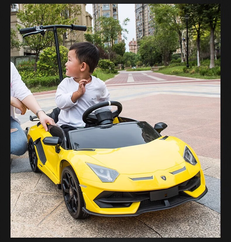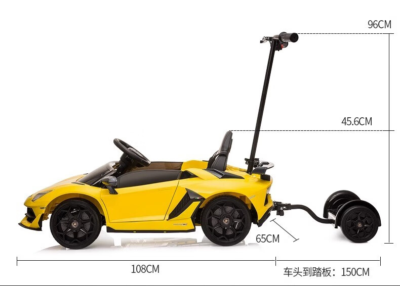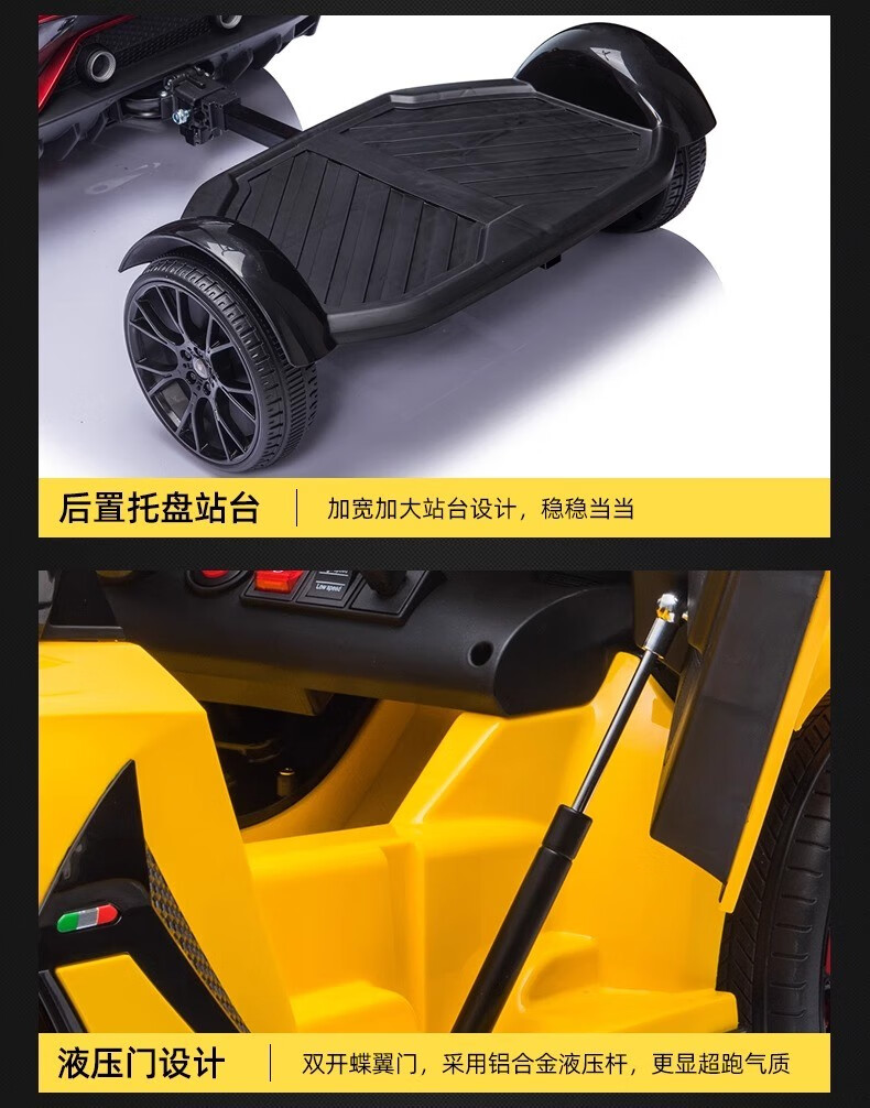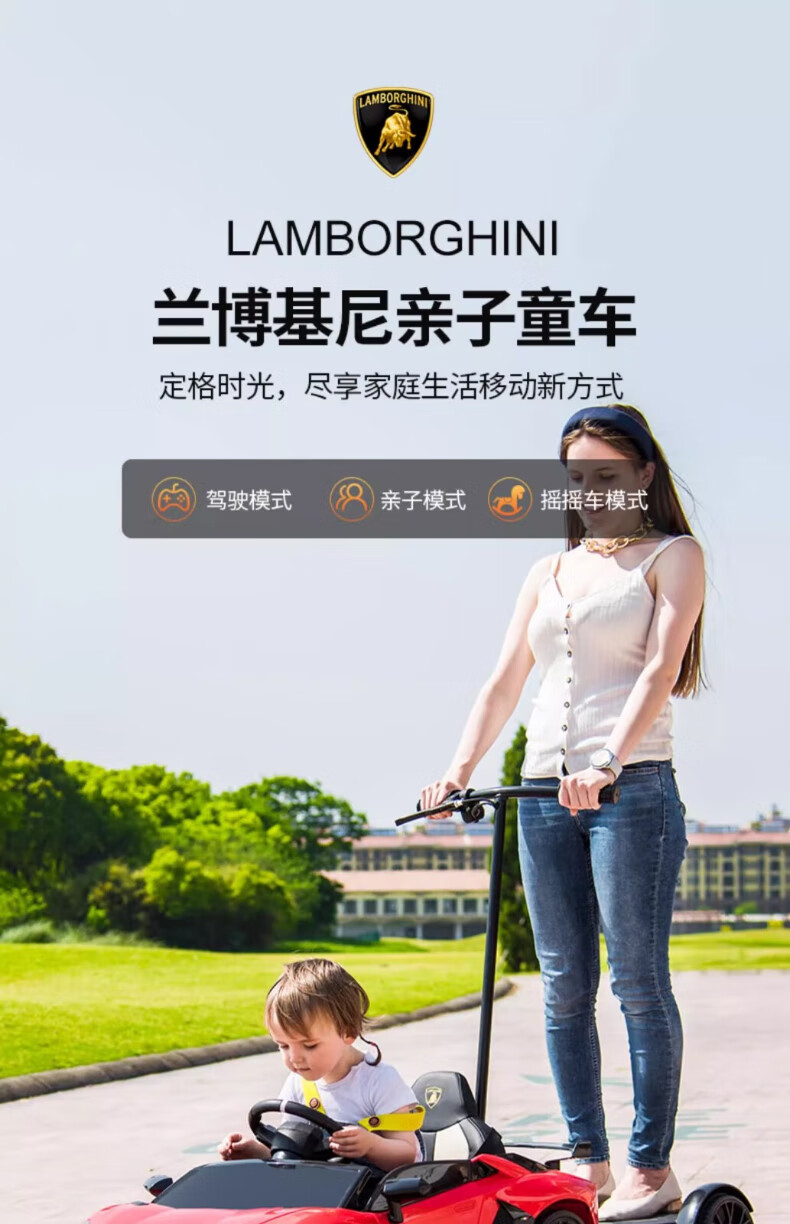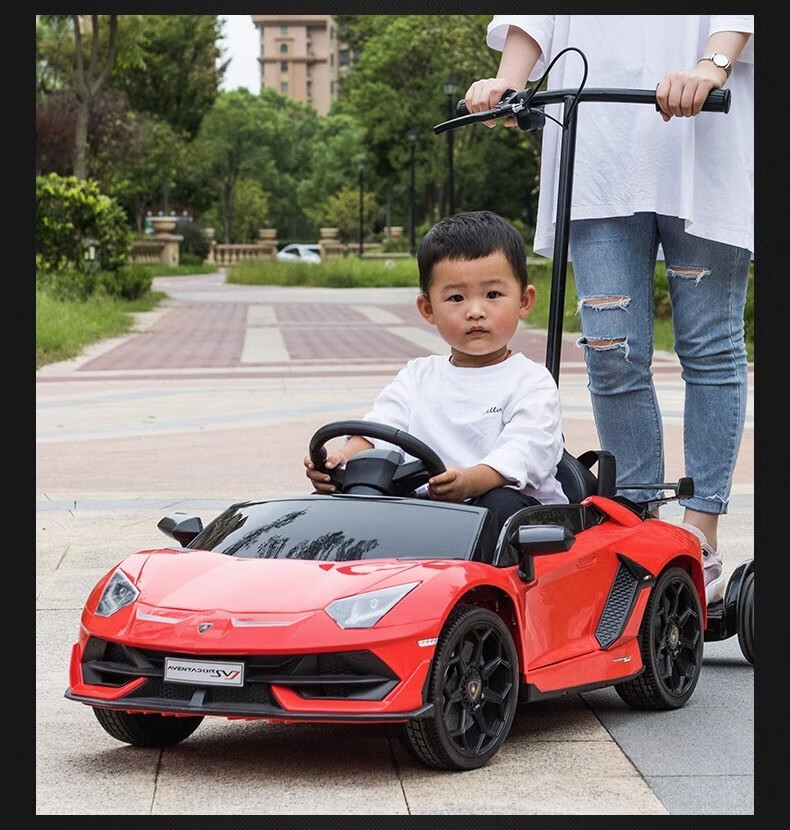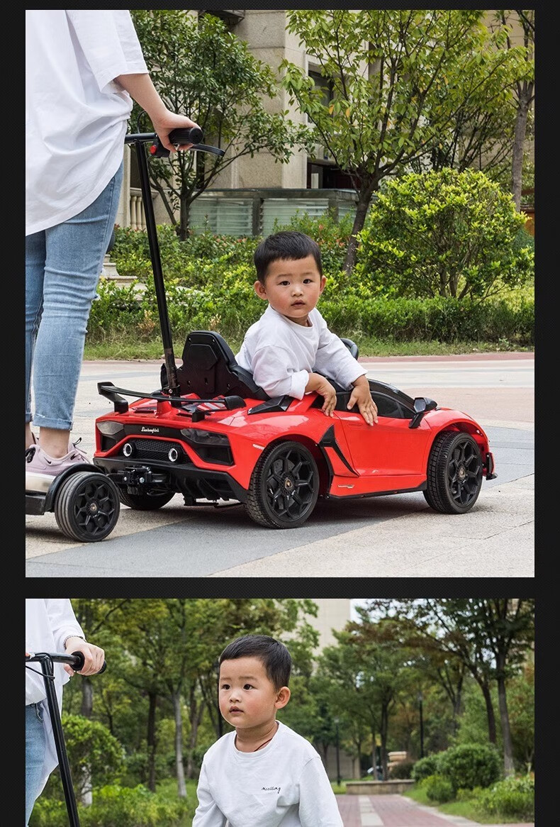 Haolaixi Lamborghini children's electric car four-wheel car remote control toy car can sit a child with a swing baby stroller top with red + adult standing plate + soft wheel leather seat + remote control