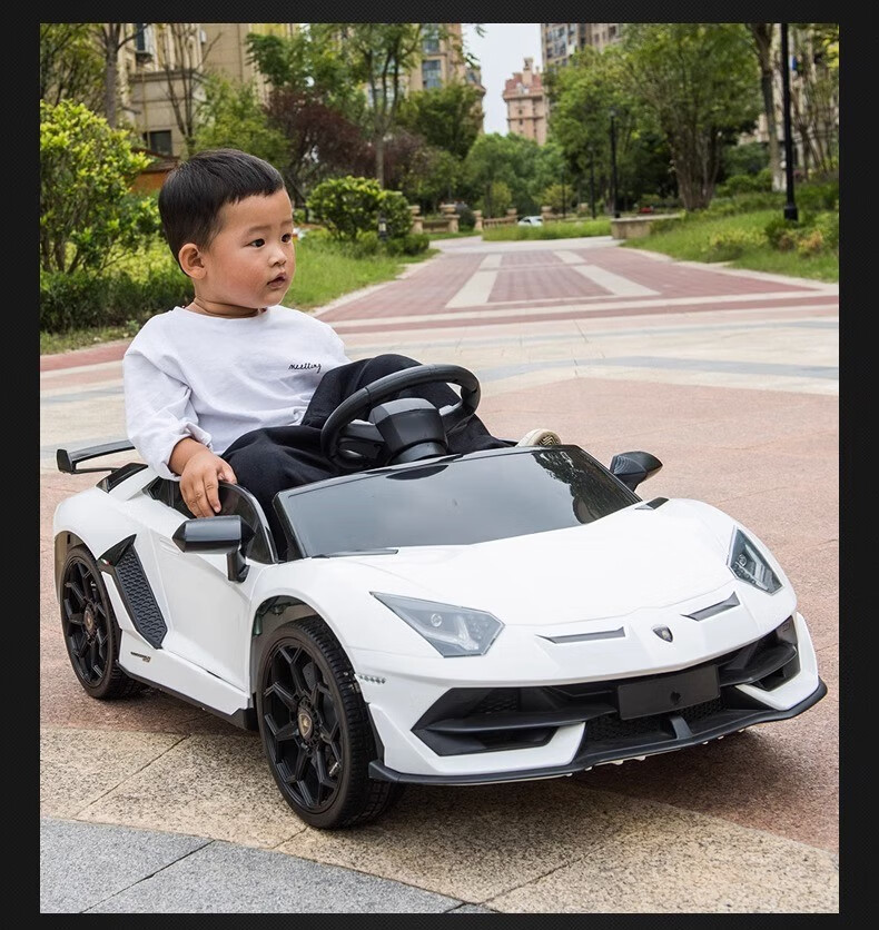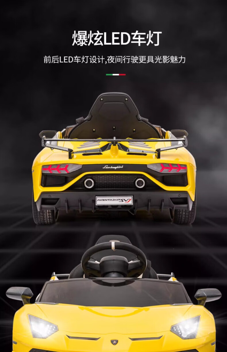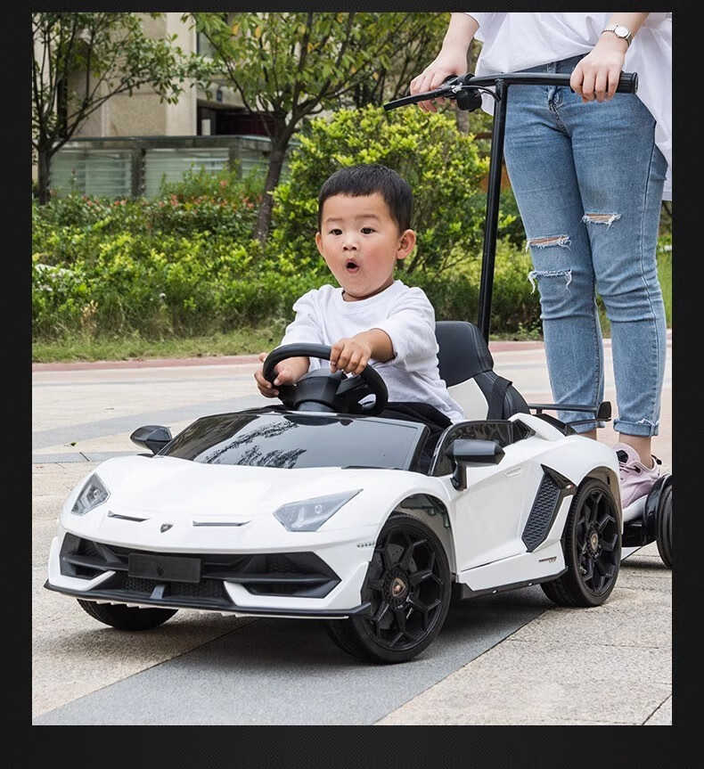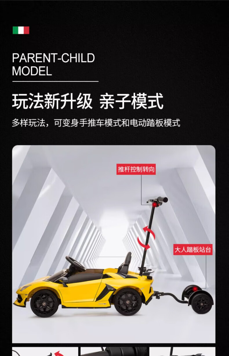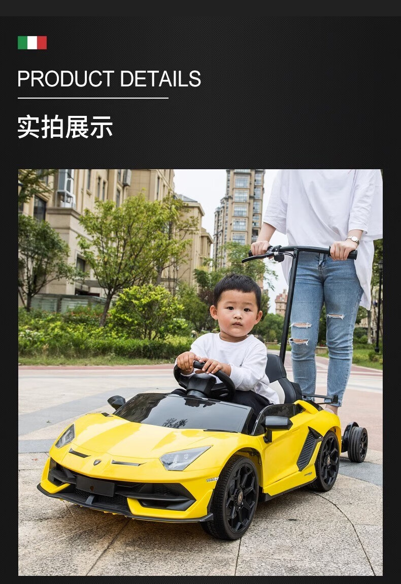 Haolaixi Lamborghini children's electric car four-wheel car remote control toy car can sit a child with a swing baby stroller top with red + adult standing plate + soft wheel leather seat + remote control