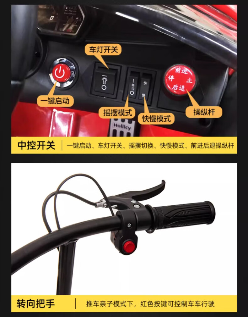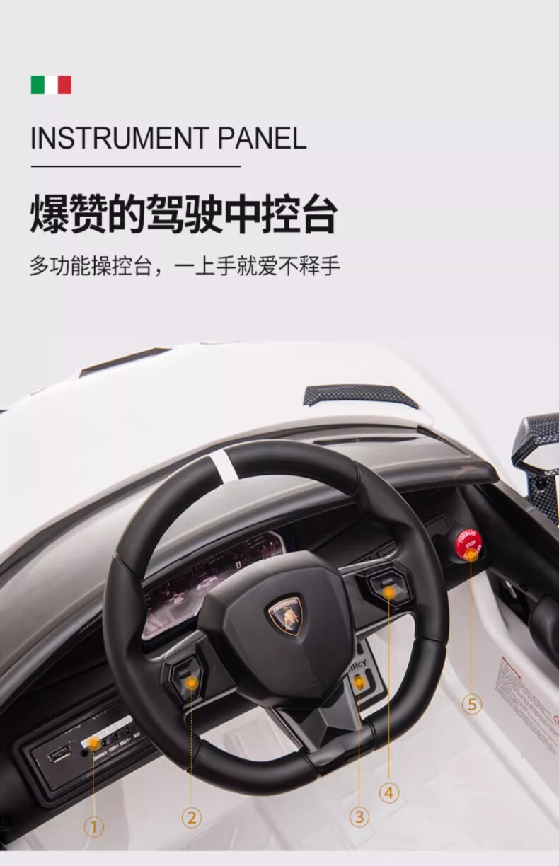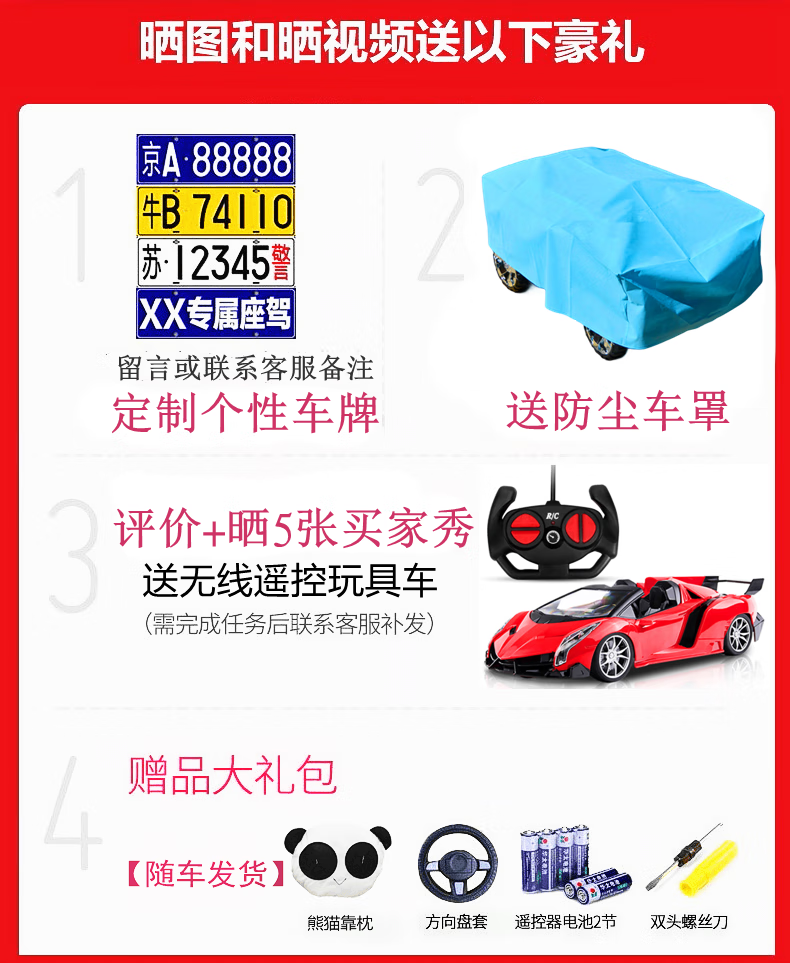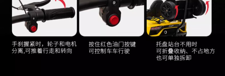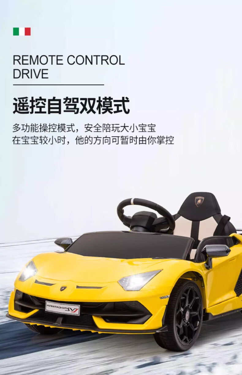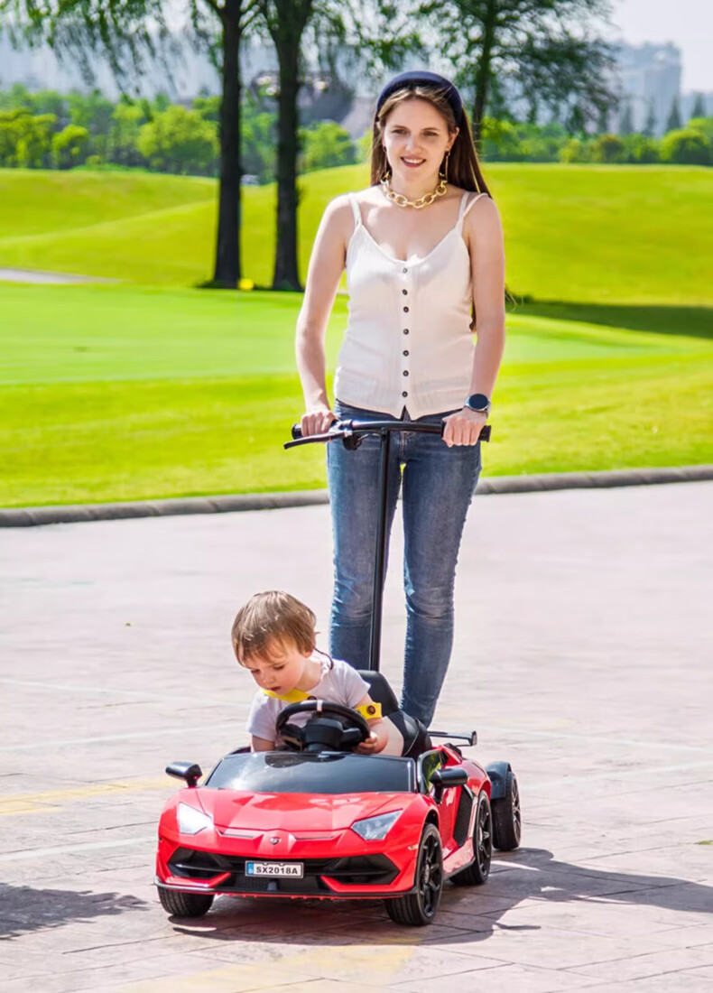 Haolaixi Lamborghini children's electric car four-wheel car remote control toy car can sit a child with a swing baby stroller top with red + adult standing plate + soft wheel leather seat + remote control