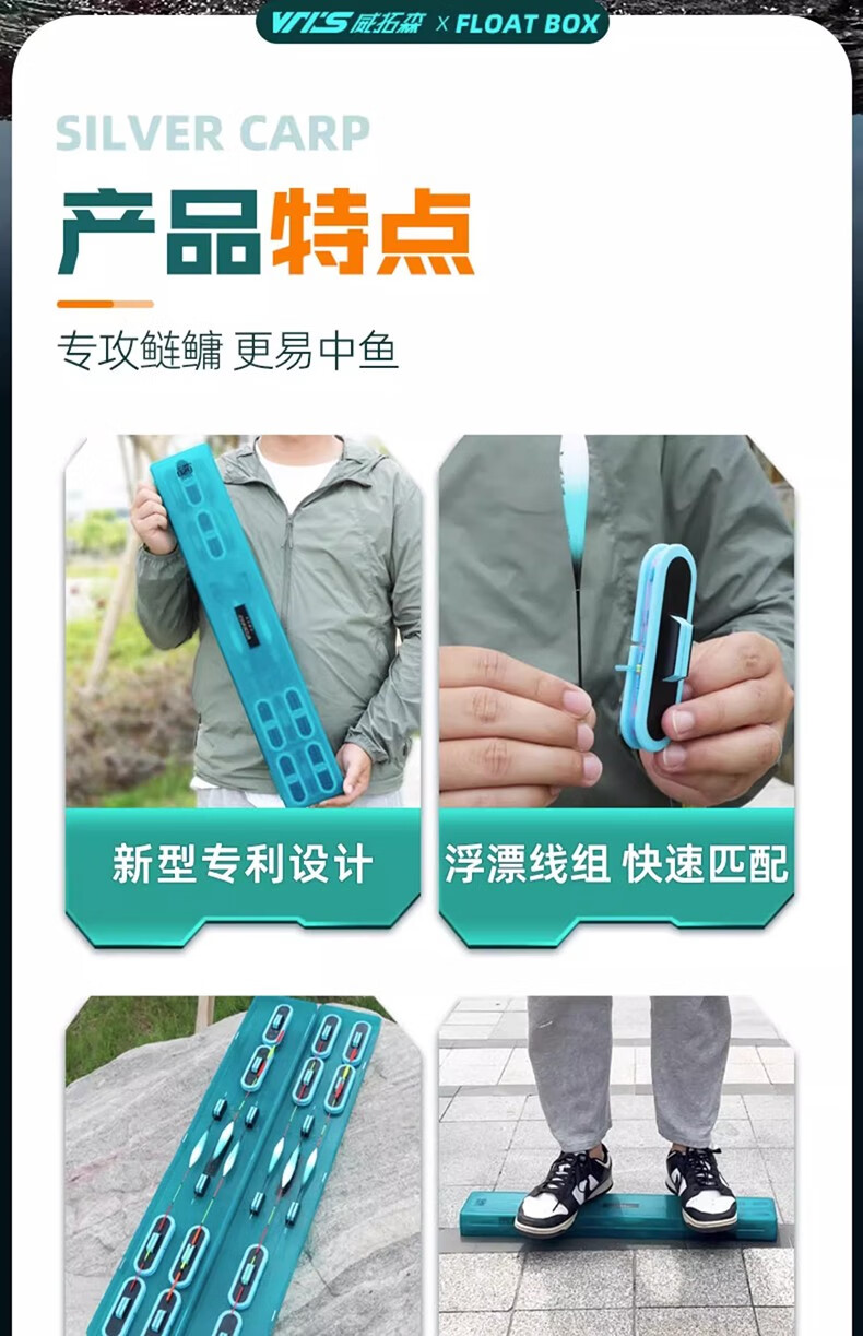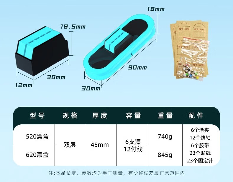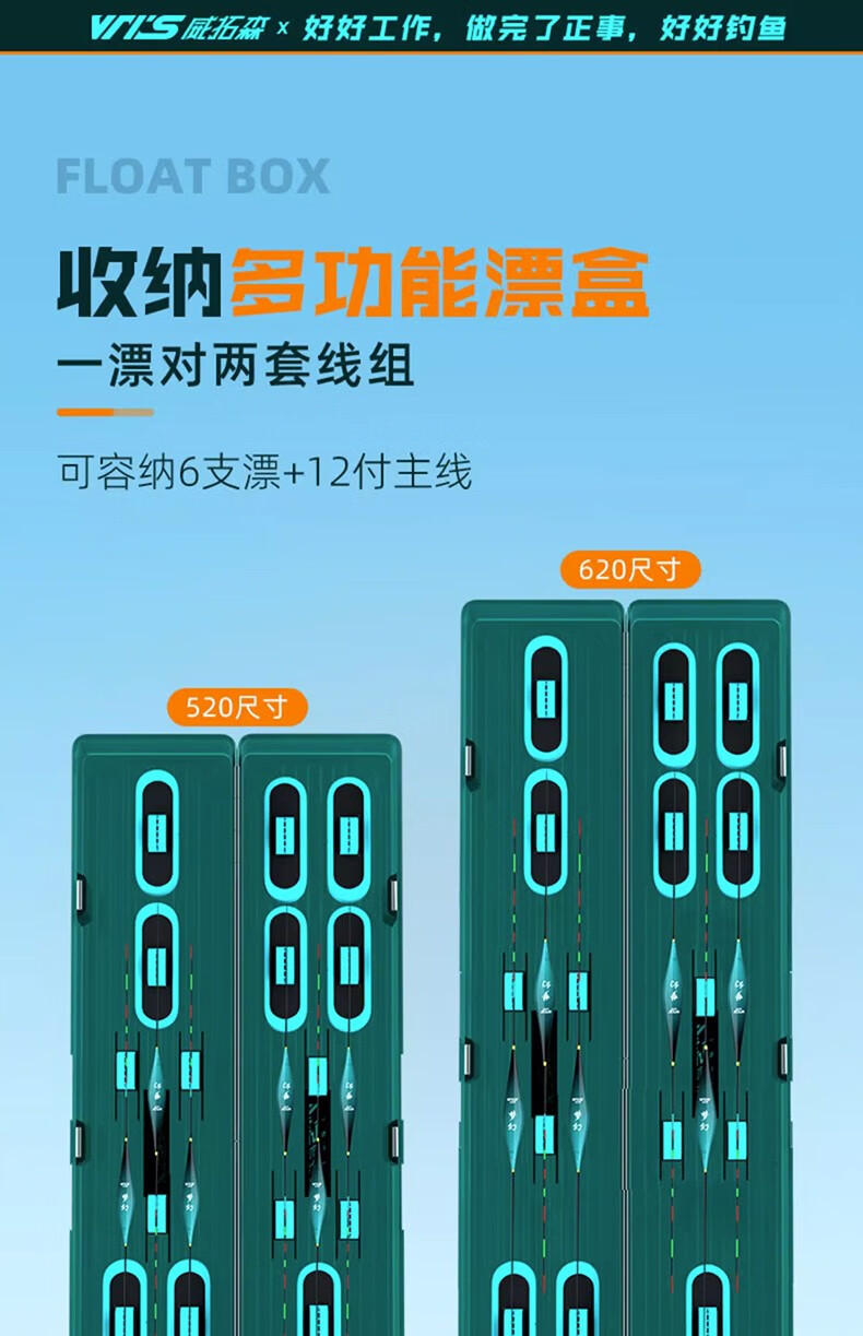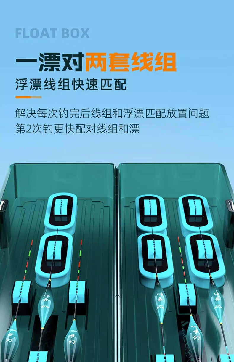 Weituosen float box multi-functional large-capacity main line box two-in-one double-layer fish float box float box fish float storage box 52CM dream blue 12 spools + 6 float clips