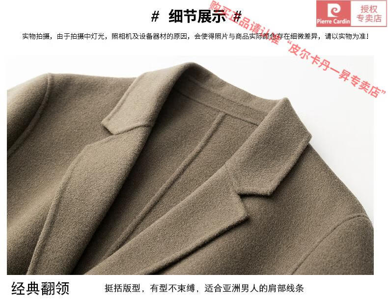 Pierre Cardin woolen woolen coat men's short spring and autumn thickened double-sided wool coat high-end British windbreaker men's green gray S 165