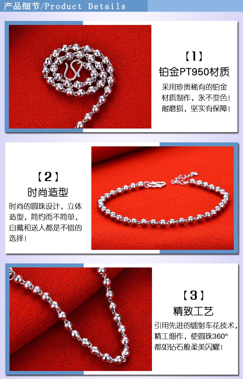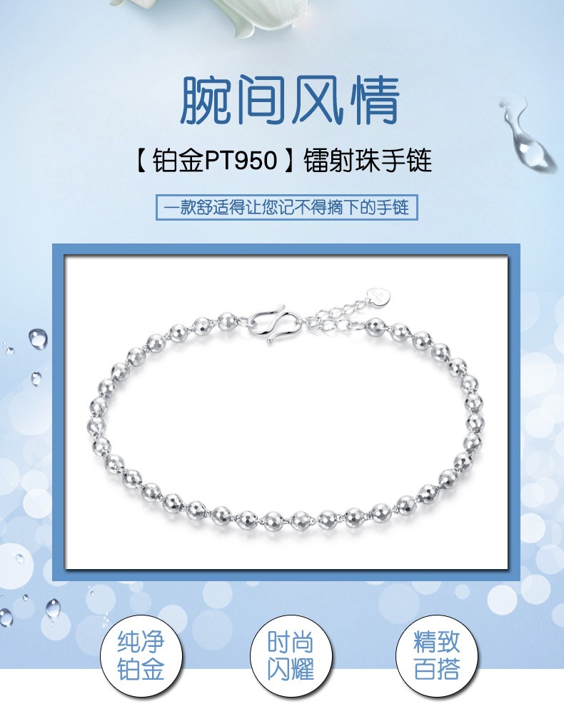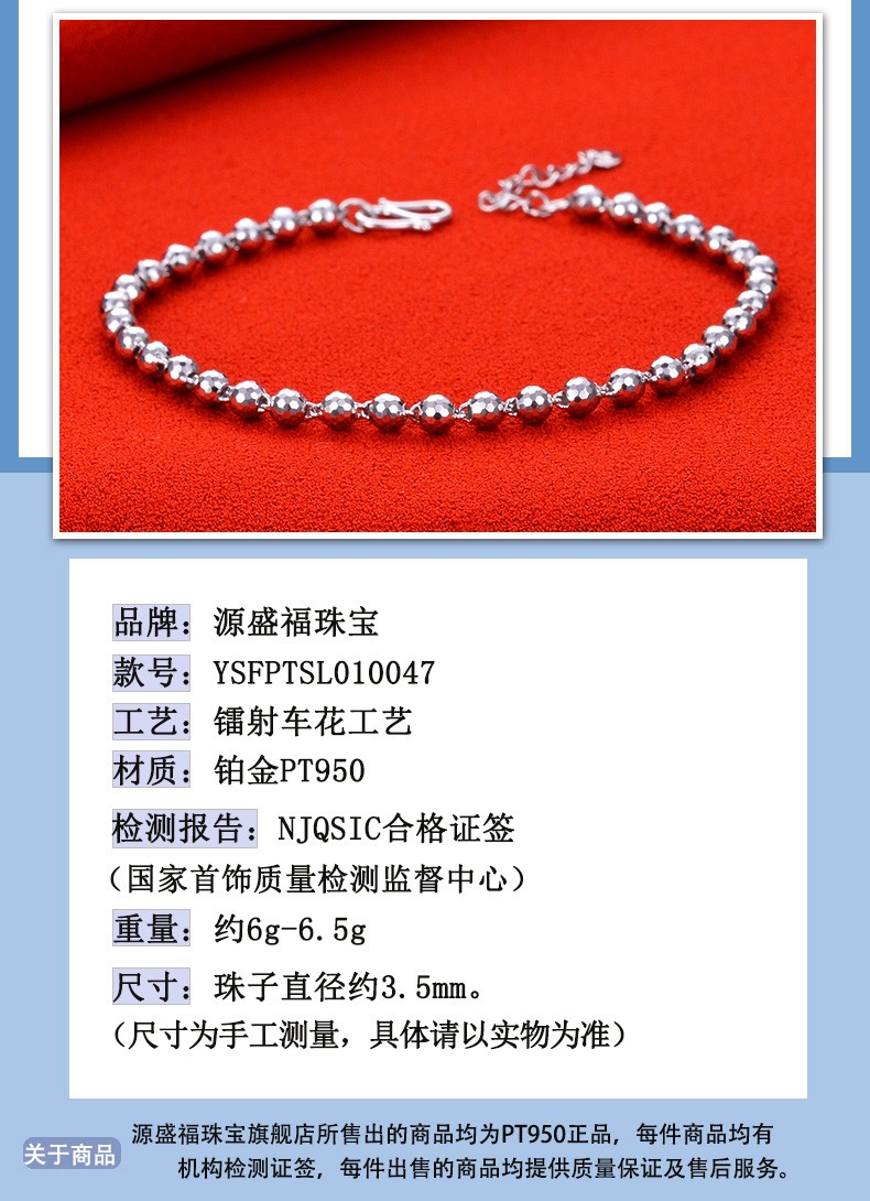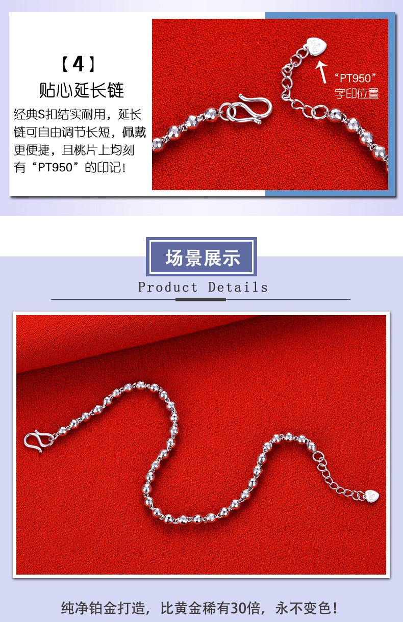 Yuan Shengfu's new PT950 fashionable laser beaded platinum bracelet, platinum laser bead jewelry for women, 6.57g, length 16-.5-18.5CM adjustable