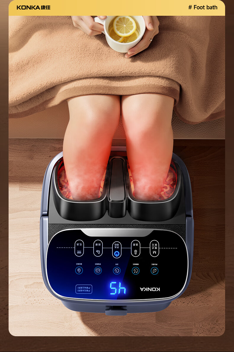 康佳【新年礼物】足浴盆杀菌泡脚桶加热全自动按摩器老人恒温电动一体洗脚盆2025熏蒸家用生日礼物 【人体工学杀菌高深款】智能定时恒温+遥控+加高加深 【官方指定高端系列】