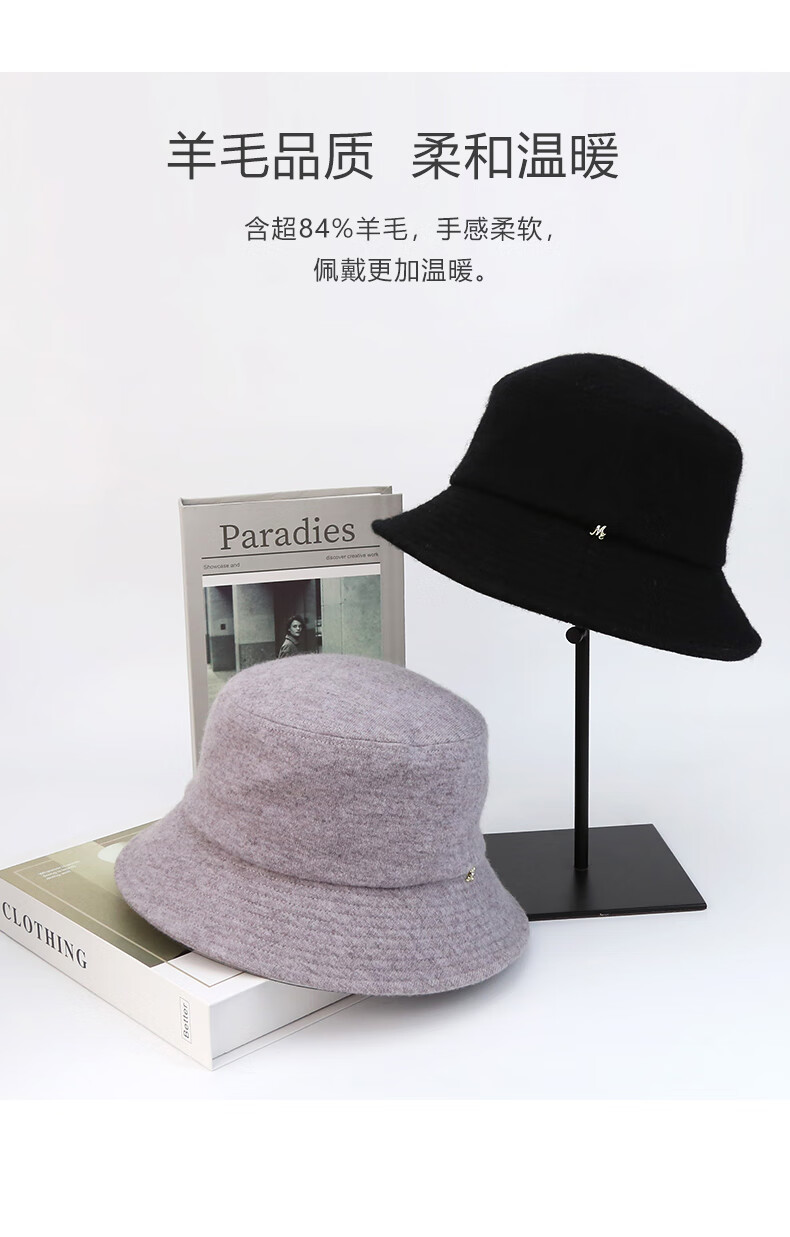 Maria Gucci (MARJA KURKI) warm wool hat for women in winter, basic hat, flat top fashionable casual hat, gray camel