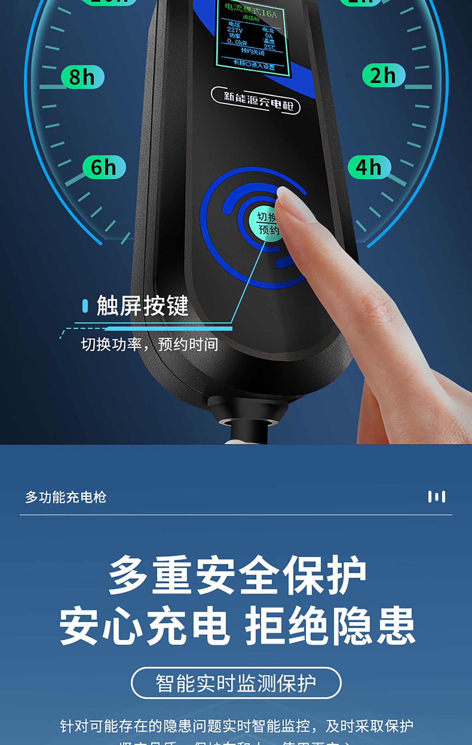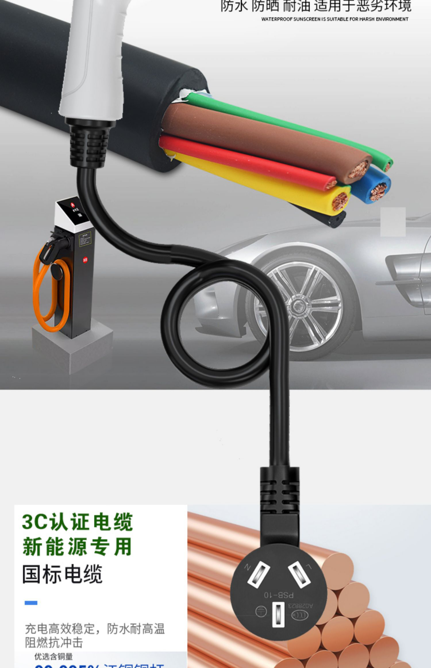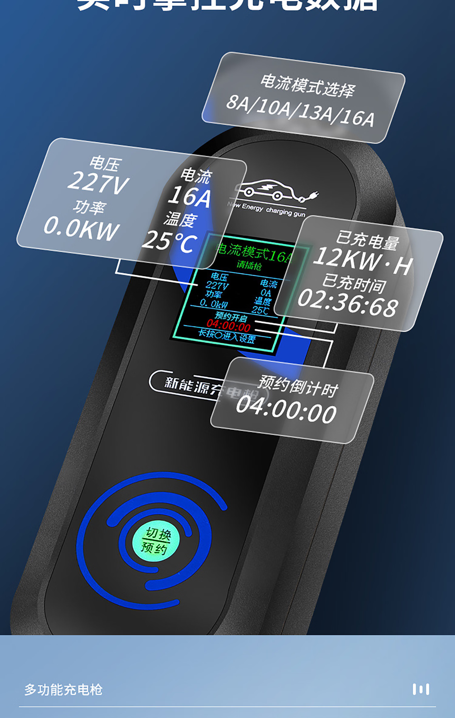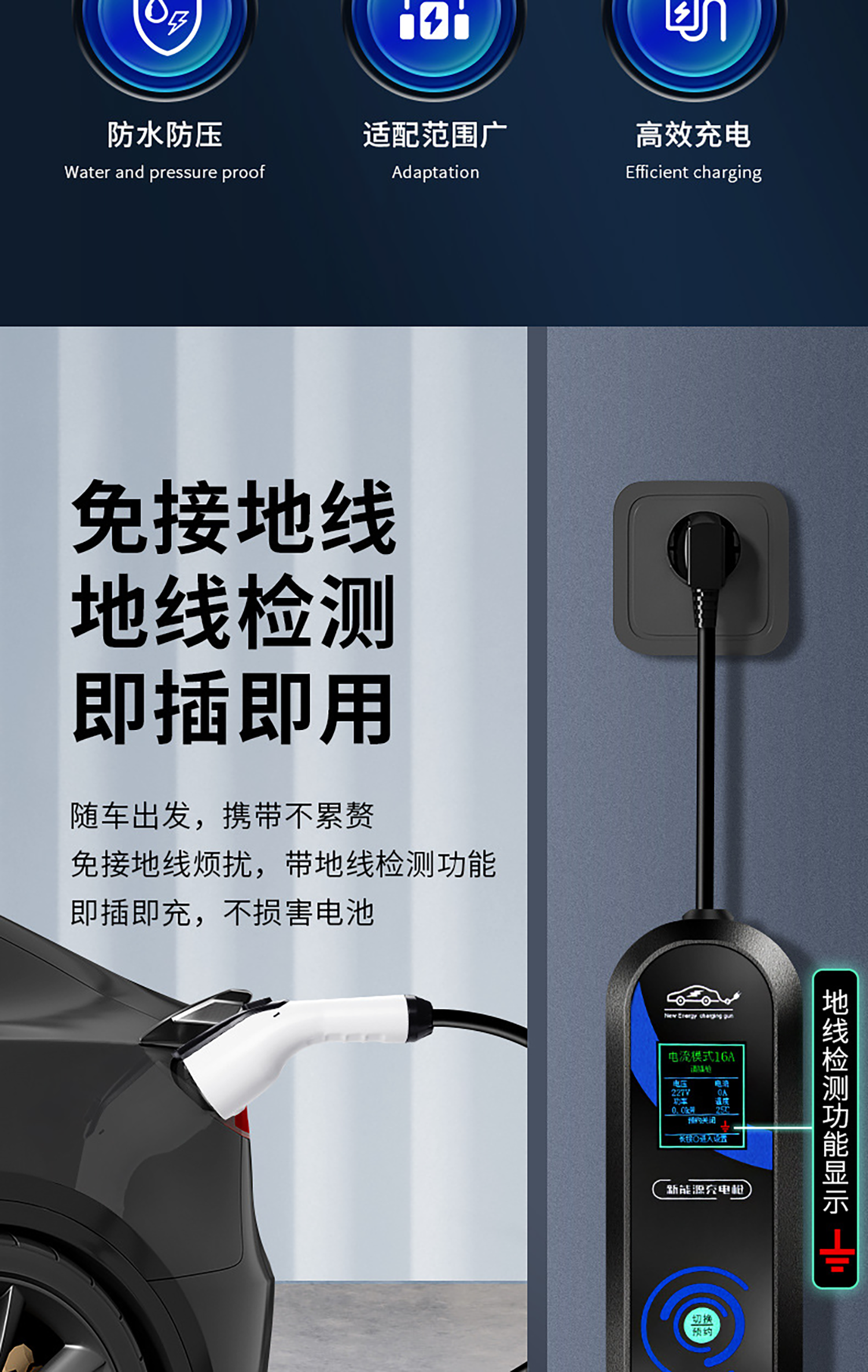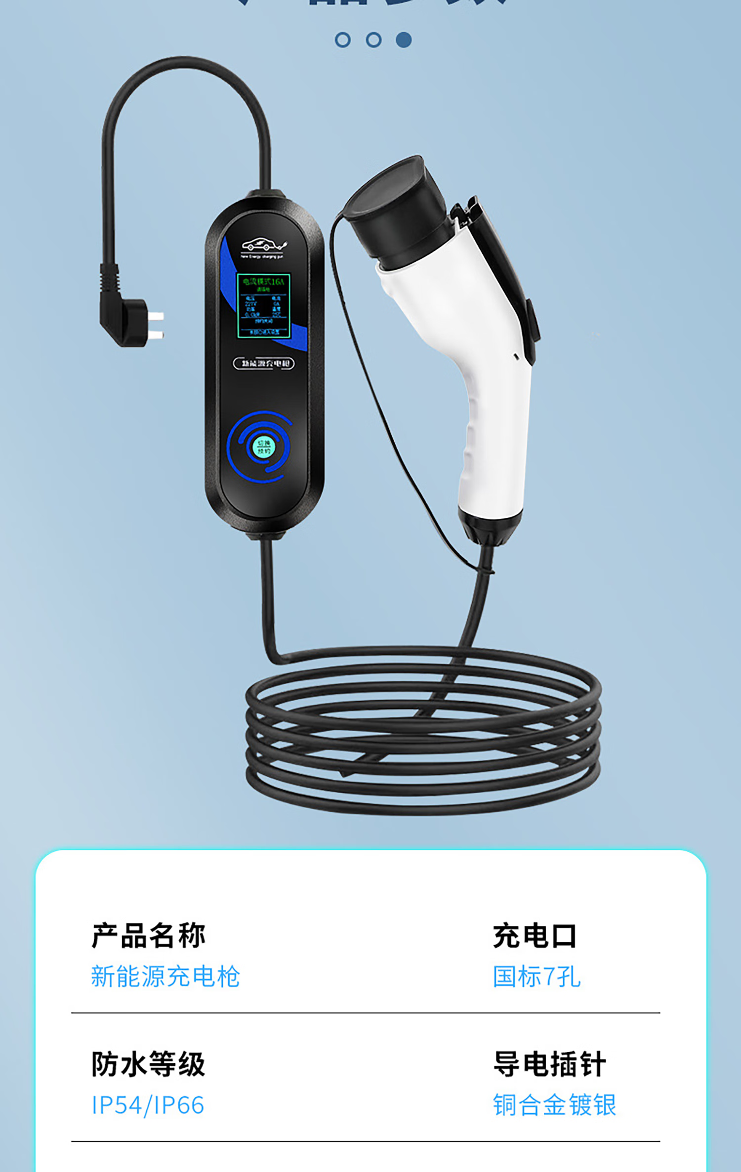 New energy electric vehicle charging gun 16A slow charging 32A fast charging 3.5/7KW grounding-free 220V household AC household portable car charger pile standard model-Shaanxi Automation Home Appliances Niu No. 2 8/16A grounding-free-3300W-3 meters
