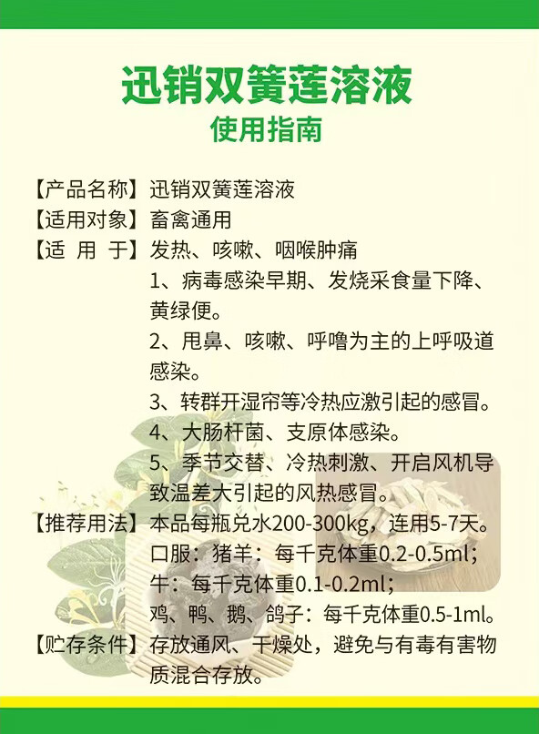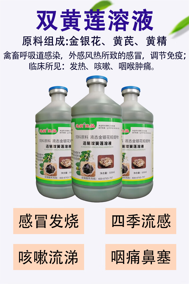 Fast Retailing New Shuanghuanglian Solution Veterinary Feed Additive for Pigs, Cattle, Sheep, Chickens, Ducks, Goose, Pigeons, Cold, Fever, Cough, Respiratory Diseases, 1 Bottle, 500ml, General Purpose for Poultry and Livestock #No Gift