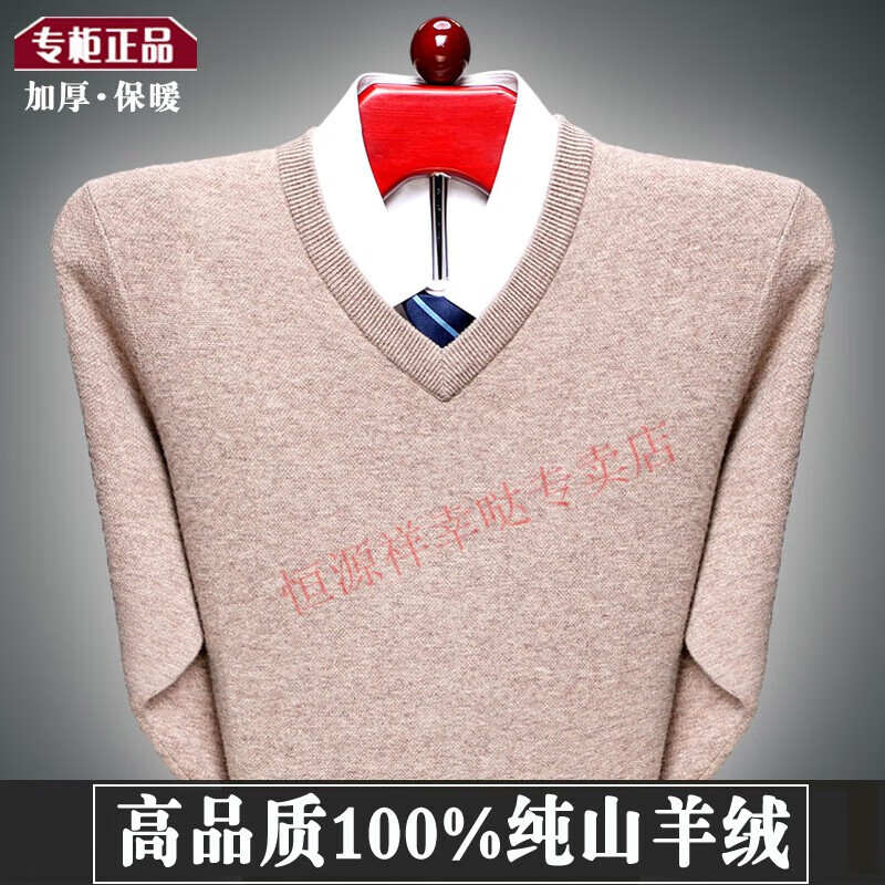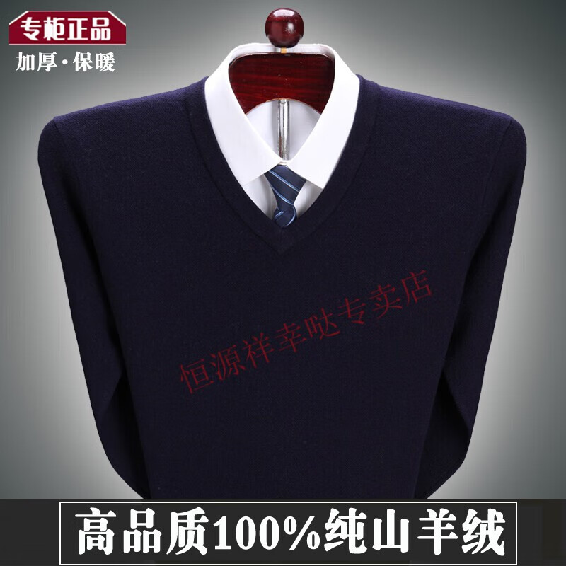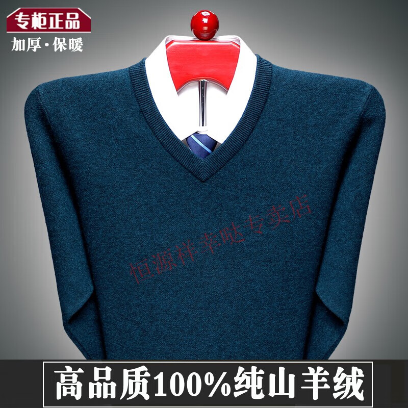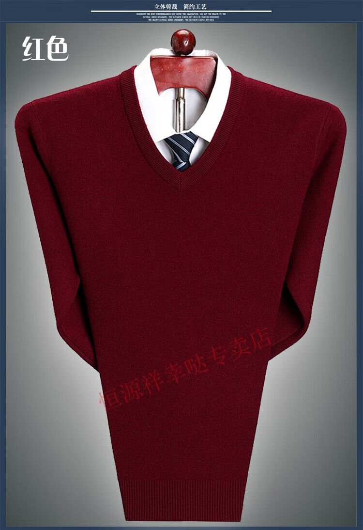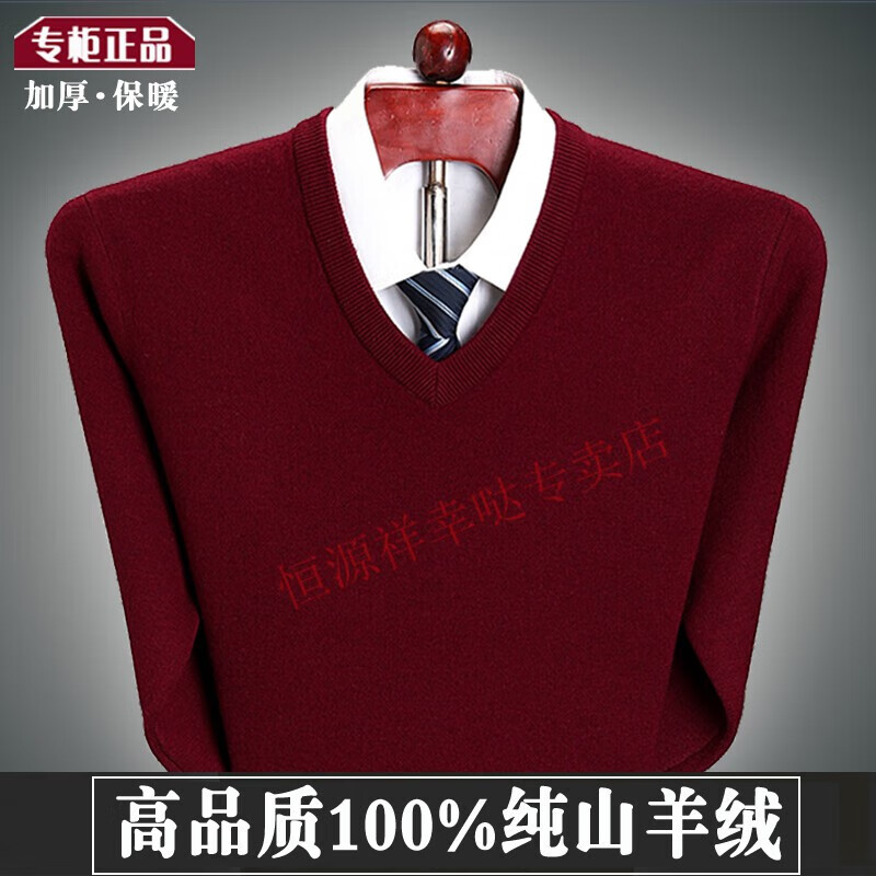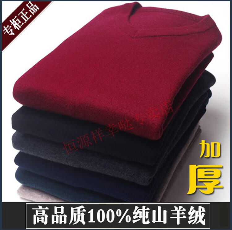 Hengyuanxiang 100 pure wool fleece men's winter V-neck sweetheart collar large size thickened bottoming sweater sweater for middle-aged men red - pure new 100 high-end brand 180 XXL - pure new 100 high-end brand
