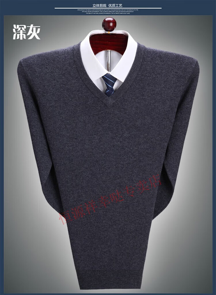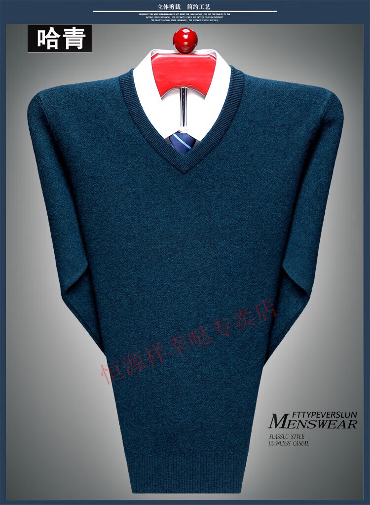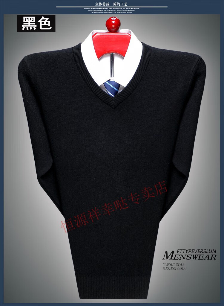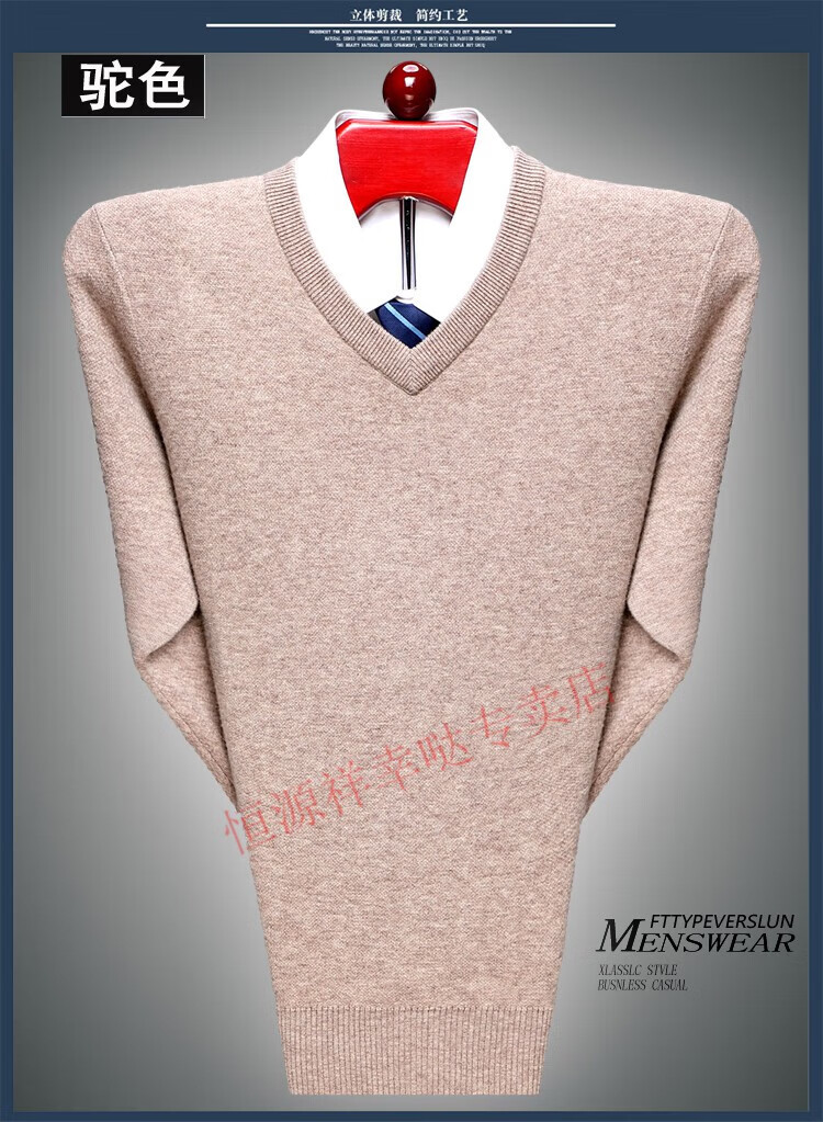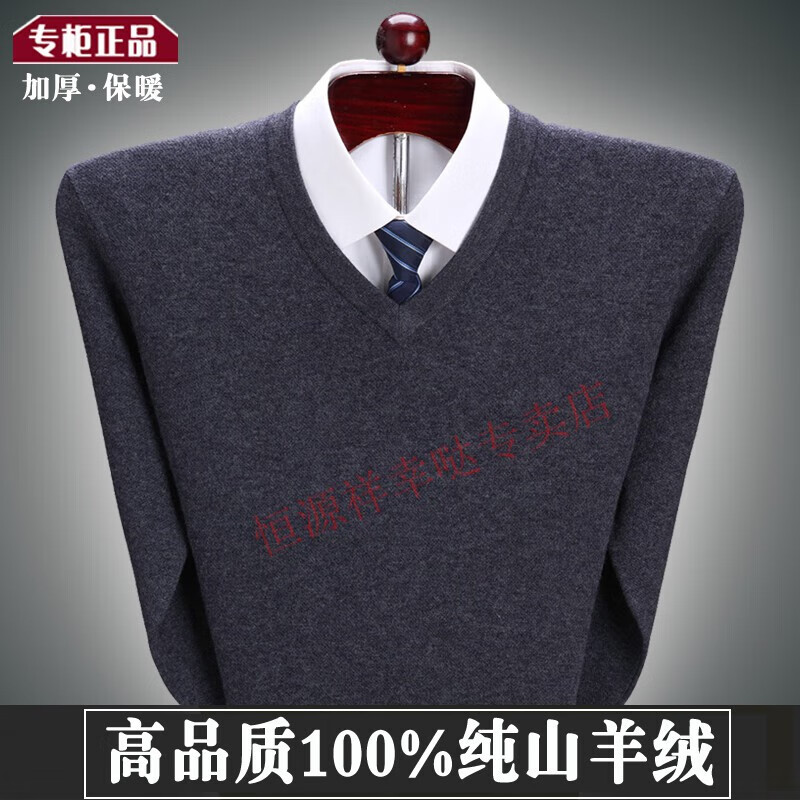Hengyuanxiang 100 pure wool fleece men's winter V-neck sweetheart collar large size thickened bottoming sweater sweater for middle-aged men red - pure new 100 high-end brand 180 XXL - pure new 100 high-end brand