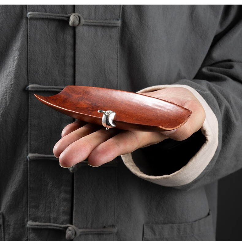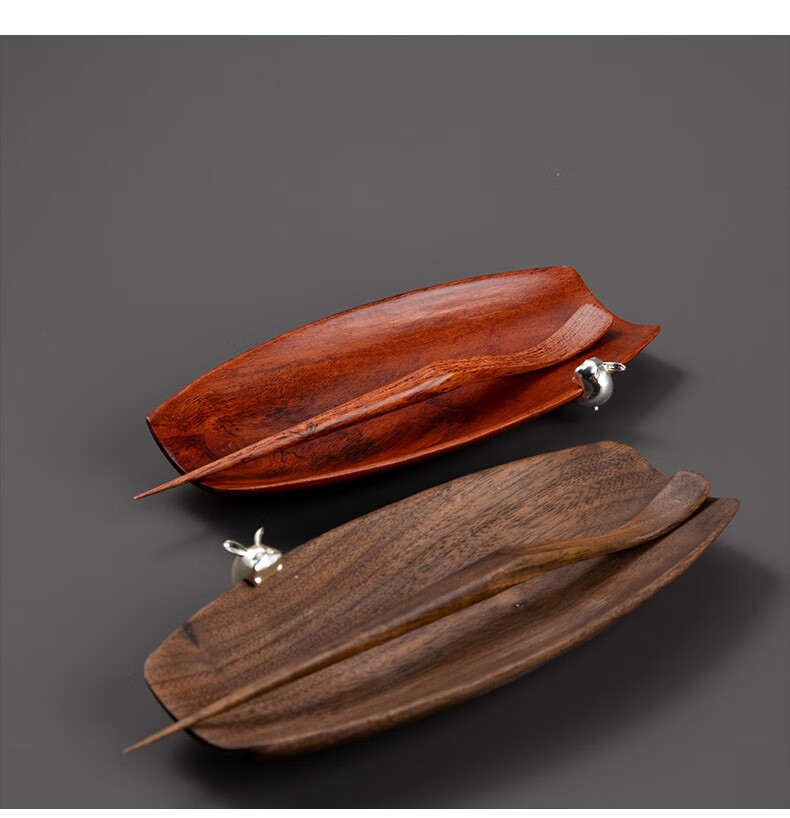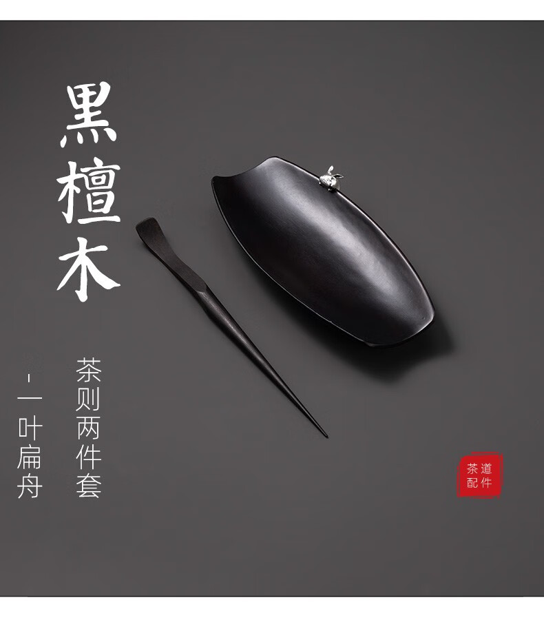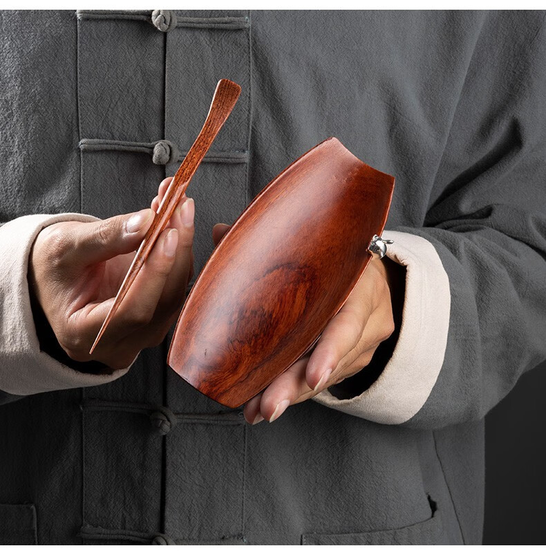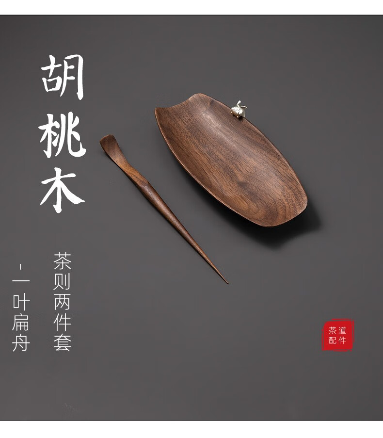 Rong Shan Tang Tea Set of Two, Black Sandalwood Solid Wood Tea Lotus Tea Ceremony Six Gentlemen Tea Pick Kung Fu Tea Set Accessories Walnut Tea Set of Two One Leaf Boat