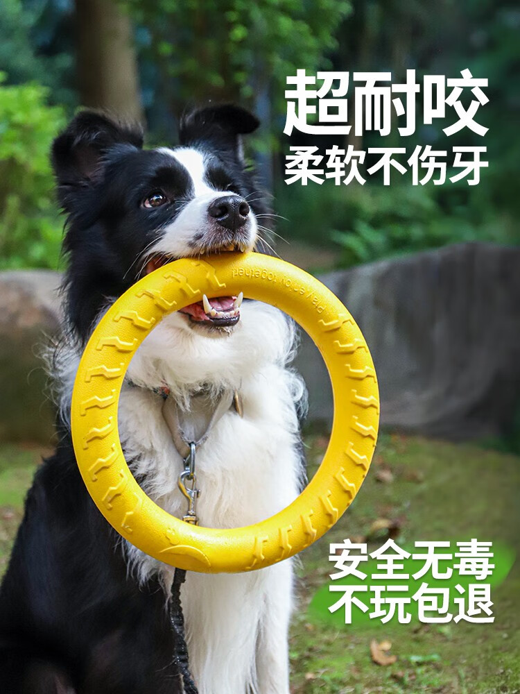 Qi Oh dog toy ball bite-resistant Frisbee pull ring pet border collie toy to relieve boredom self-pleasure tool molar dog training toy interactive pull ring large size 29cm