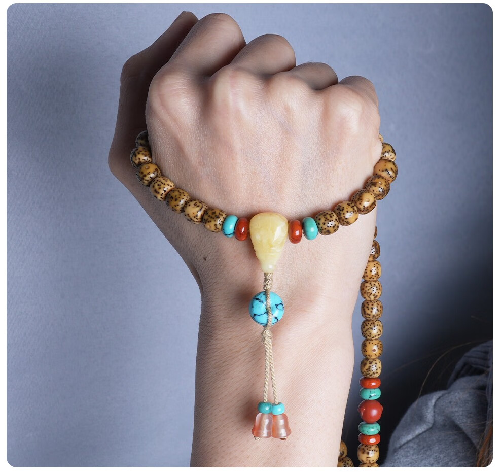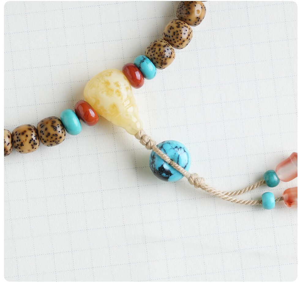 Lv Nong Jewelry, Russian material, white flower beeswax three-way one-piece Buddha head, star, moon and bodhi text, bracelet jewelry accessories, No. 254 Buddha head set / hole distance is about 12.3mm