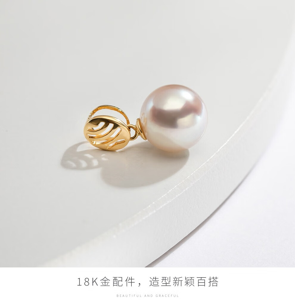 Nanzhu Palace Seawater Pearl Pendant 18K Inlaid Round Highlight Women's Pearl Pendant 925 Silver Chain 18K Gold 8.5-9mm