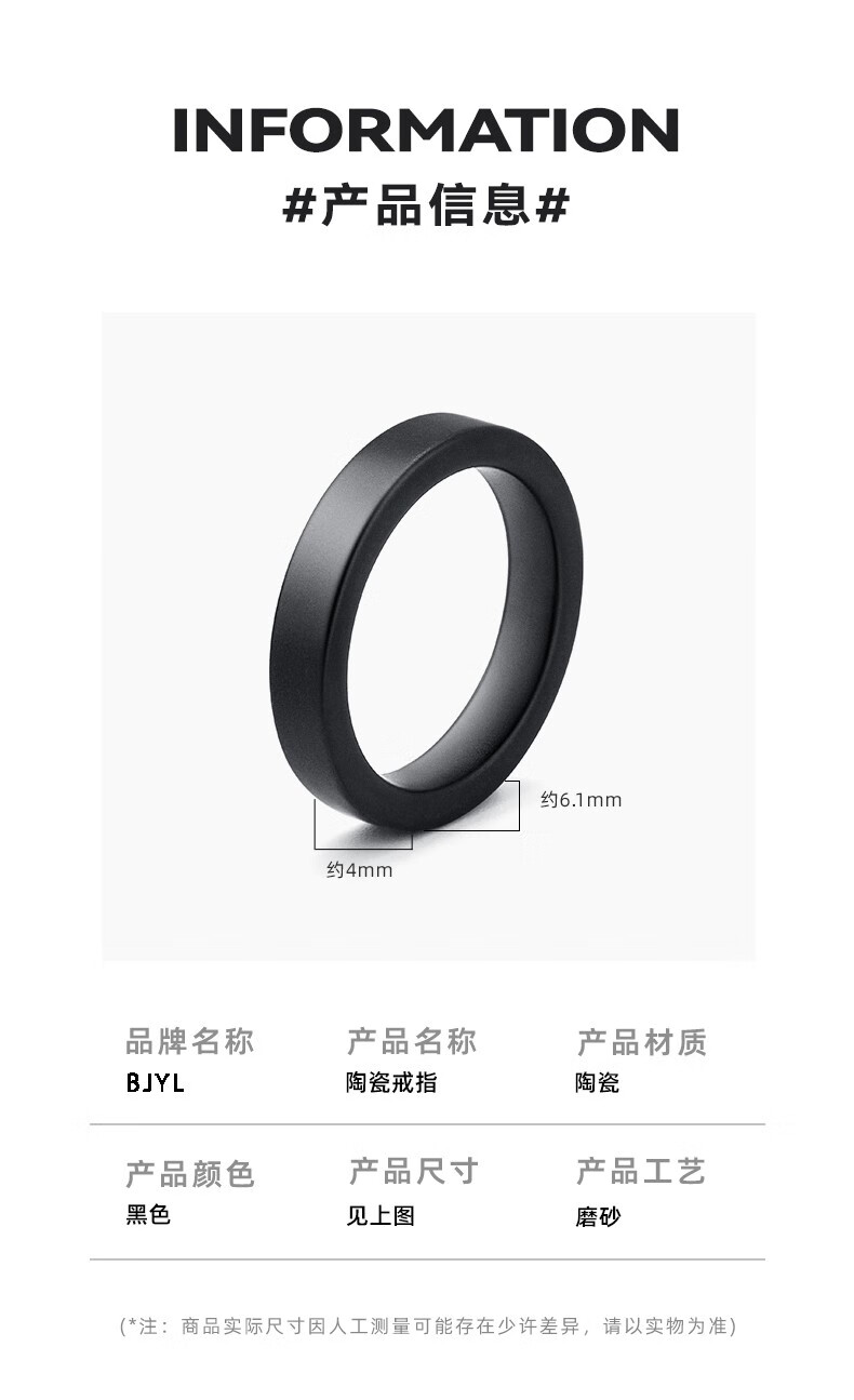 BJYL ceramic ring men's high-end closed frosted index finger ring trendy self-discipline ring women's tail ring gift default number nine, please note the size when placing an order