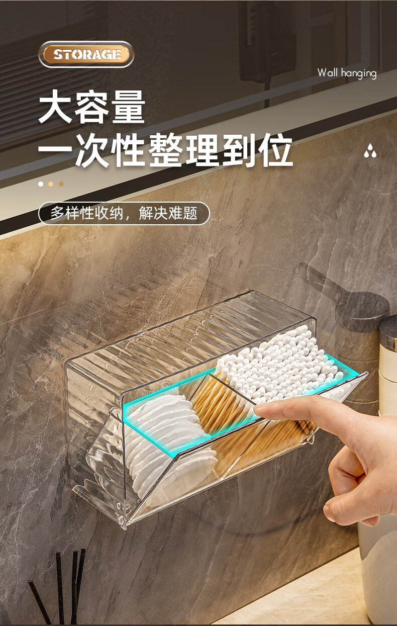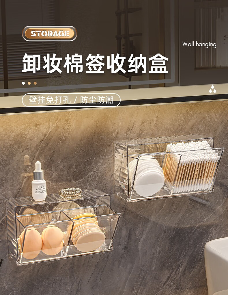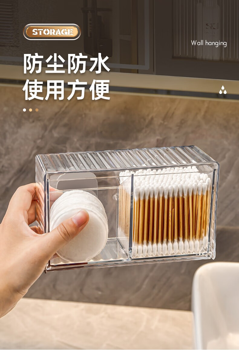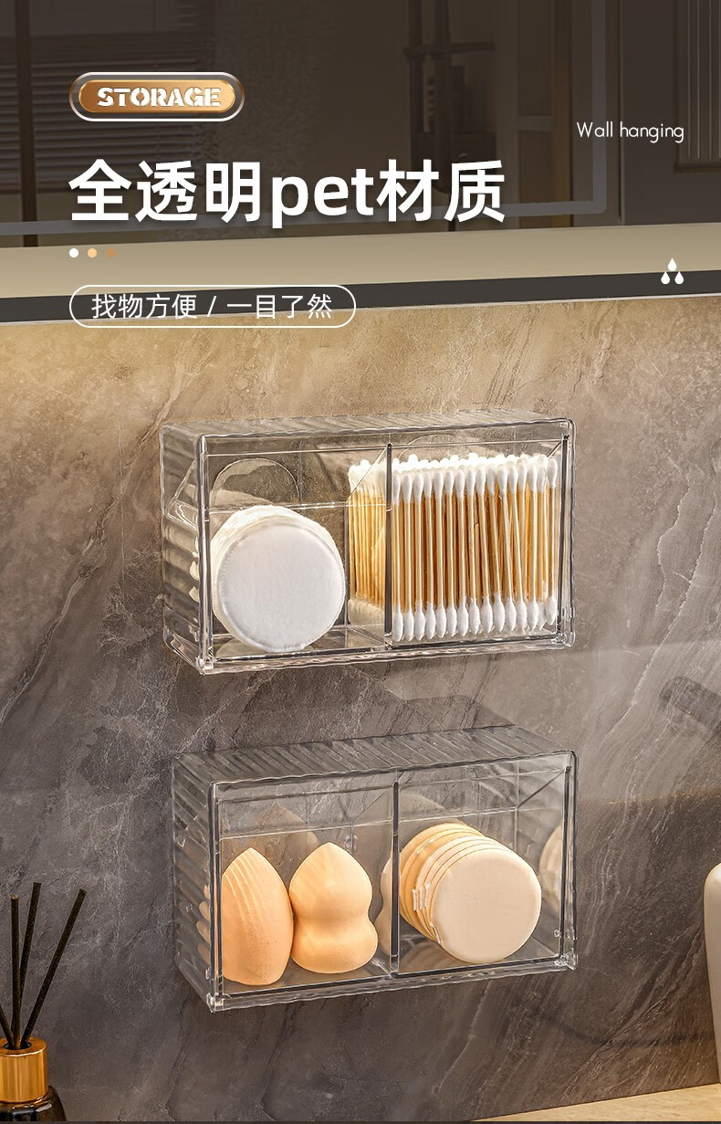 KAMAN cotton swab storage box wall-mounted bathroom hair rope lipstick powder puff beauty egg makeup cotton toothpick two-in-one storage box 1 pack transparent color