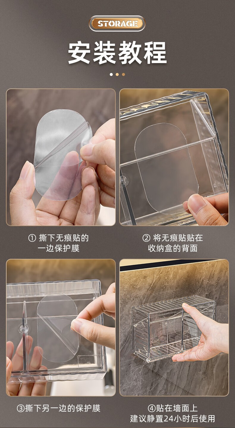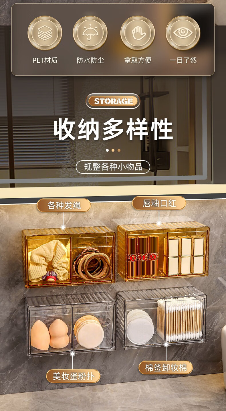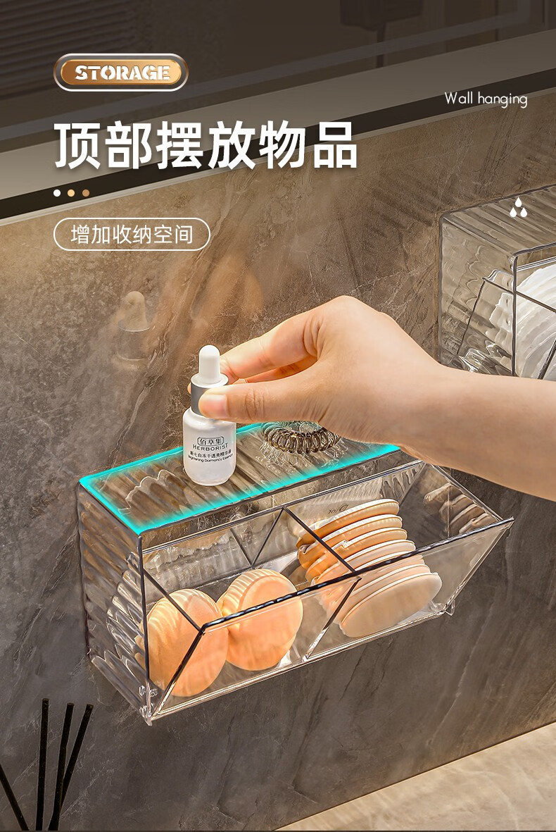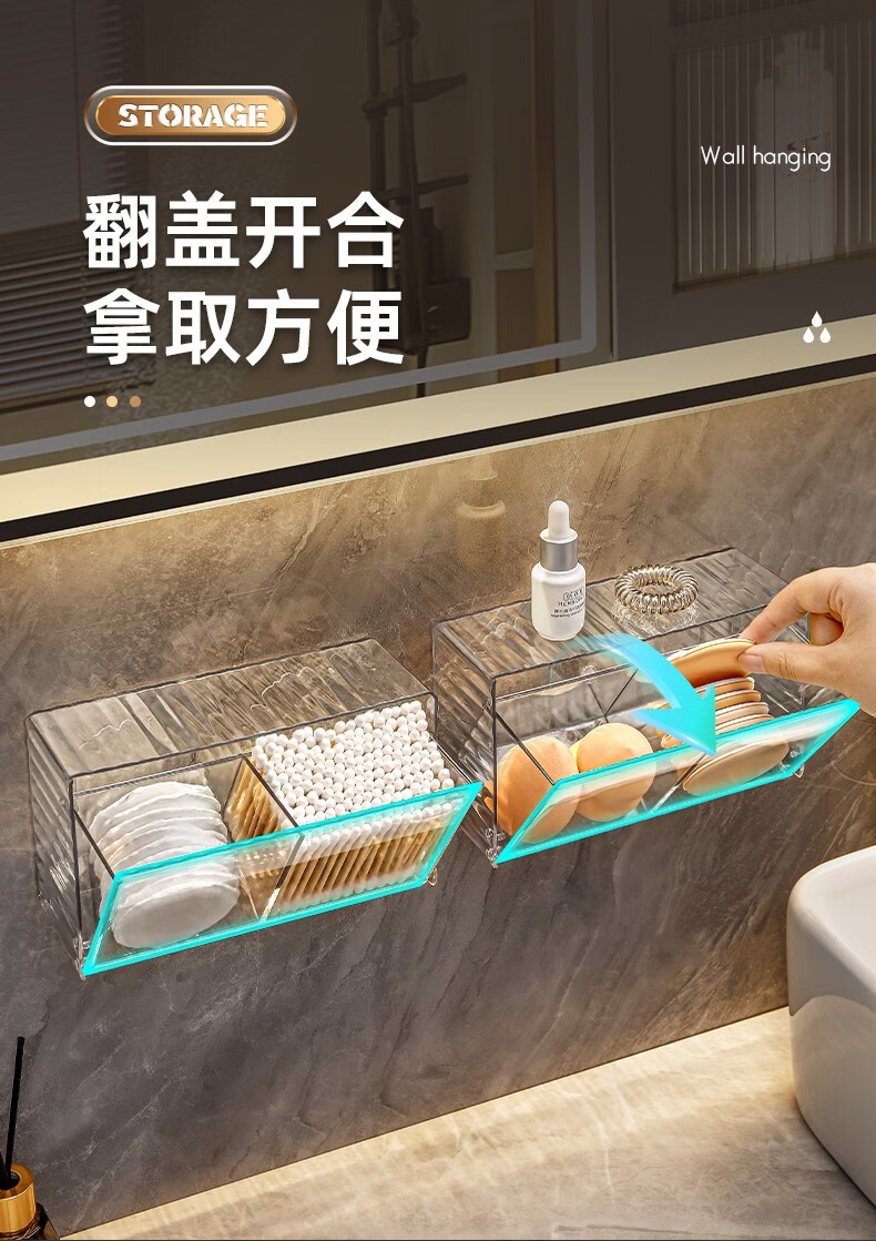 KAMAN cotton swab storage box wall-mounted bathroom hair rope lipstick powder puff beauty egg makeup cotton toothpick two-in-one storage box 1 pack transparent color