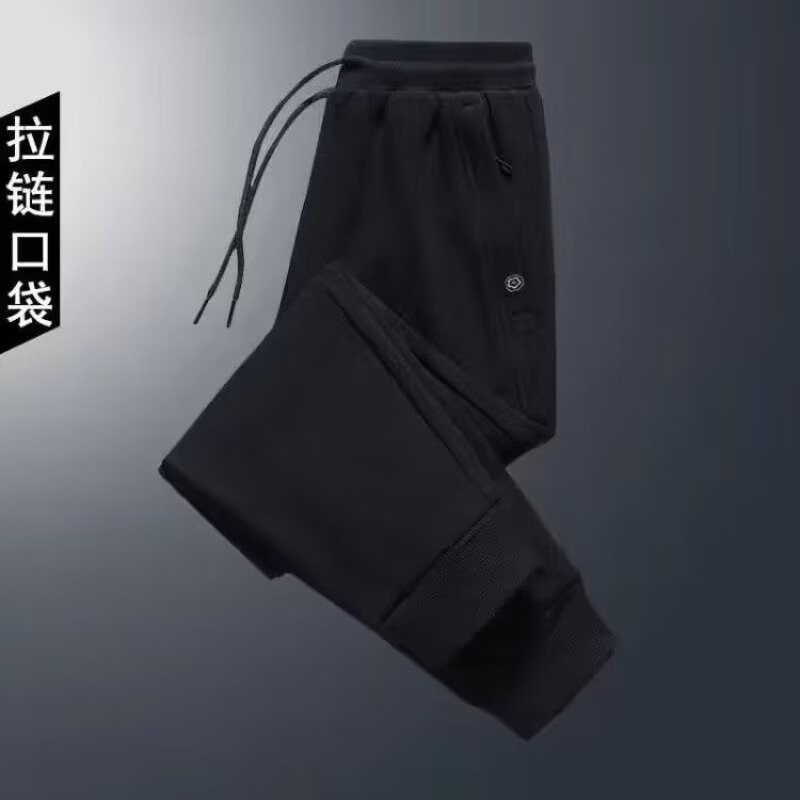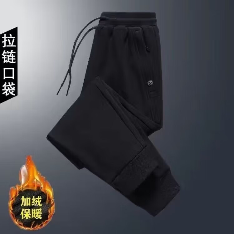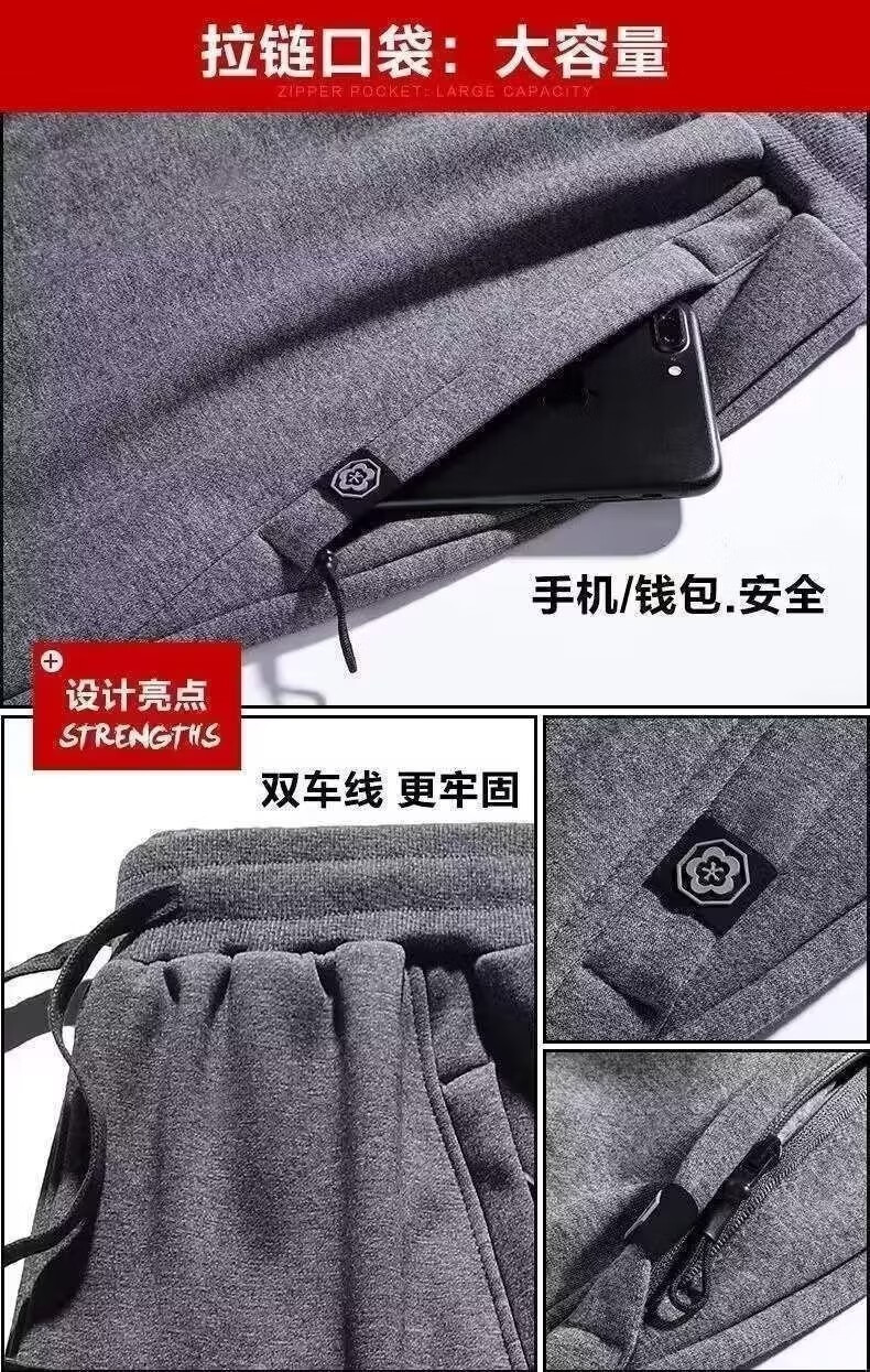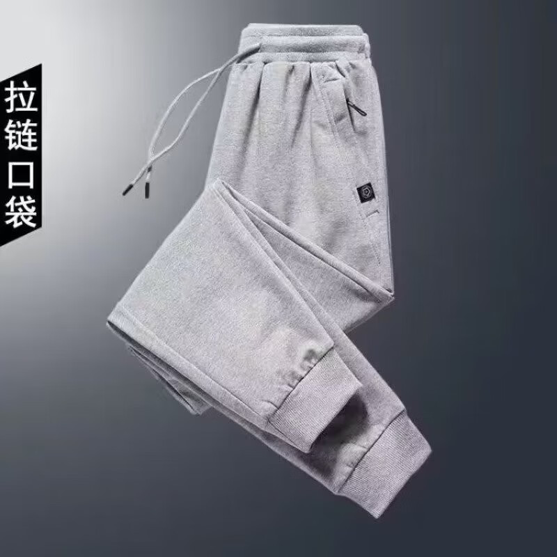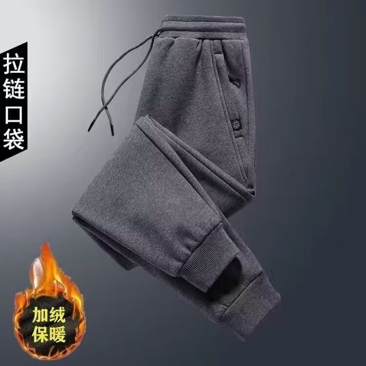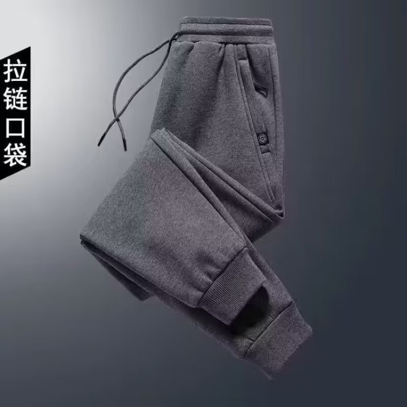 Sannan Casual Pants Men's Autumn and Winter Velvet Thickened Loose Large Size Pocket Zipper All-Matching Stretch Sports Pants Men's Dark Gray + Light Gray Two Legs XXL 140-150