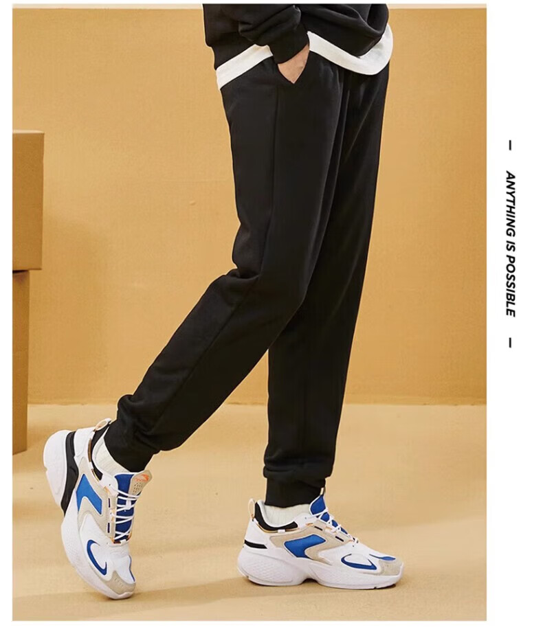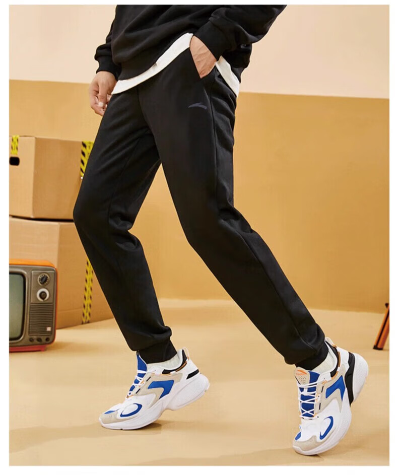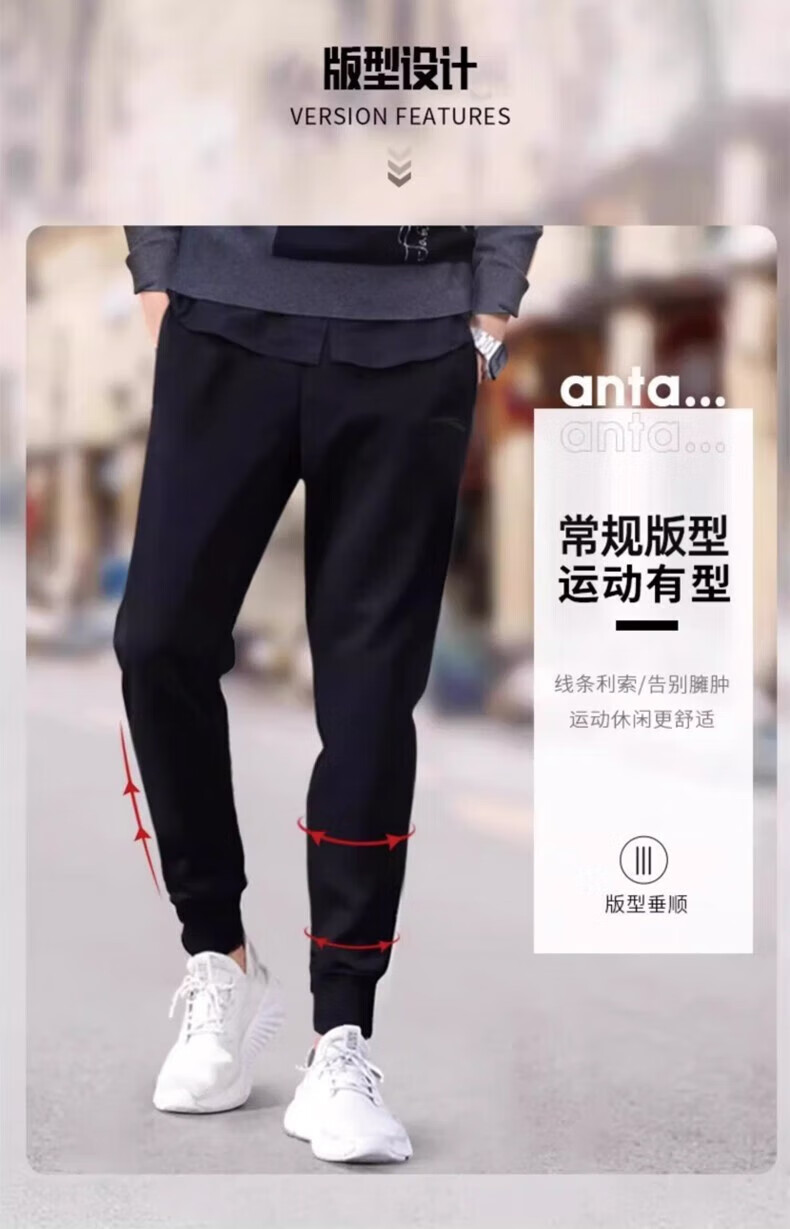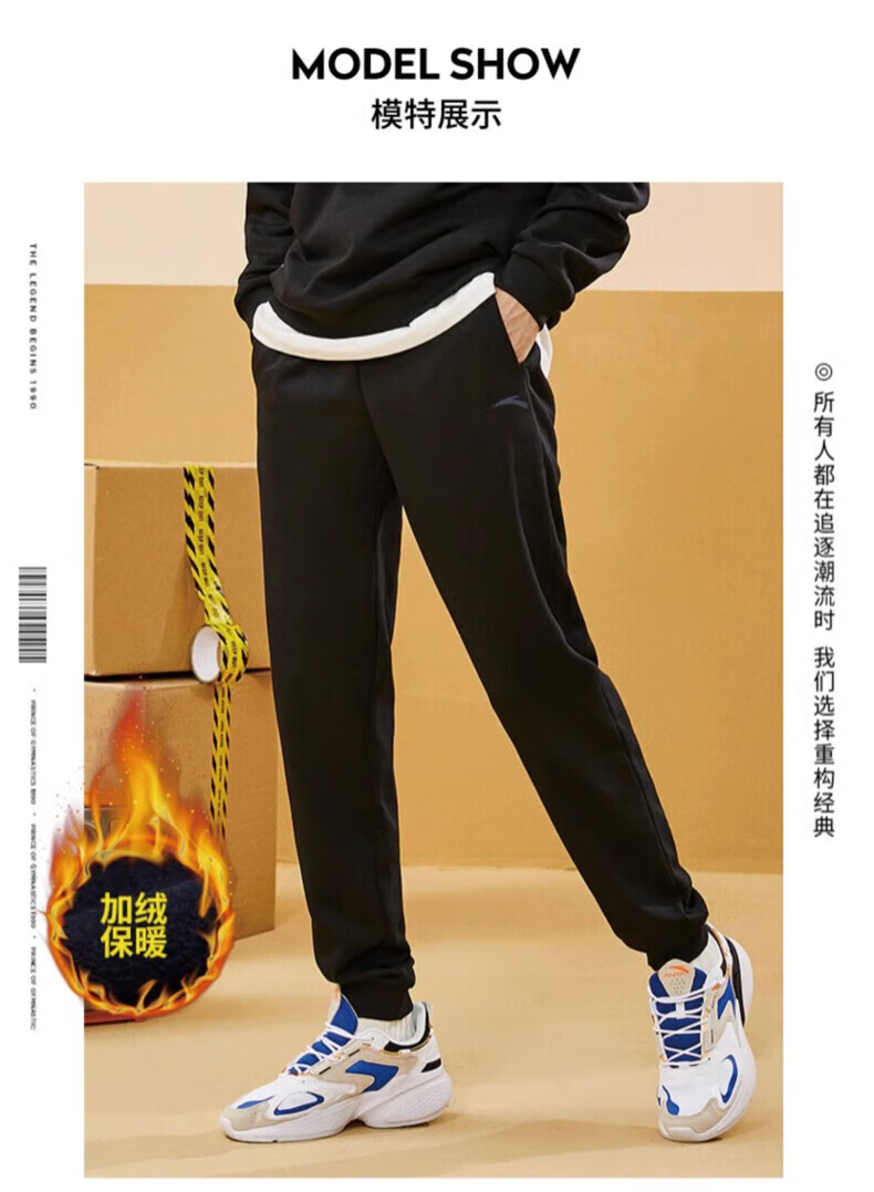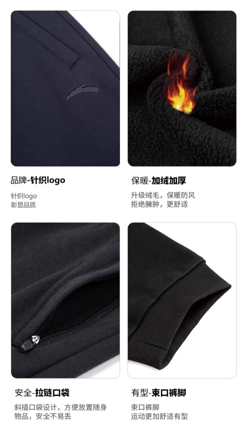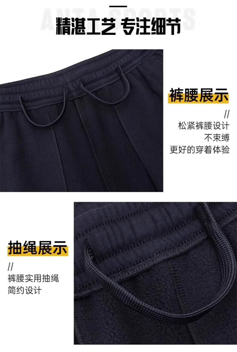 ANTA (ANTA) fleece sweatpants men's 2025 autumn and winter young men's outdoor cold-proof and warm loose sweatpants casual leggings -1 Basic black fleece leggings L /175 suitable for 120-140Jin Jin equals 0.5 kg