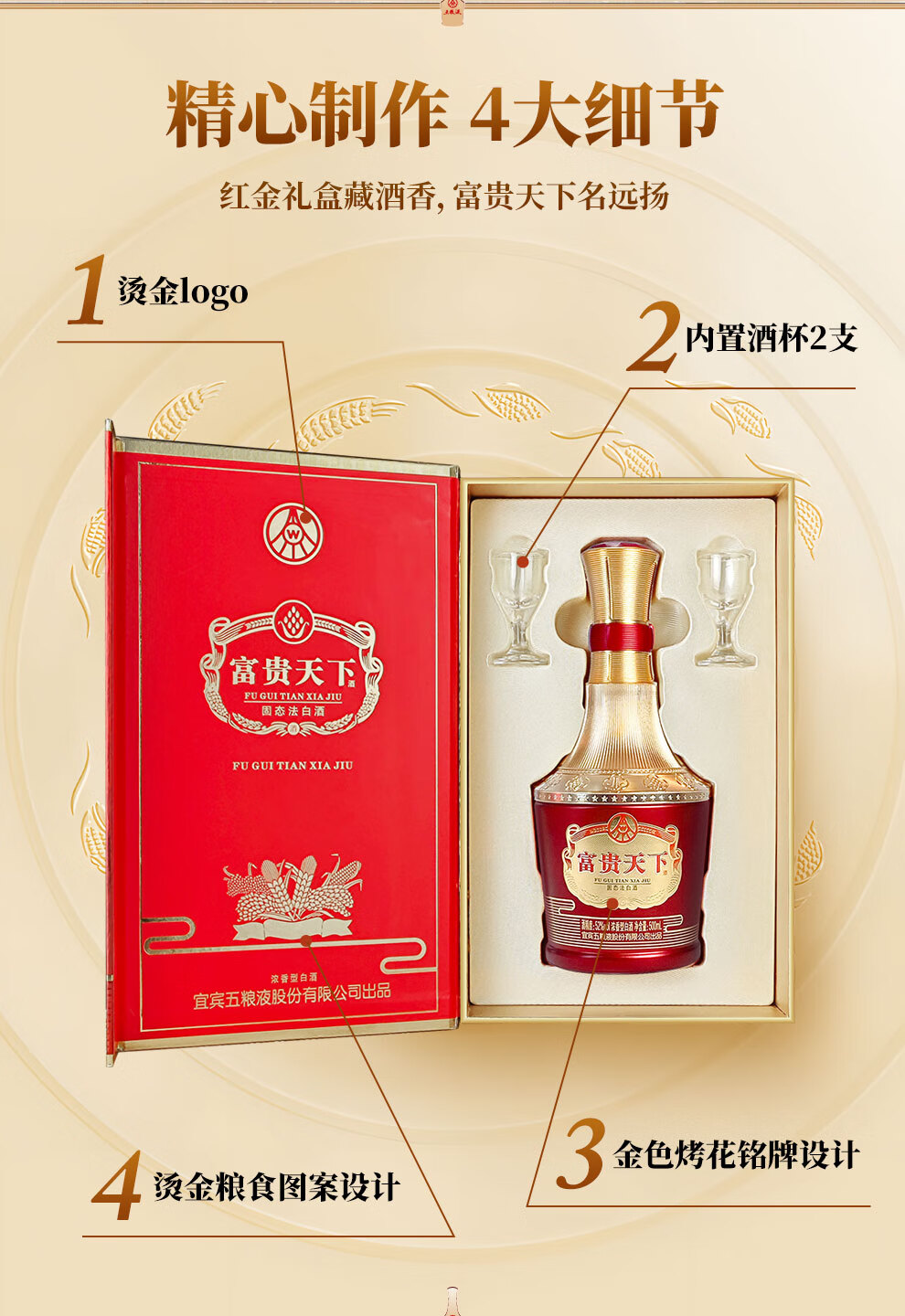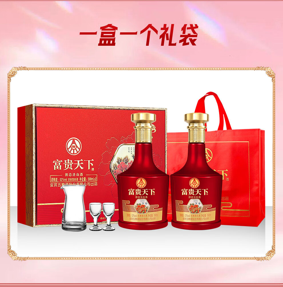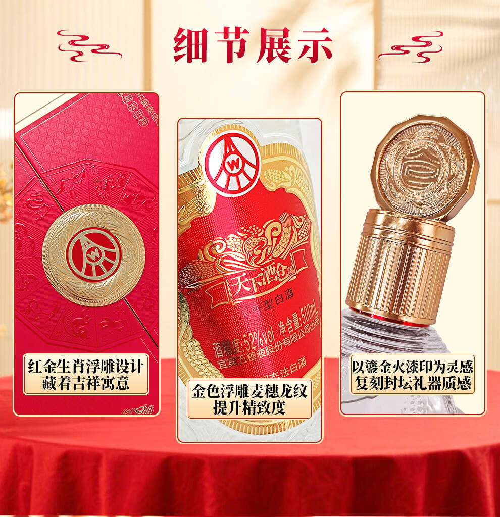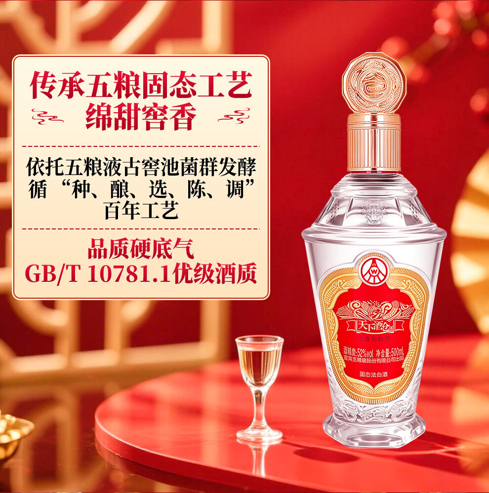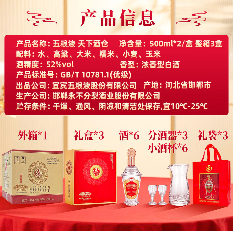 Produced by Wuliang Luzhou Wuliangye Co., Ltd. Liquor Luzhou-flavor grain wine, wedding banquet, holiday and New Year's gift, full box, 52 degrees, 500mL, 6 bottles, gold diamond, full box