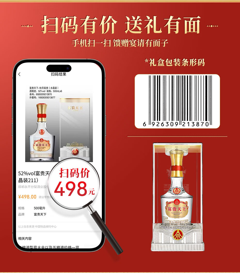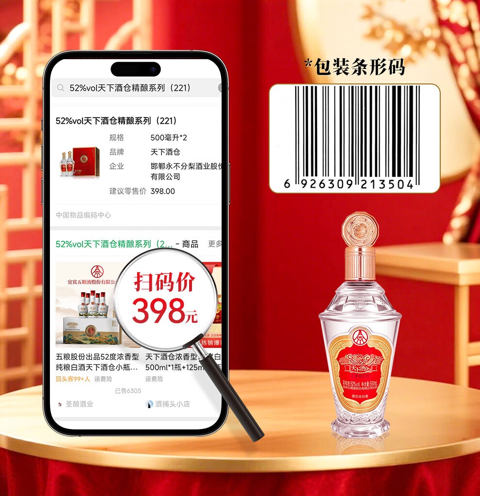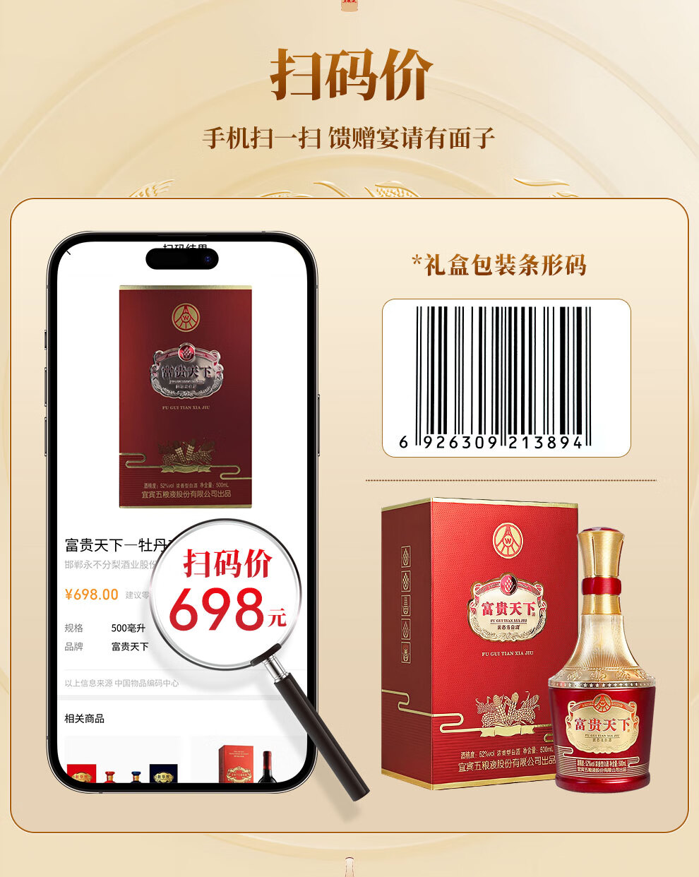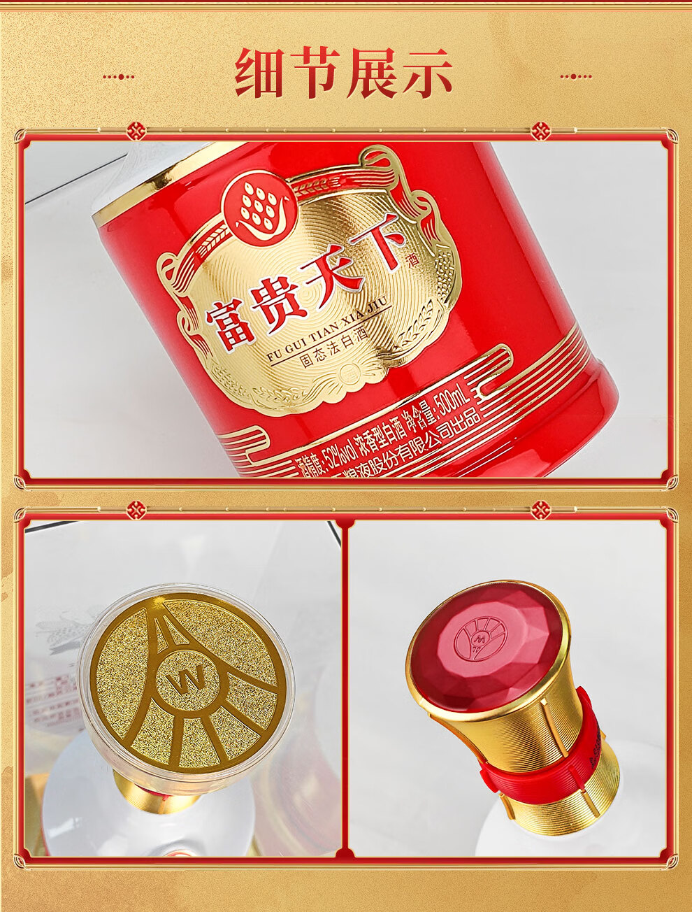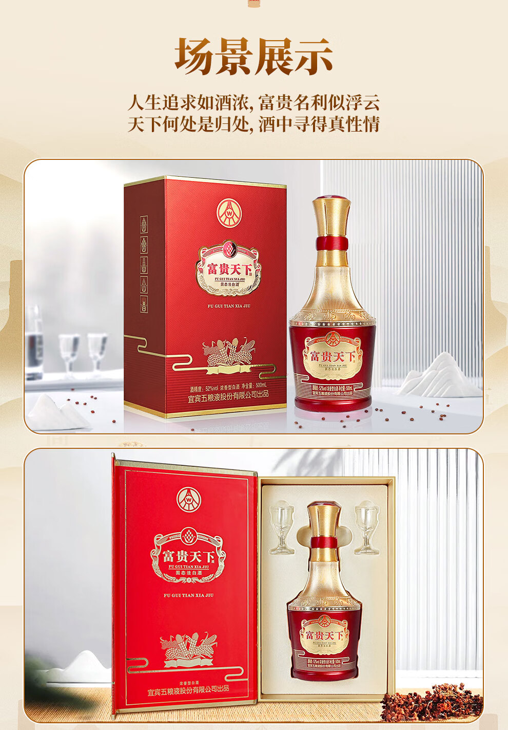 Produced by Wuliang Luzhou Wuliangye Co., Ltd. Liquor Luzhou-flavor grain wine, wedding banquet, holiday and New Year's gift, full box, 52 degrees, 500mL, 6 bottles, gold diamond, full box