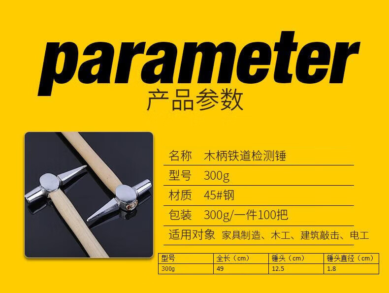 Beijing Times Railway Train Inspection Hammer Inspection Hammer Inspection Hammer Train Inspection Hammer Inspection Hammer Hammer Inspection Hammer 400g Length 500mm