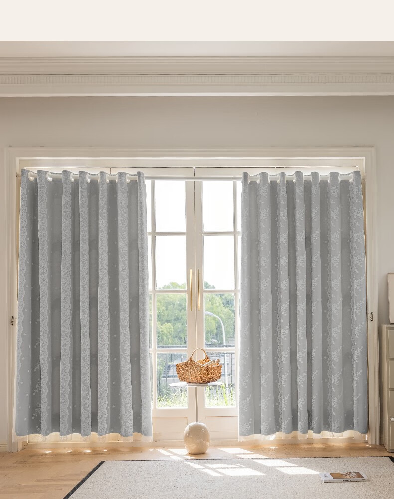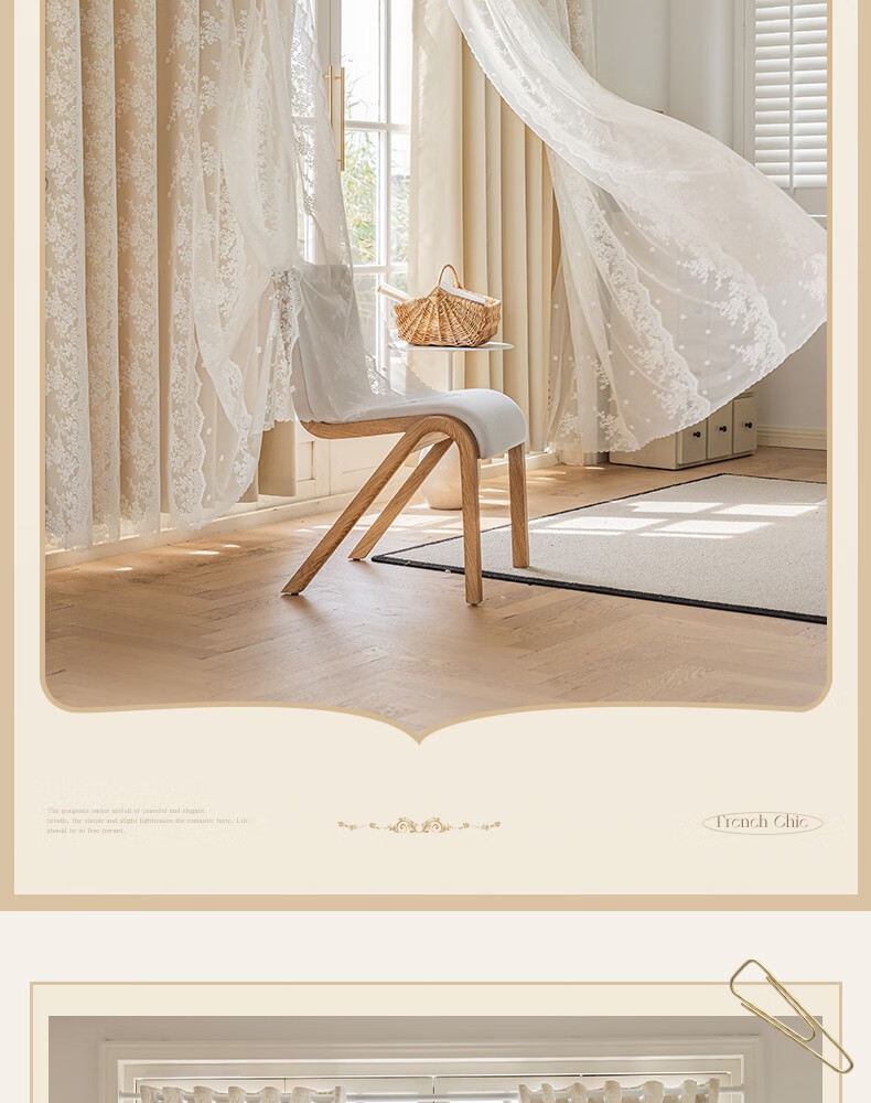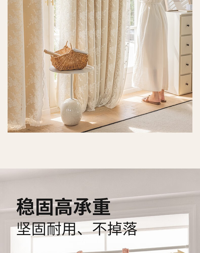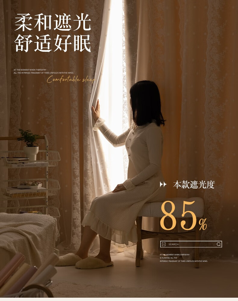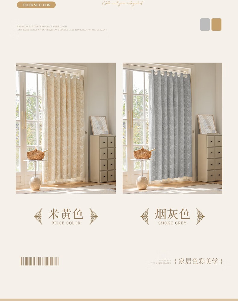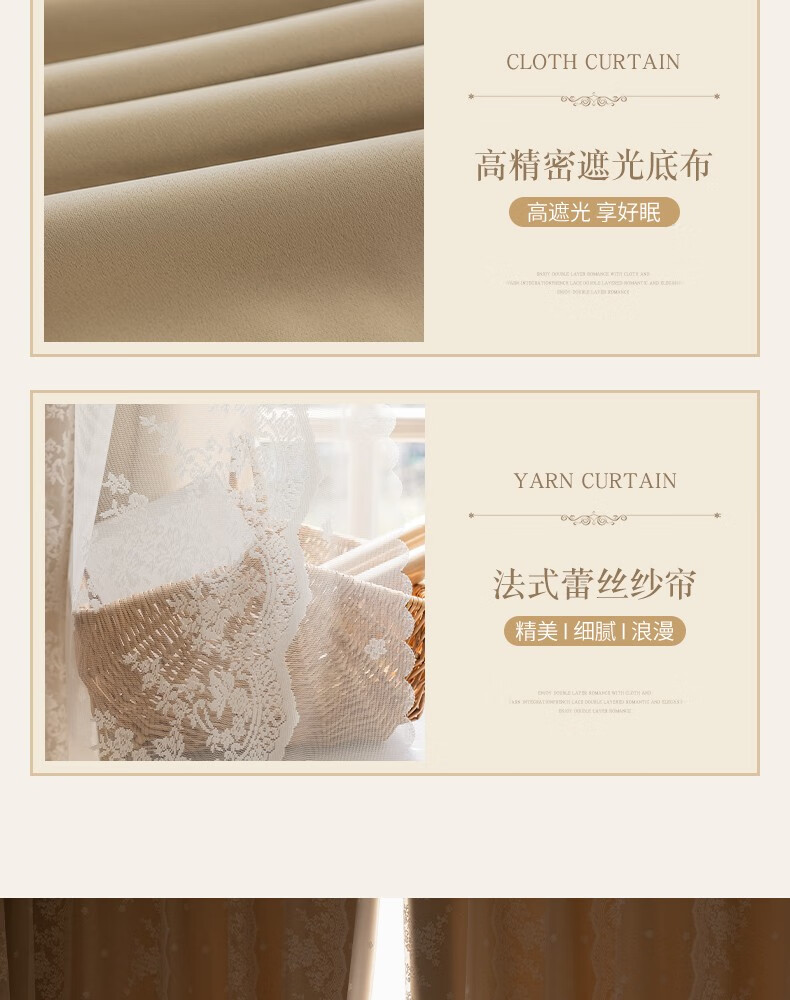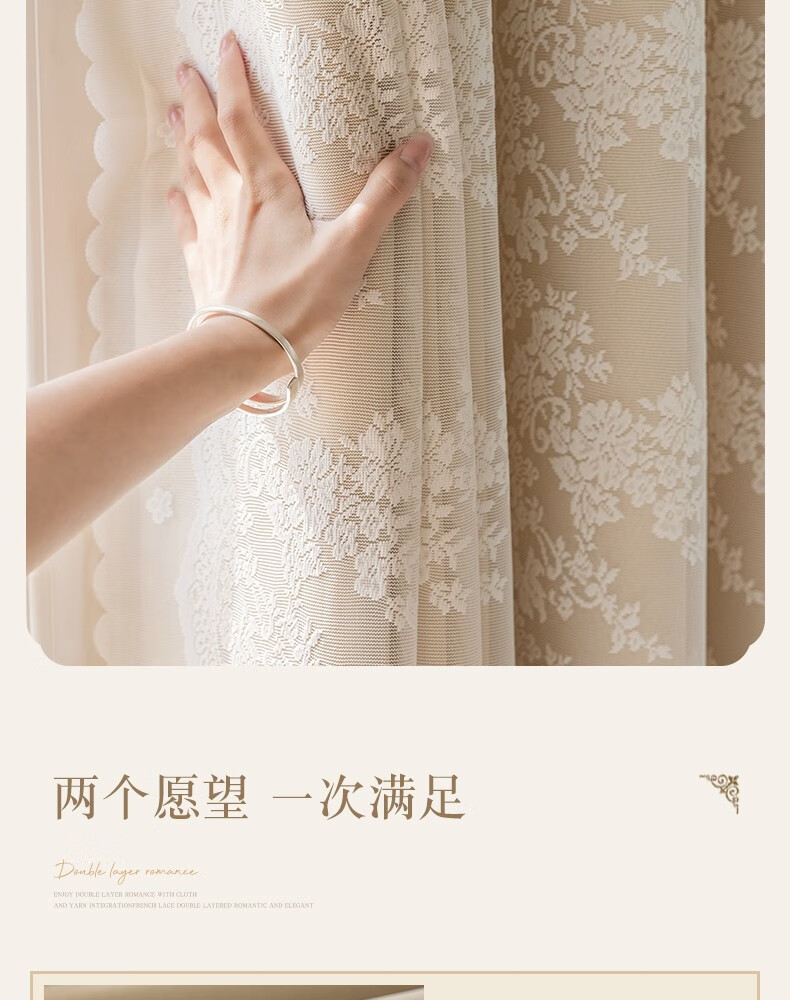 Jiafei (jiafei) Cloth+Pole French Curtain Blackout Lace Double Layer with Yarn Integrated No Punch Installation Girly Style Light Luxury Cloth Integrated - Milk Tea Color (Width 1.1-1.6m) (Height 1.5m 2 pieces including pole)