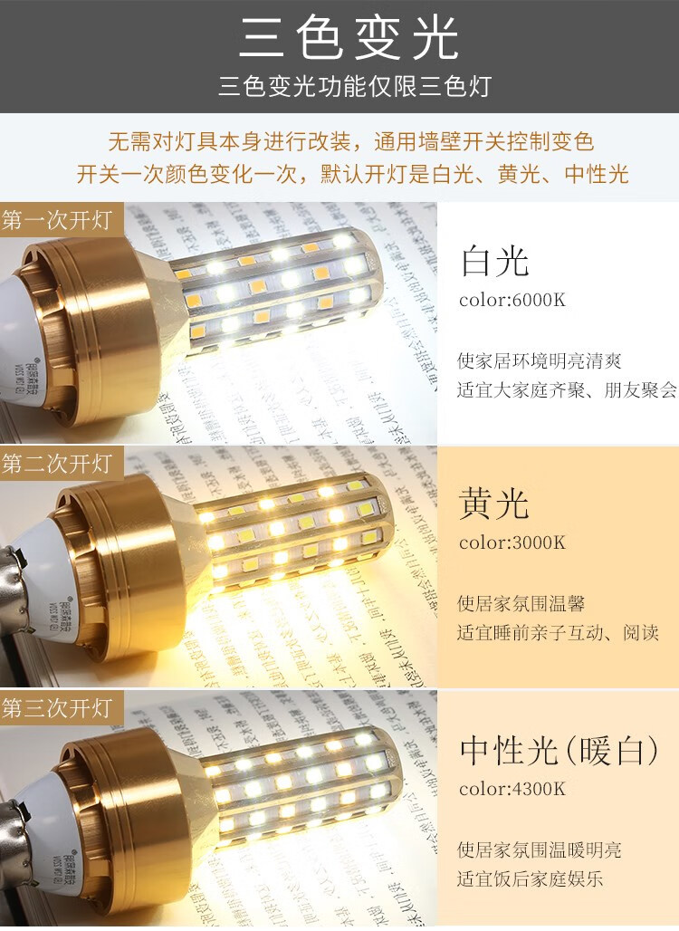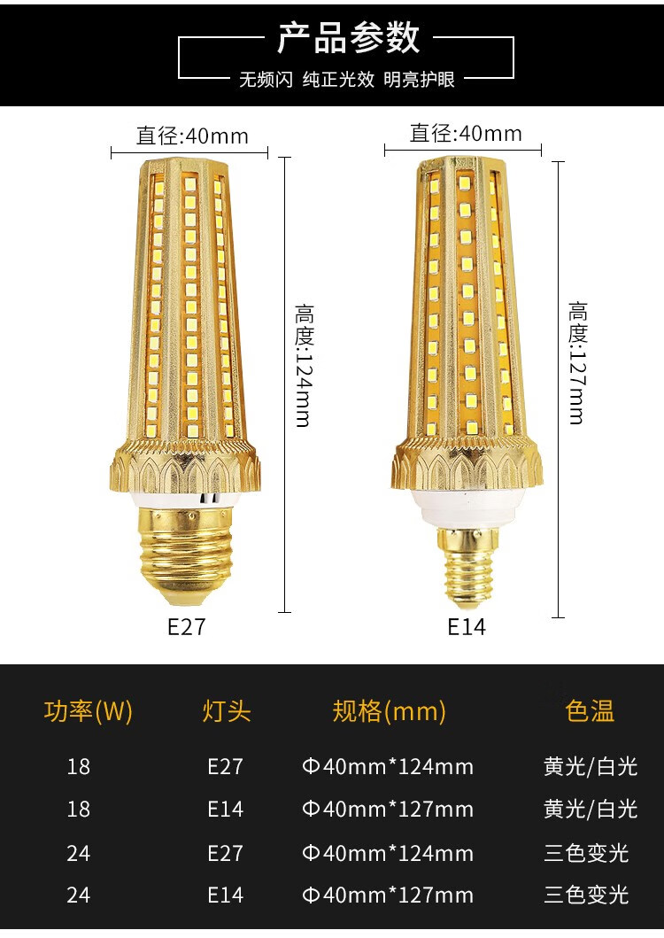 Fenglanq Xihuang light bulb 1427 small screw light source 12 watt household 18 watt 24 watt energy-saving three-color dimming lighting spiral pagoda style E27 large screw (1 piece) 24w warm white