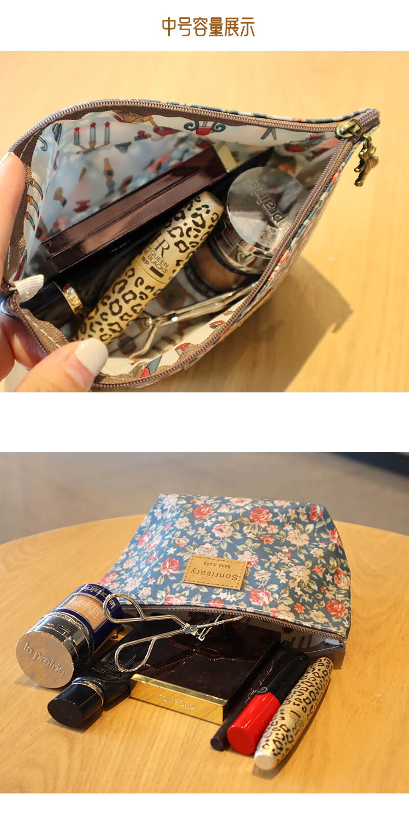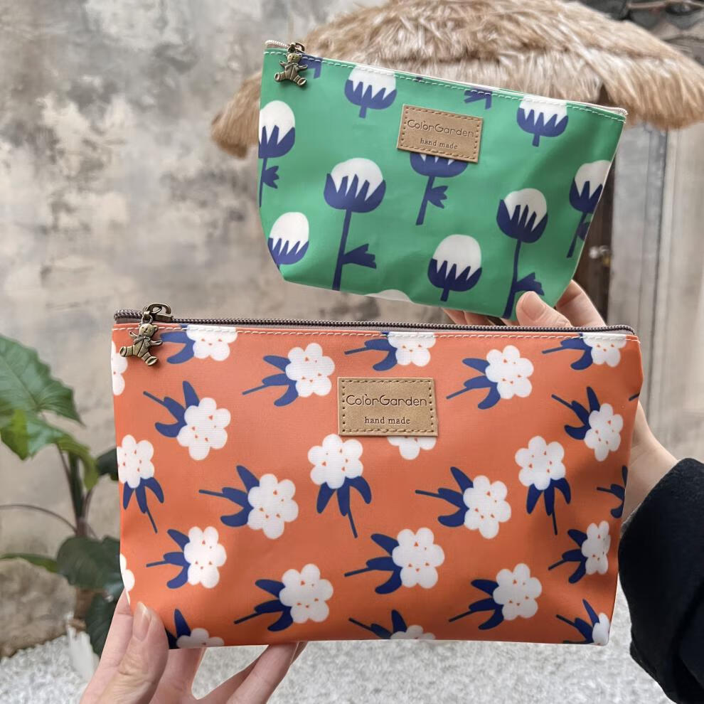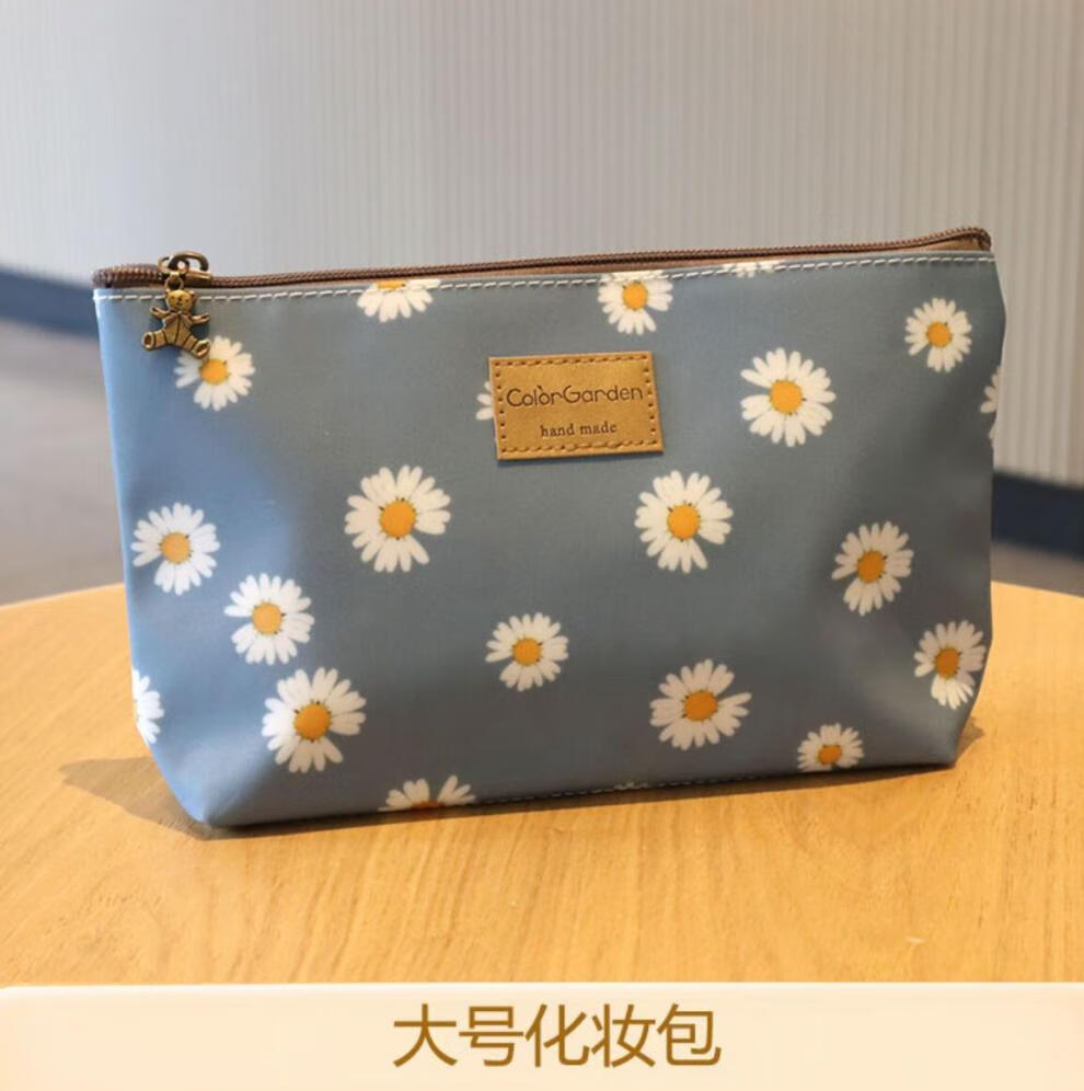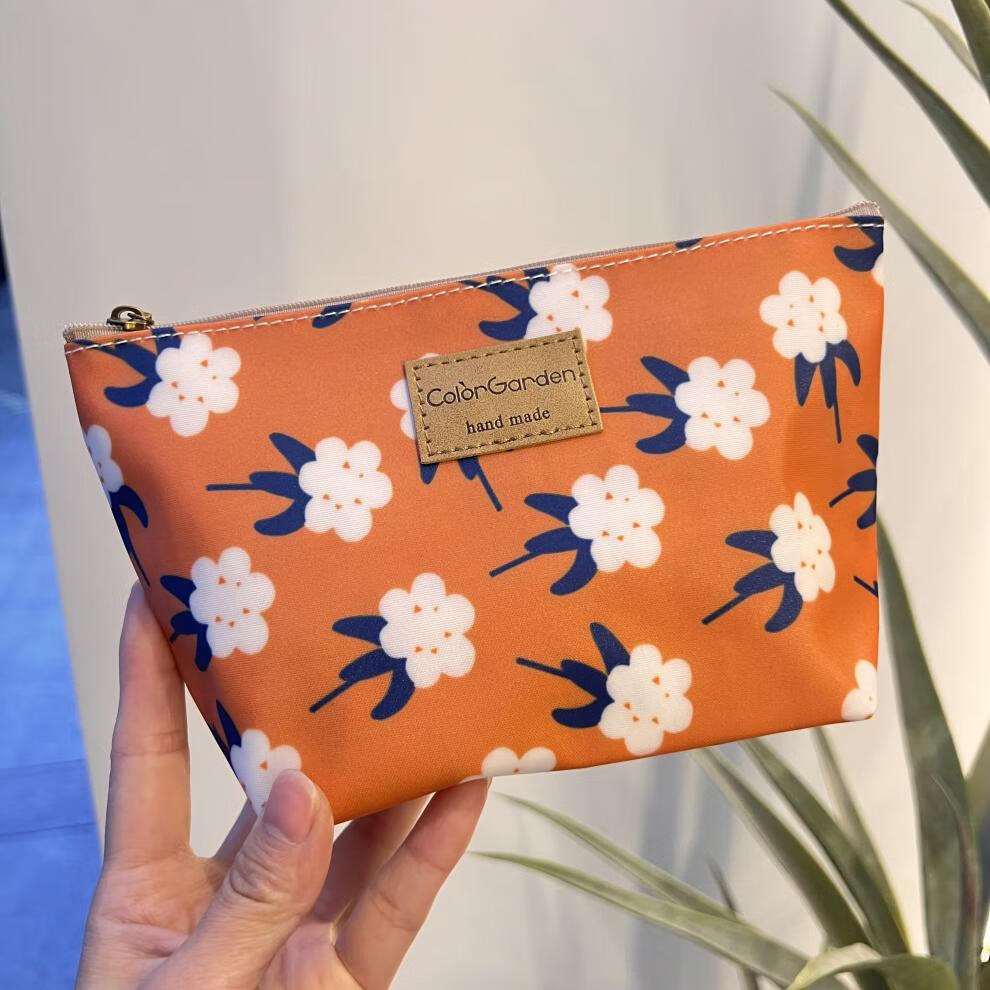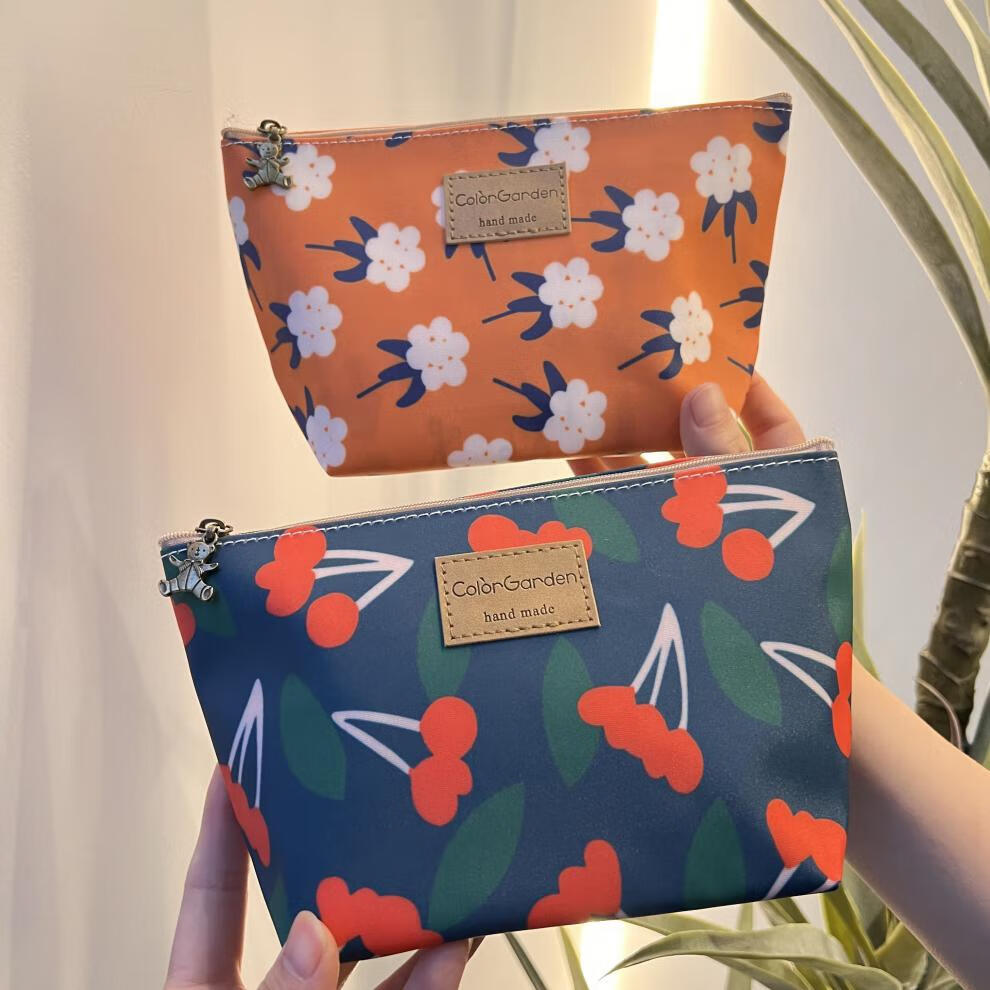 OIMG Korean cute printed cosmetic bag small floral waterproof portable cosmetic bag large capacity toiletry bag travel storage bag orange small flower medium cosmetic bag