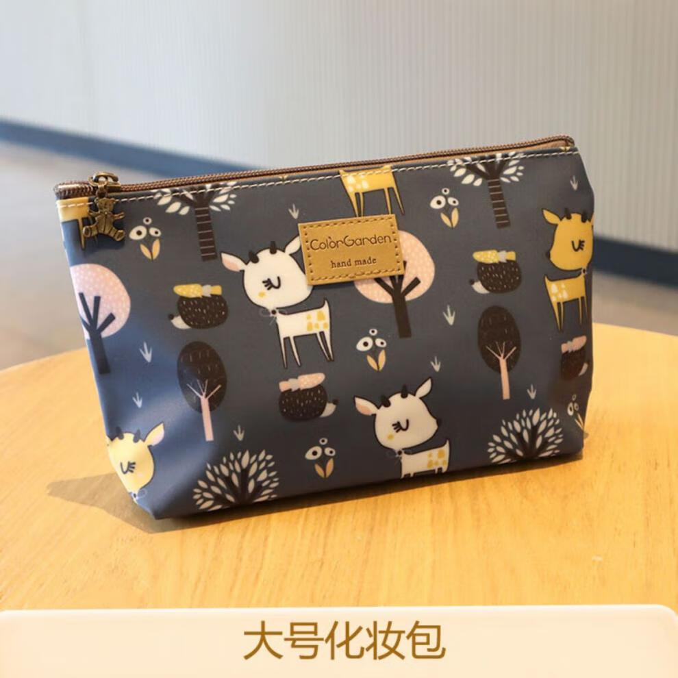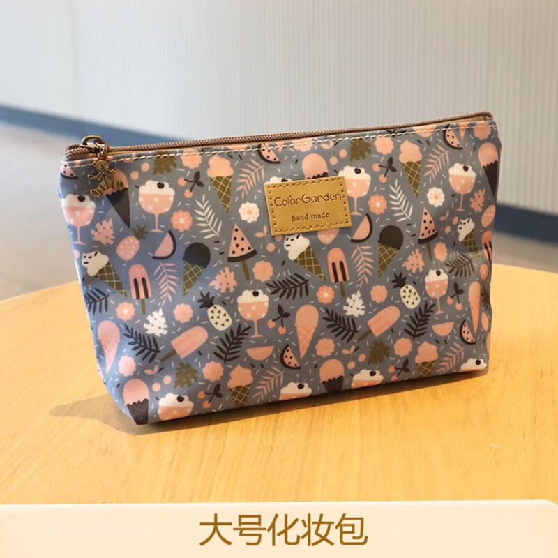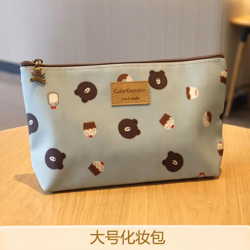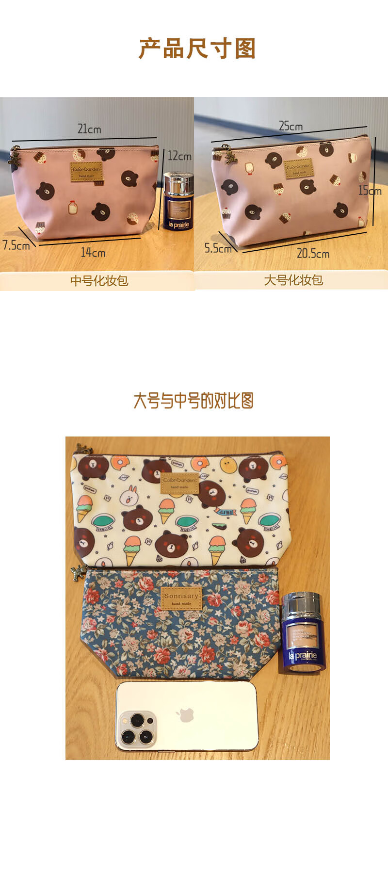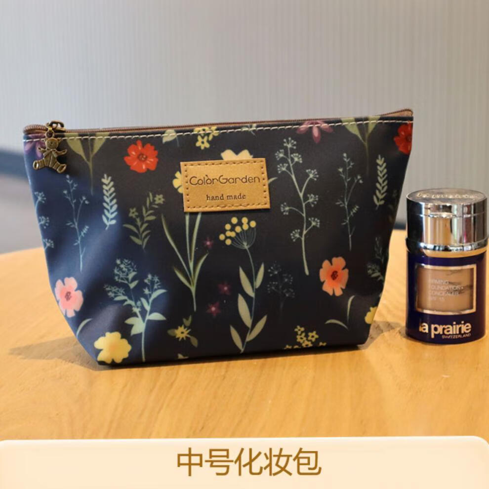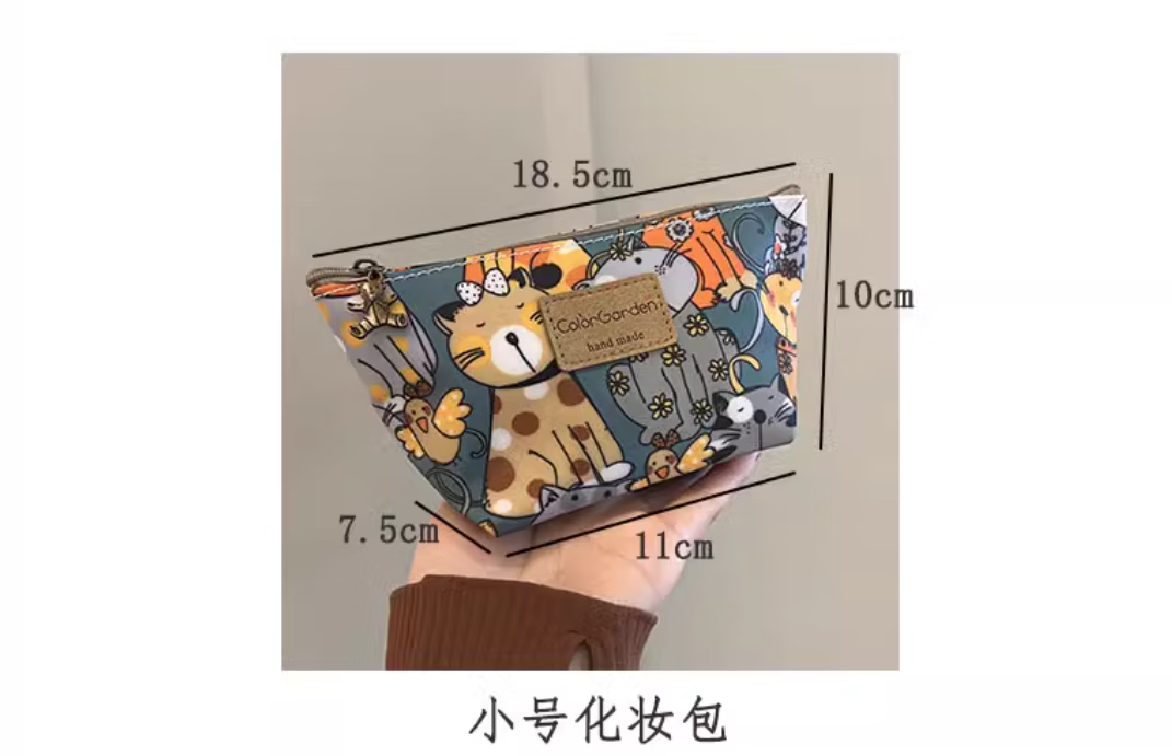 OIMG Korean cute printed cosmetic bag small floral waterproof portable cosmetic bag large capacity toiletry bag travel storage bag orange small flower medium cosmetic bag