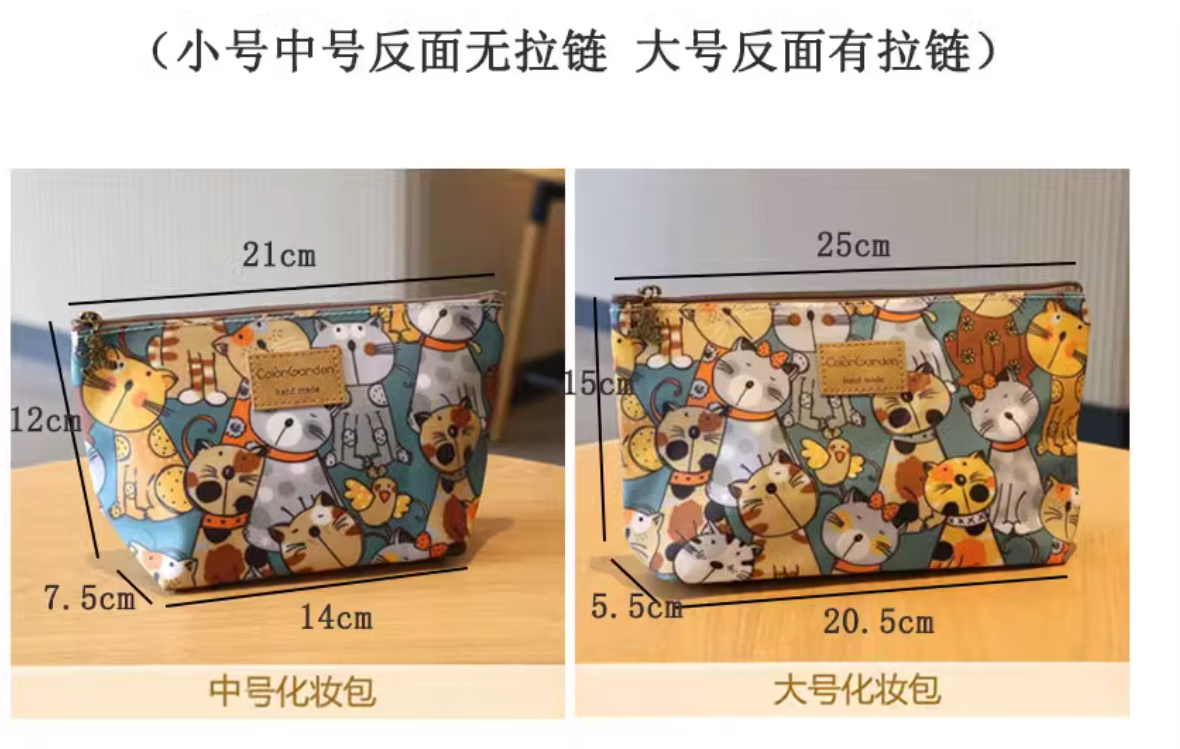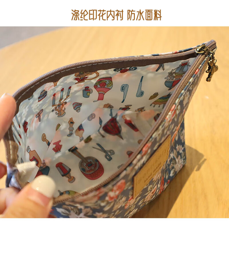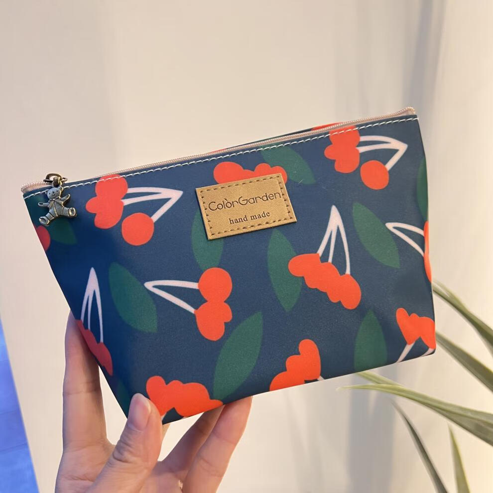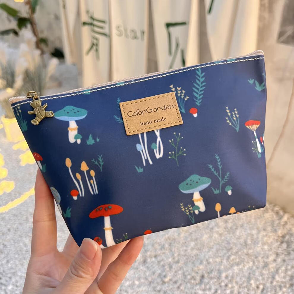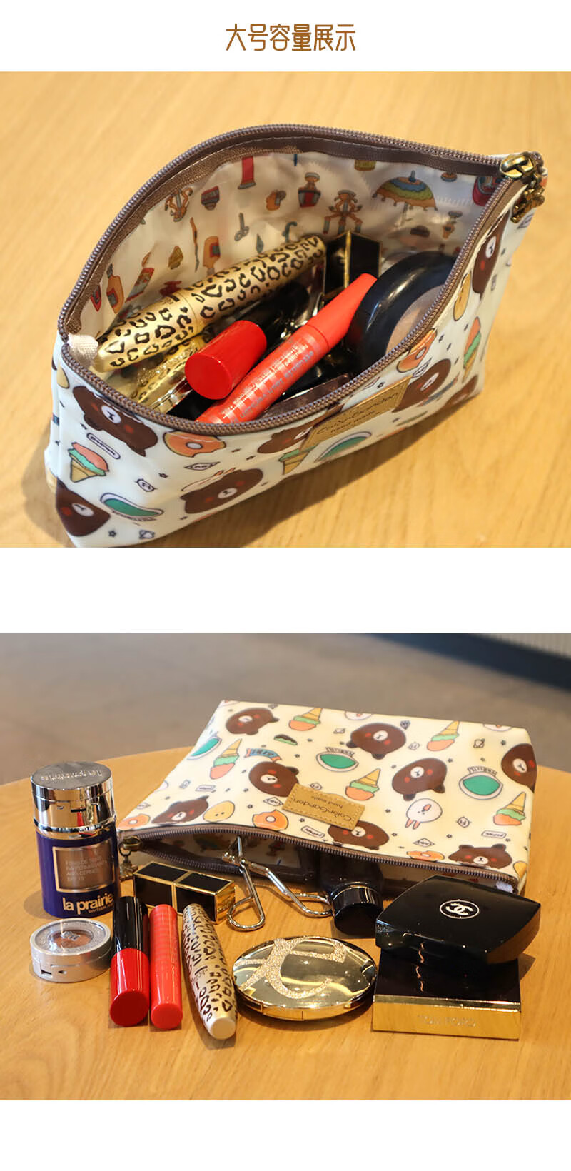OIMG Korean cute printed cosmetic bag small floral waterproof portable cosmetic bag large capacity toiletry bag travel storage bag orange small flower medium cosmetic bag