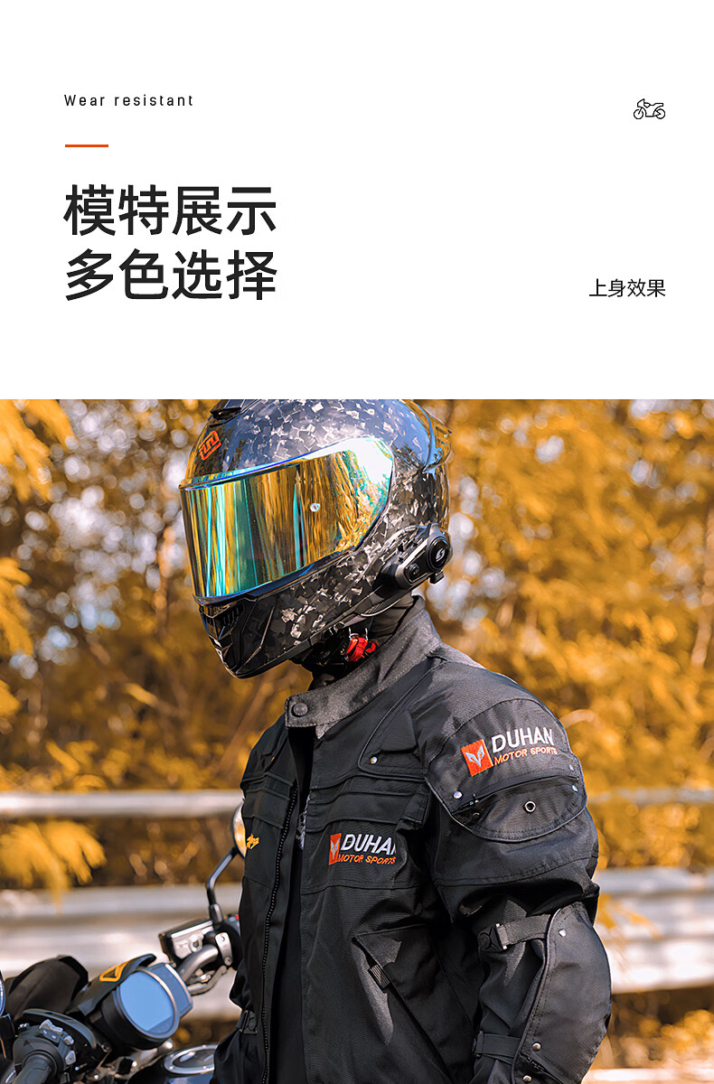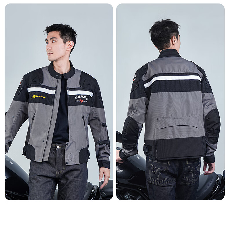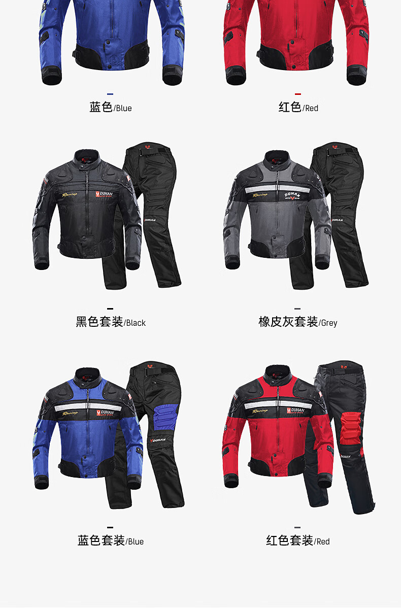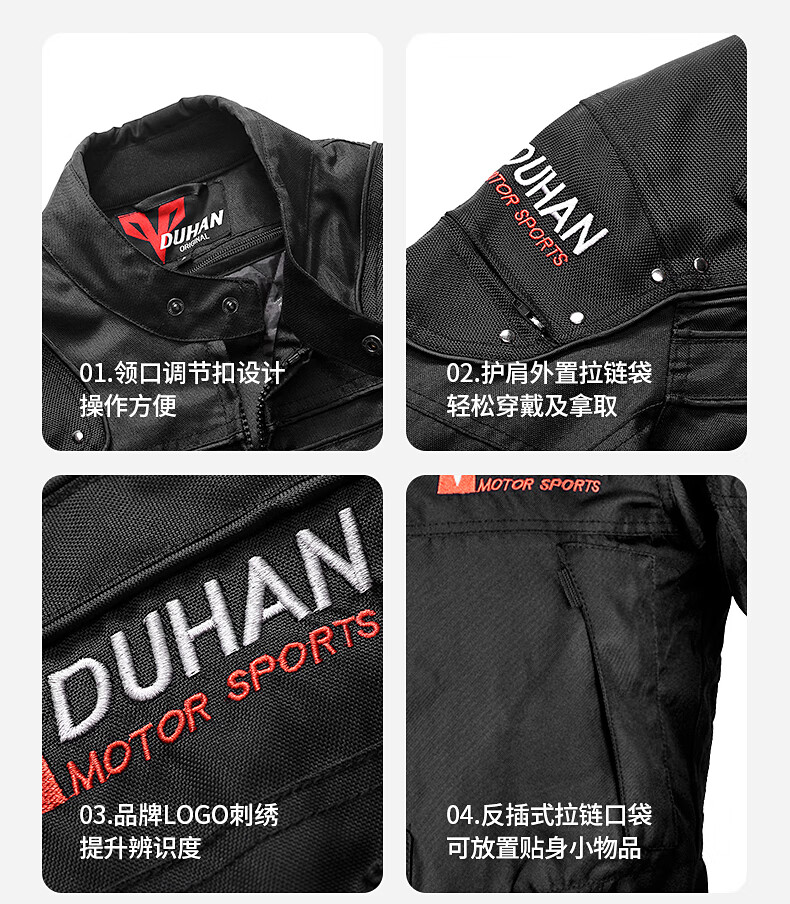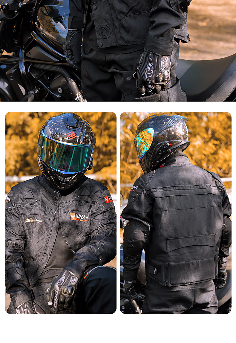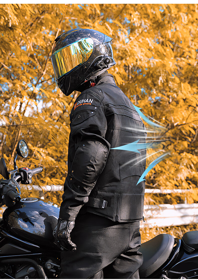 DUHAN Motorcycle Riding Suit Men's Four Seasons Anti-Fall Motorcycle Suit Off-Road Racing Suit Rider Pants Black Suit (Top + Pants) XL