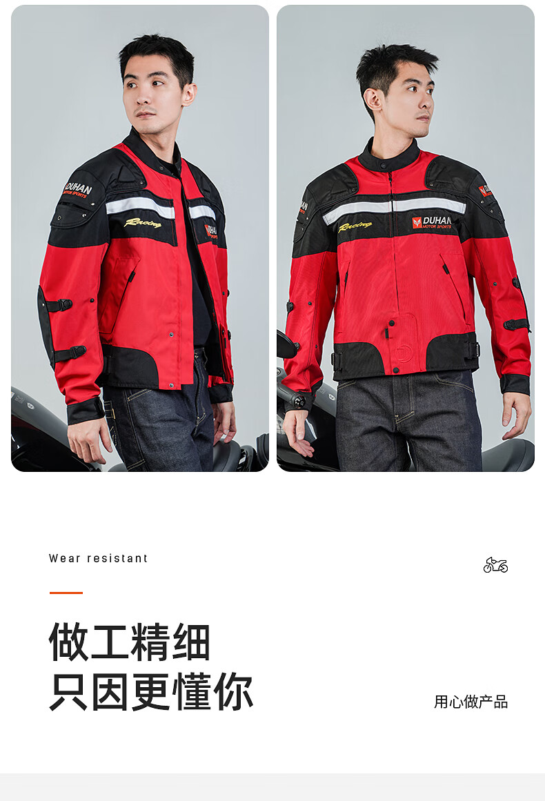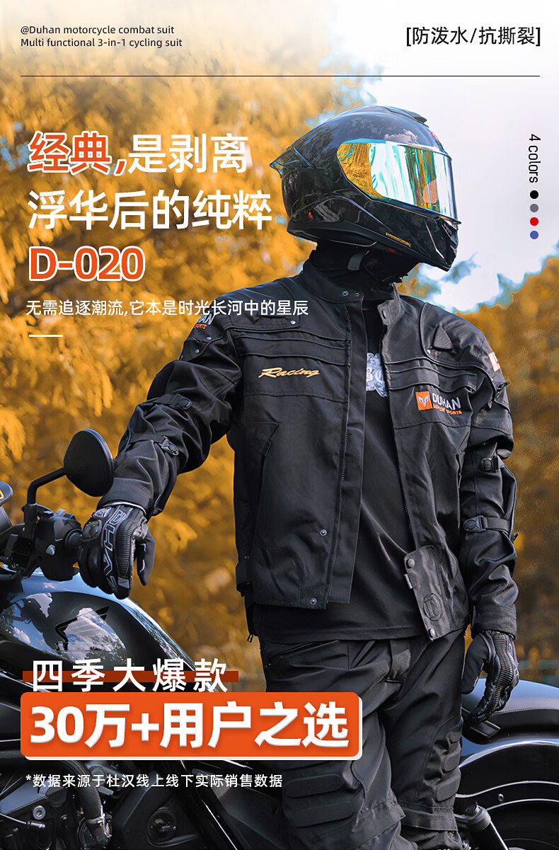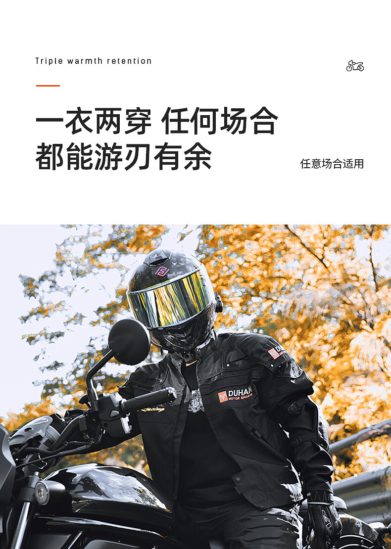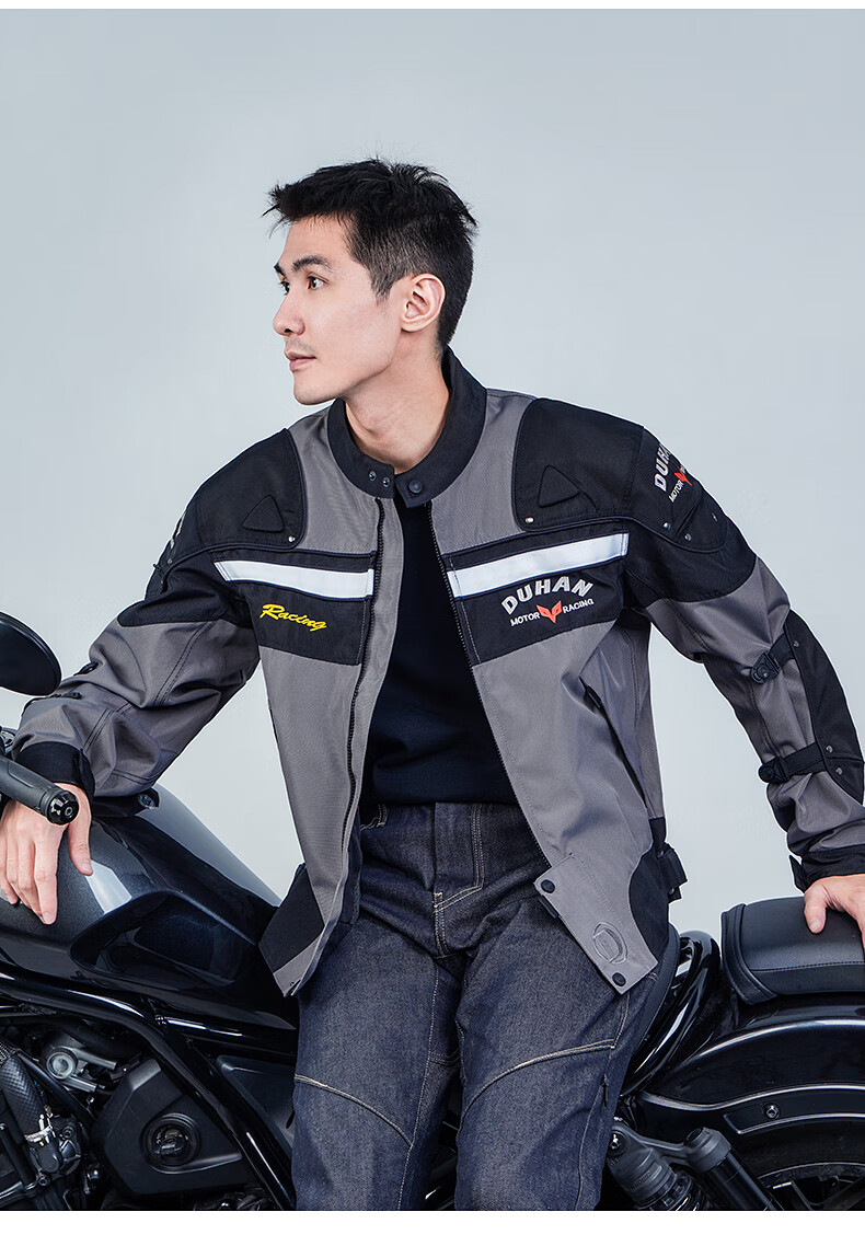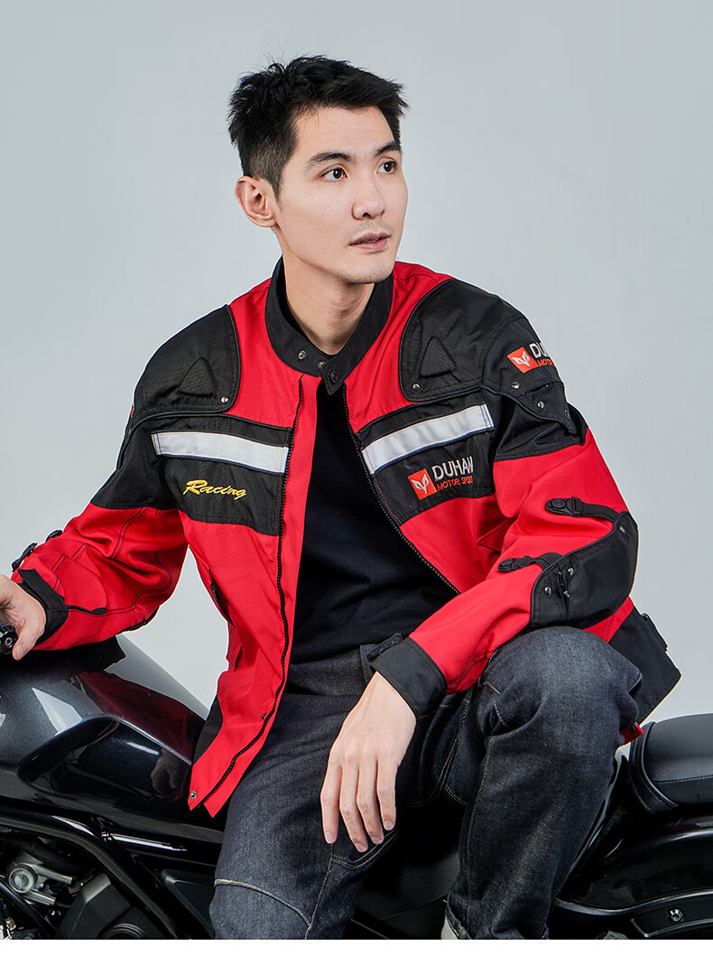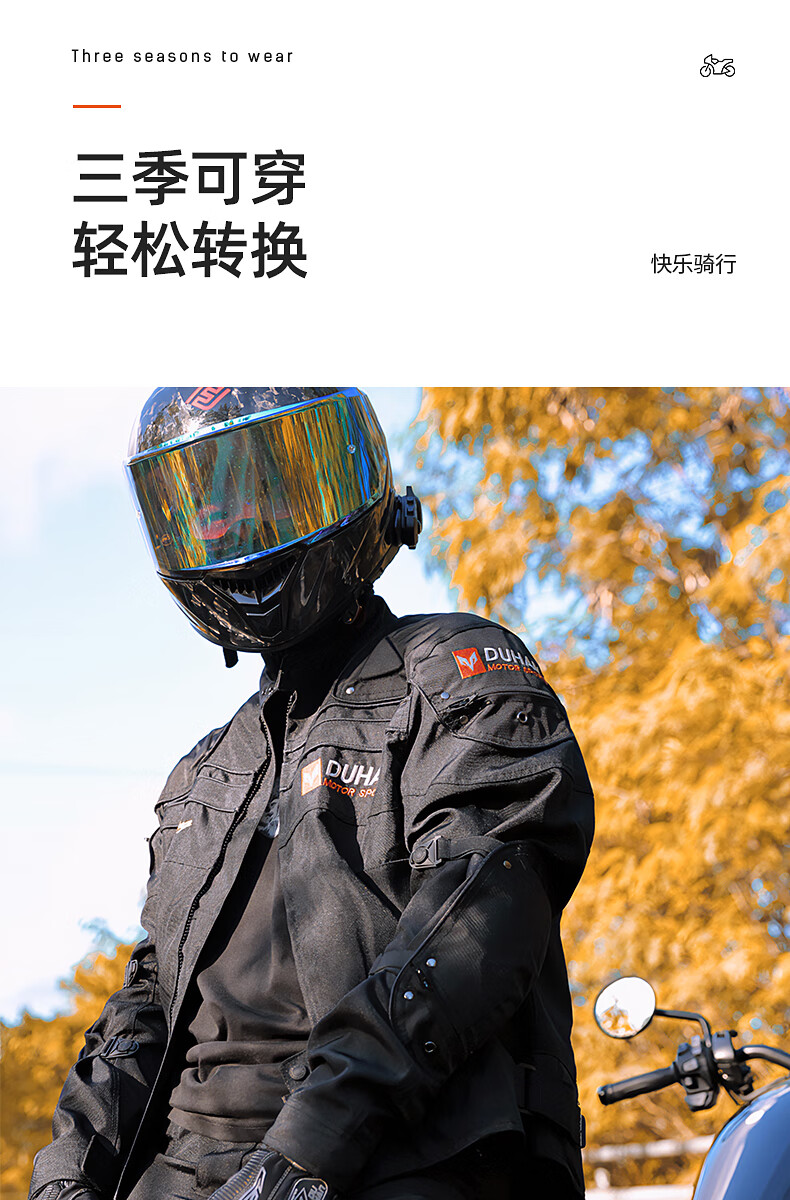 DUHAN Motorcycle Riding Suit Men's Four Seasons Anti-Fall Motorcycle Suit Off-Road Racing Suit Rider Pants Black Suit (Top + Pants) XL