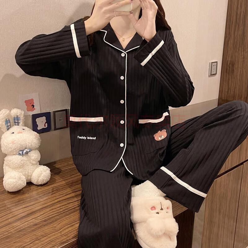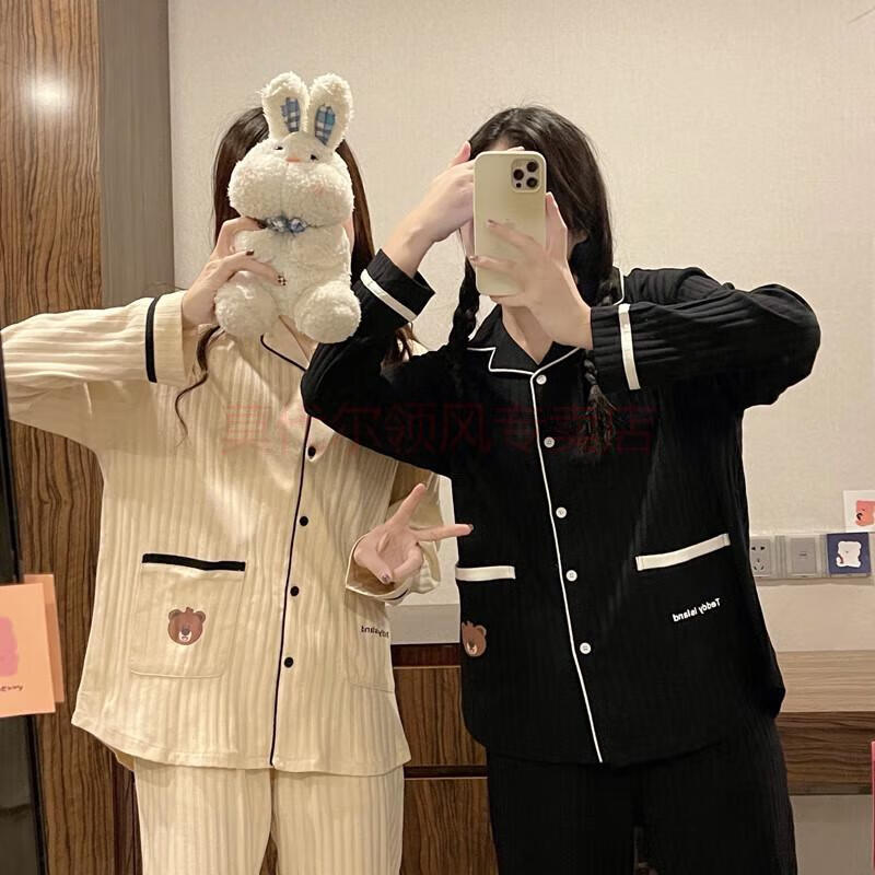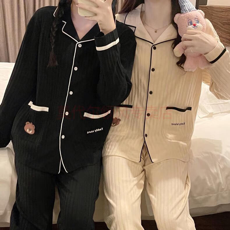 Modal couple pajamas for women spring and autumn cartoon sweet suit long-sleeved cardigan solid color casual wearable pure cotton home clothes pink love L recommended 95-110Jin Jin equals 0.5 kg