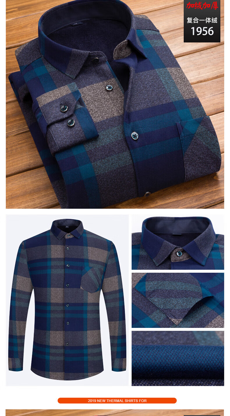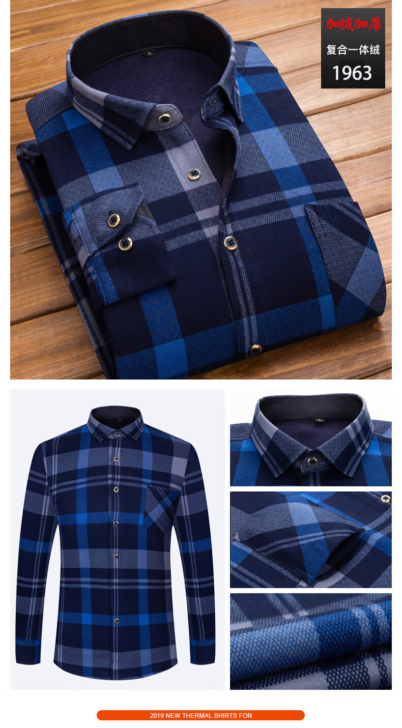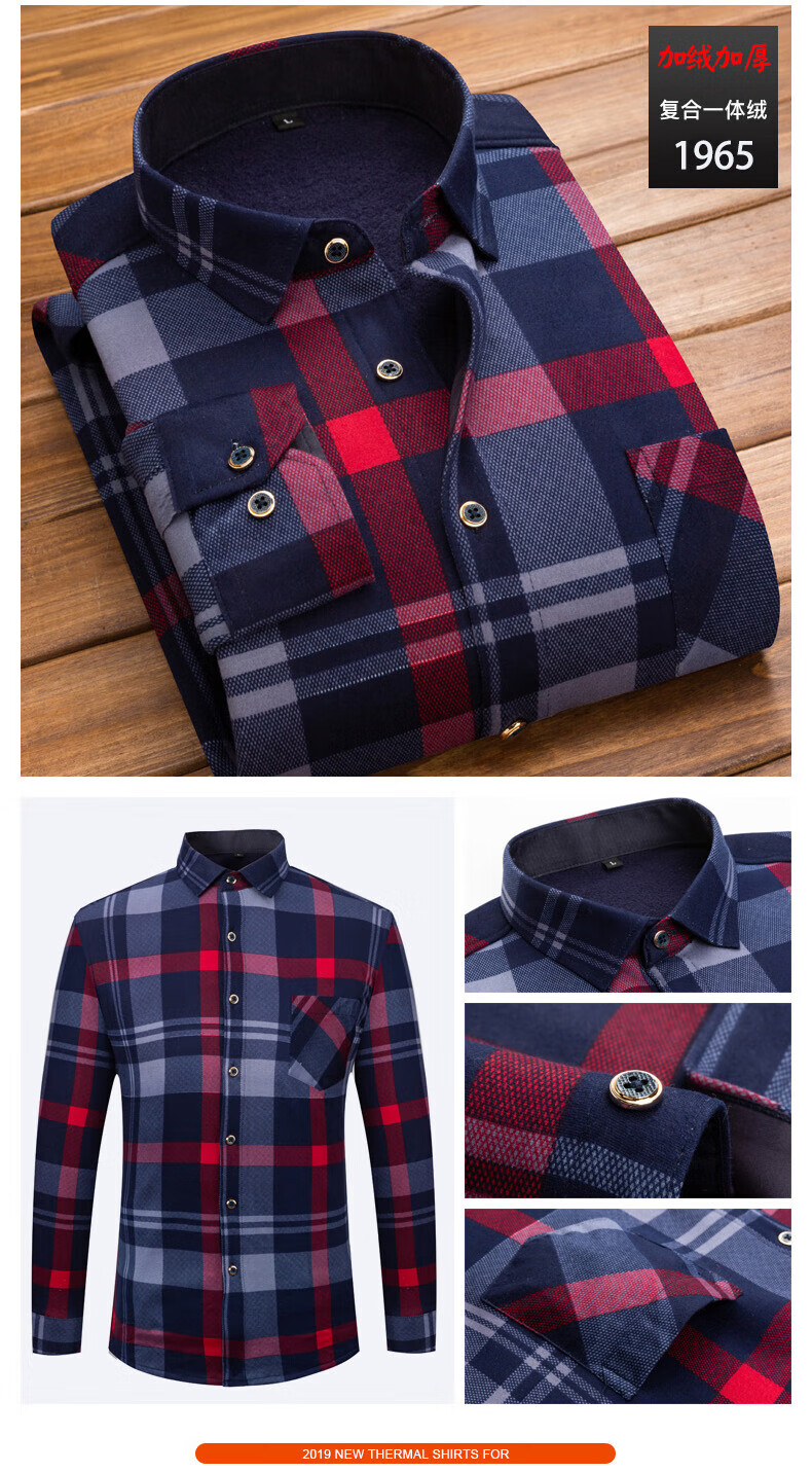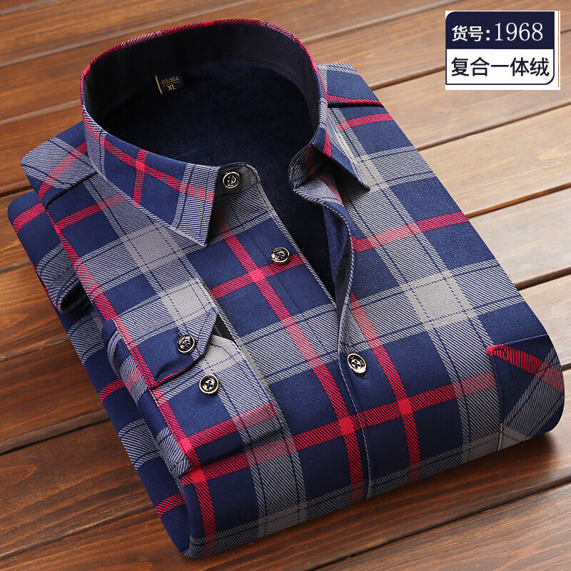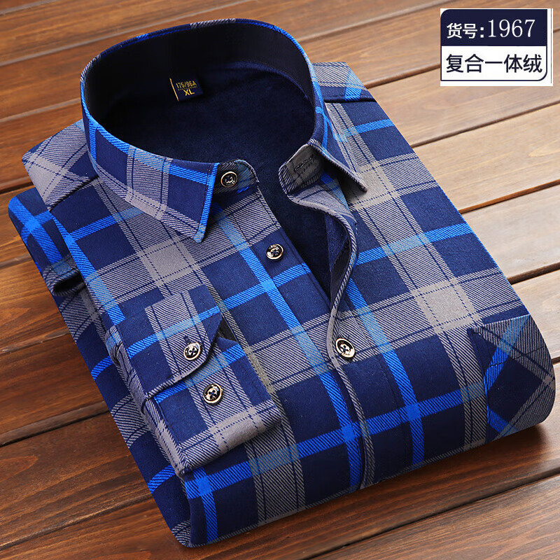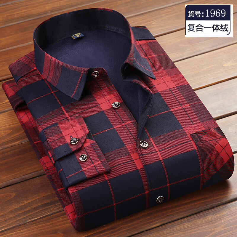 Woodpecker (TUCANO) winter warm shirt plus velvet and thickened men's long-sleeved shirt plaid printed velvet middle-aged and elderly dad's bottoming top 601 L