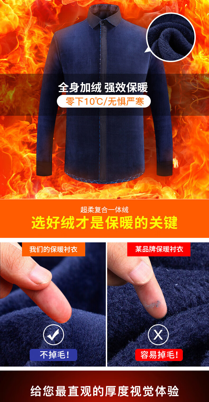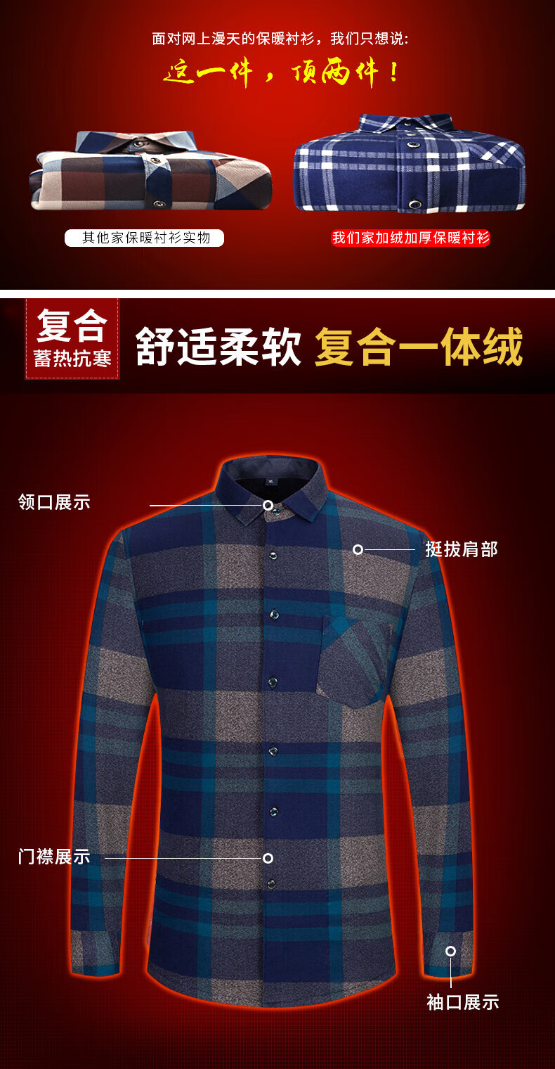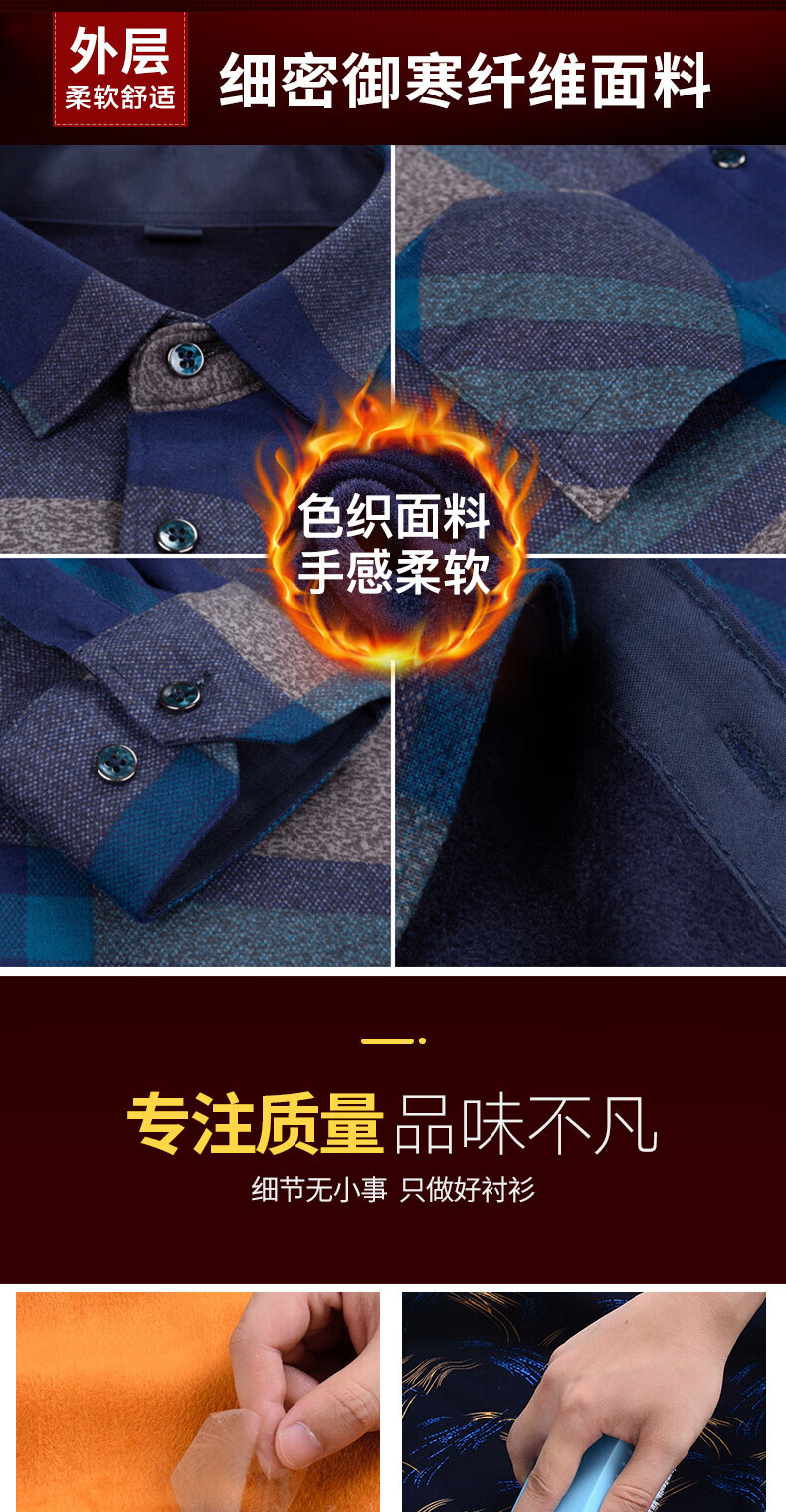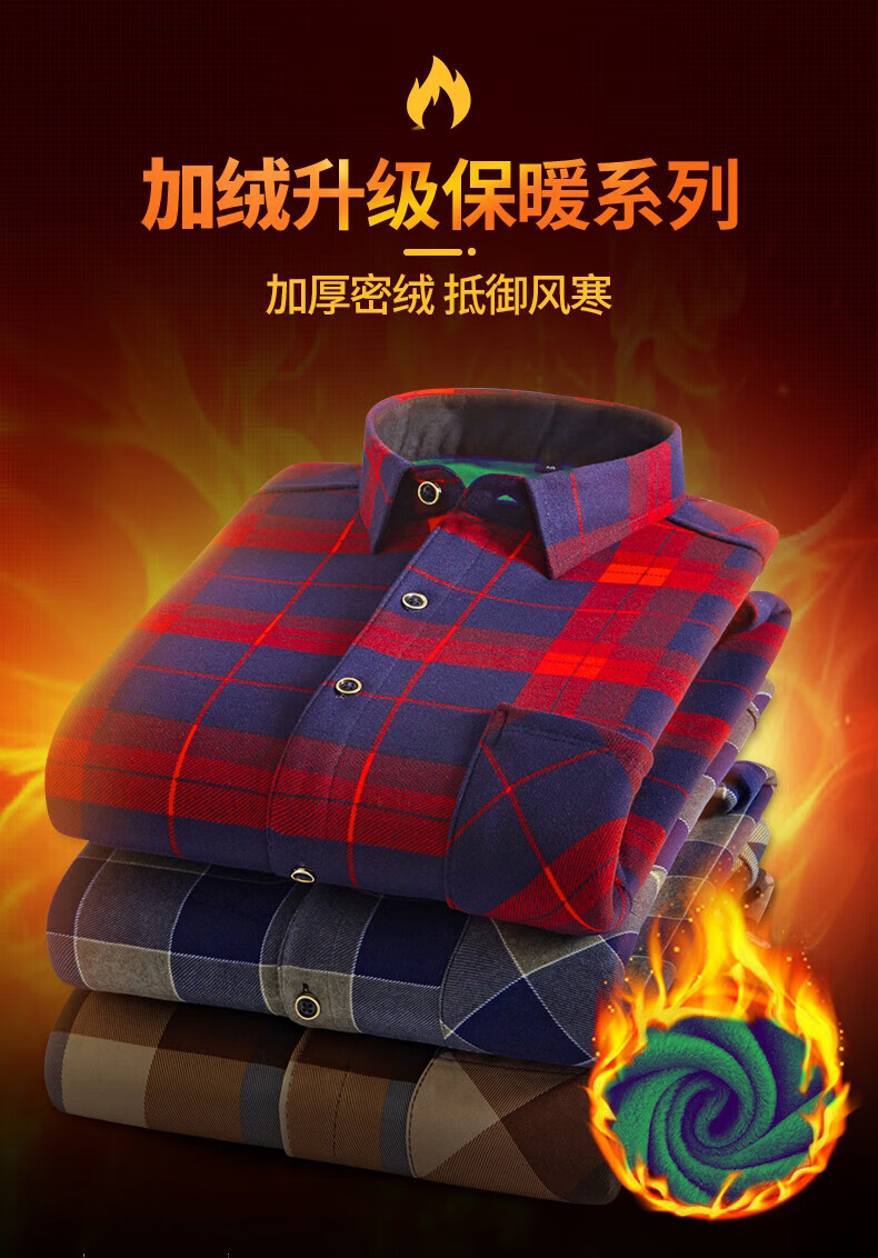 Woodpecker (TUCANO) winter warm shirt plus velvet and thickened men's long-sleeved shirt plaid printed velvet middle-aged and elderly dad's bottoming top 601 L