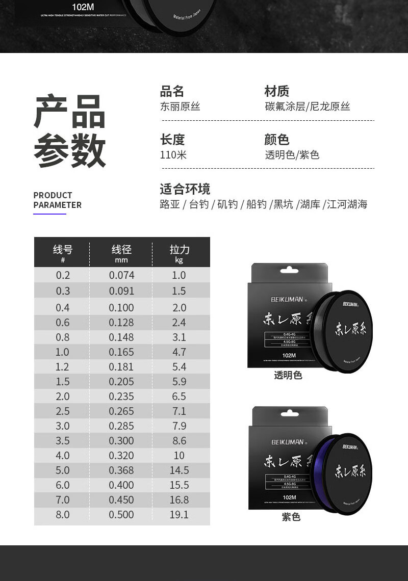 Japan imported authentic Toray original silk high-end Li fishing line strong pull main line nylon thread sub-line non-coiled fishing line Toray original silk purple main line 102 meters No. 3