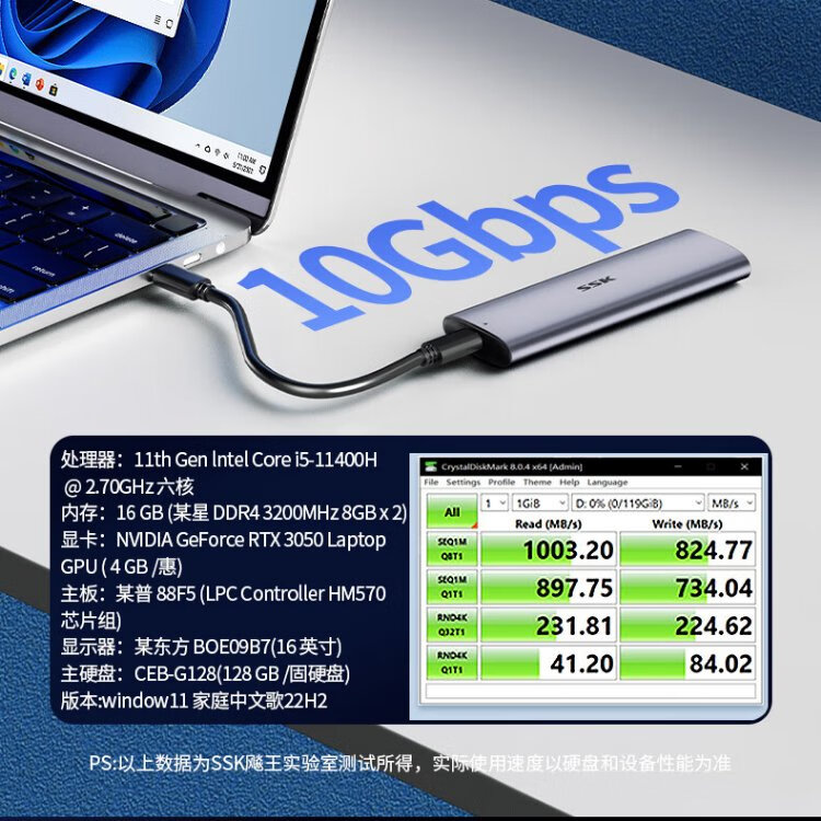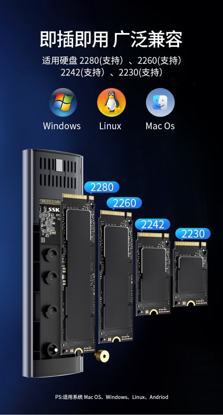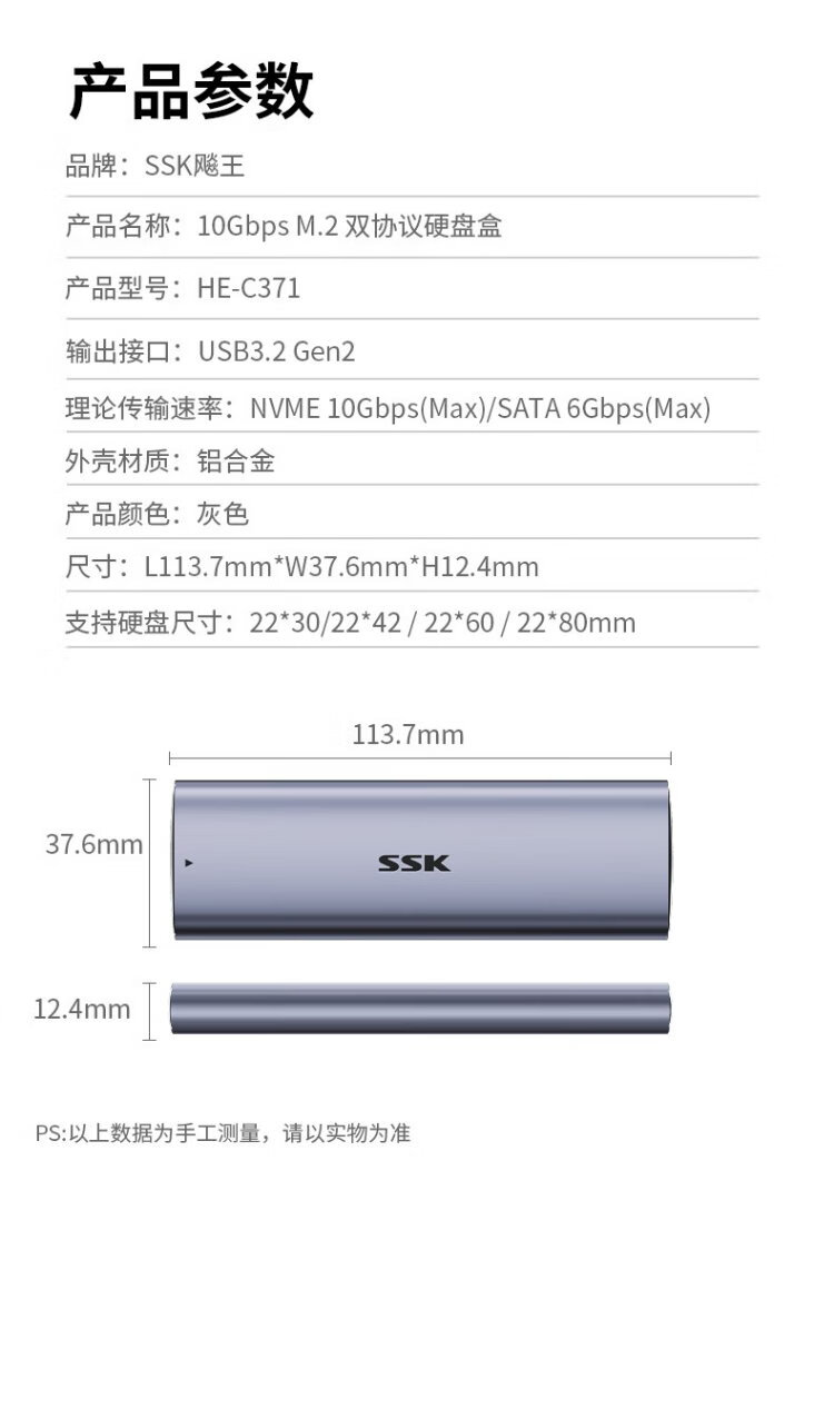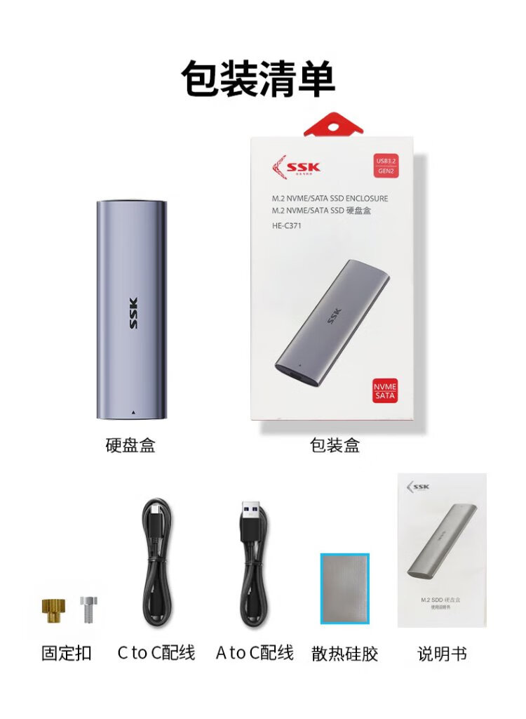 Biao Wang (SSK) m2 mobile solid state drive box m2 NGFF/NVMe m.2 solid state drive box external external dual protocol TypeC NVMe 10Gbps C326 with USB cable