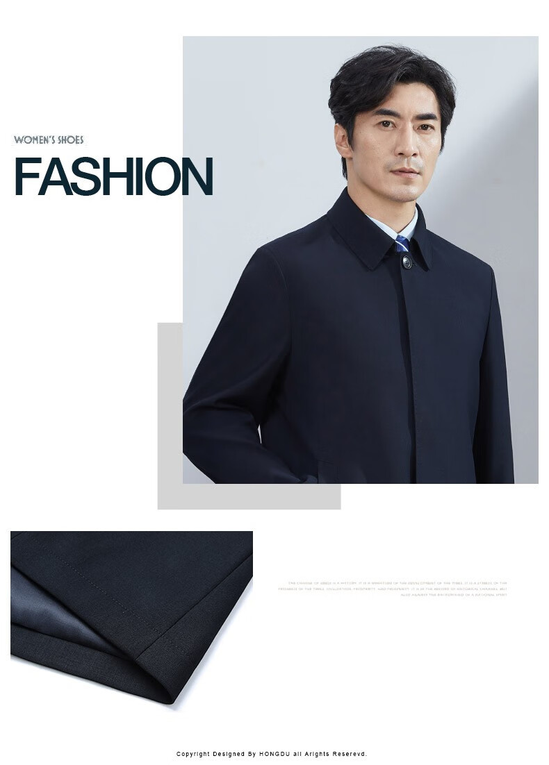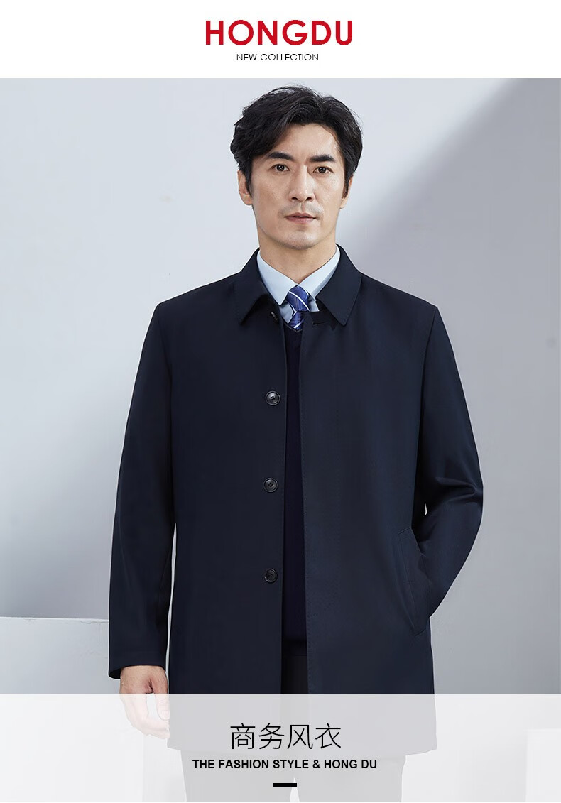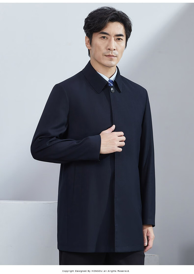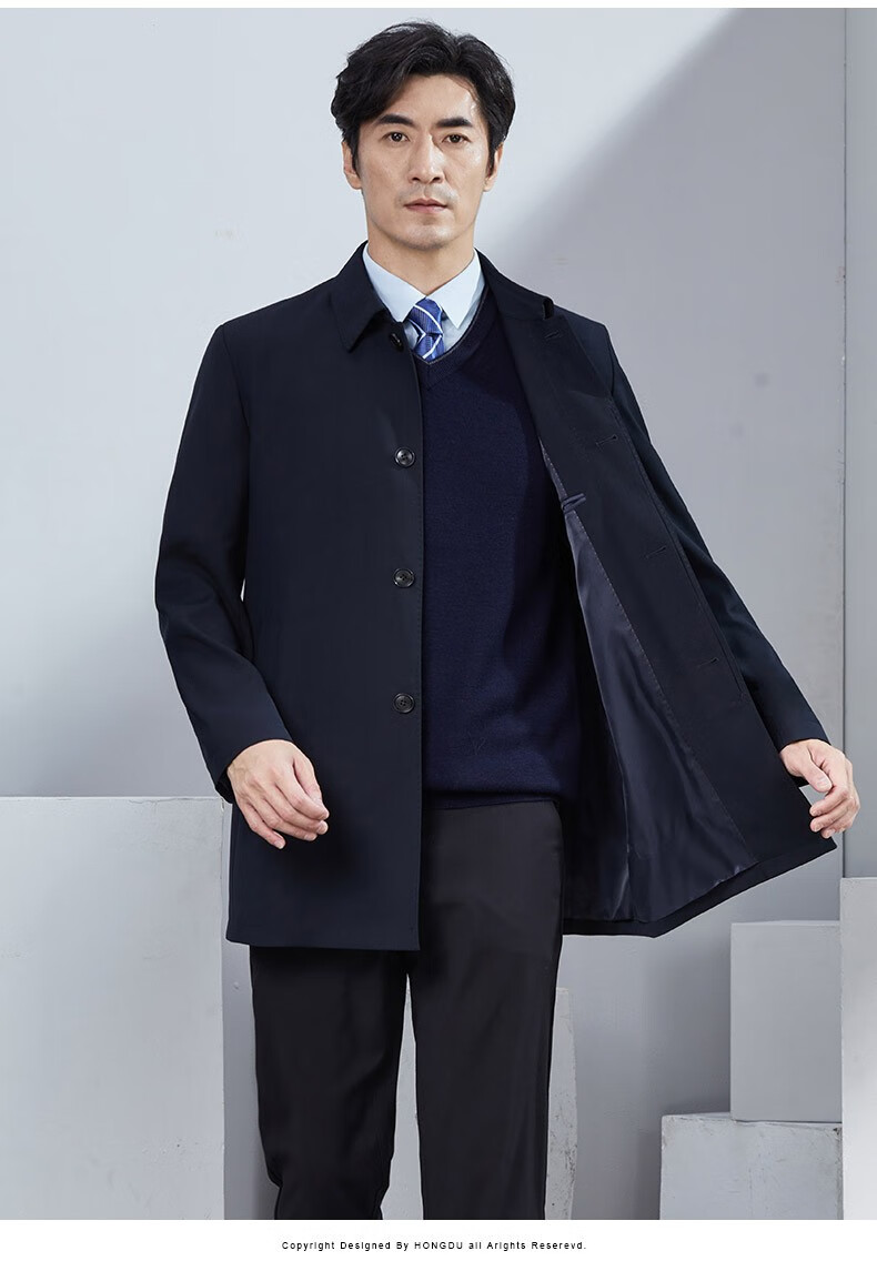 Hongdu Autumn and Winter New Windbreaker Men's Mid-Length Lapel Buttoned Formal Business Meeting Middle-aged Father's Jacket Navy CS7607-1 XL 180/96A
