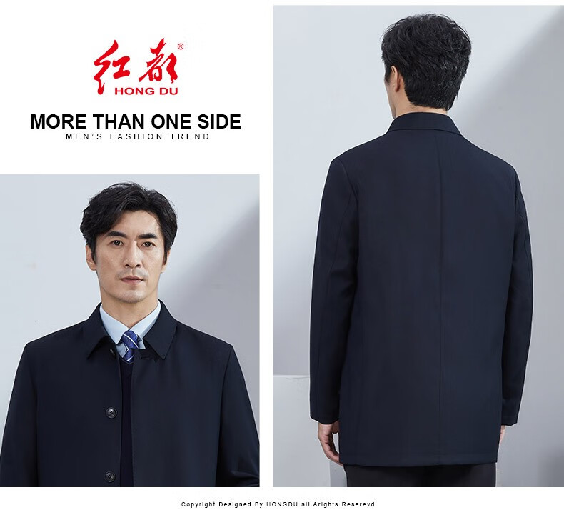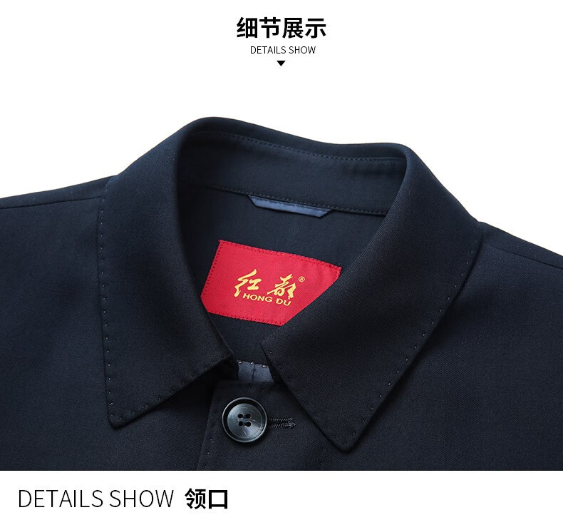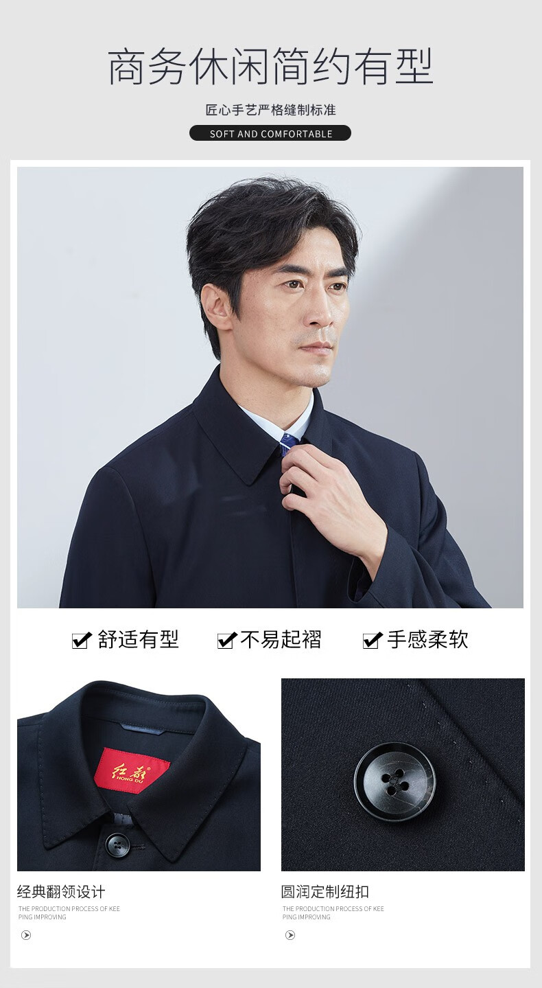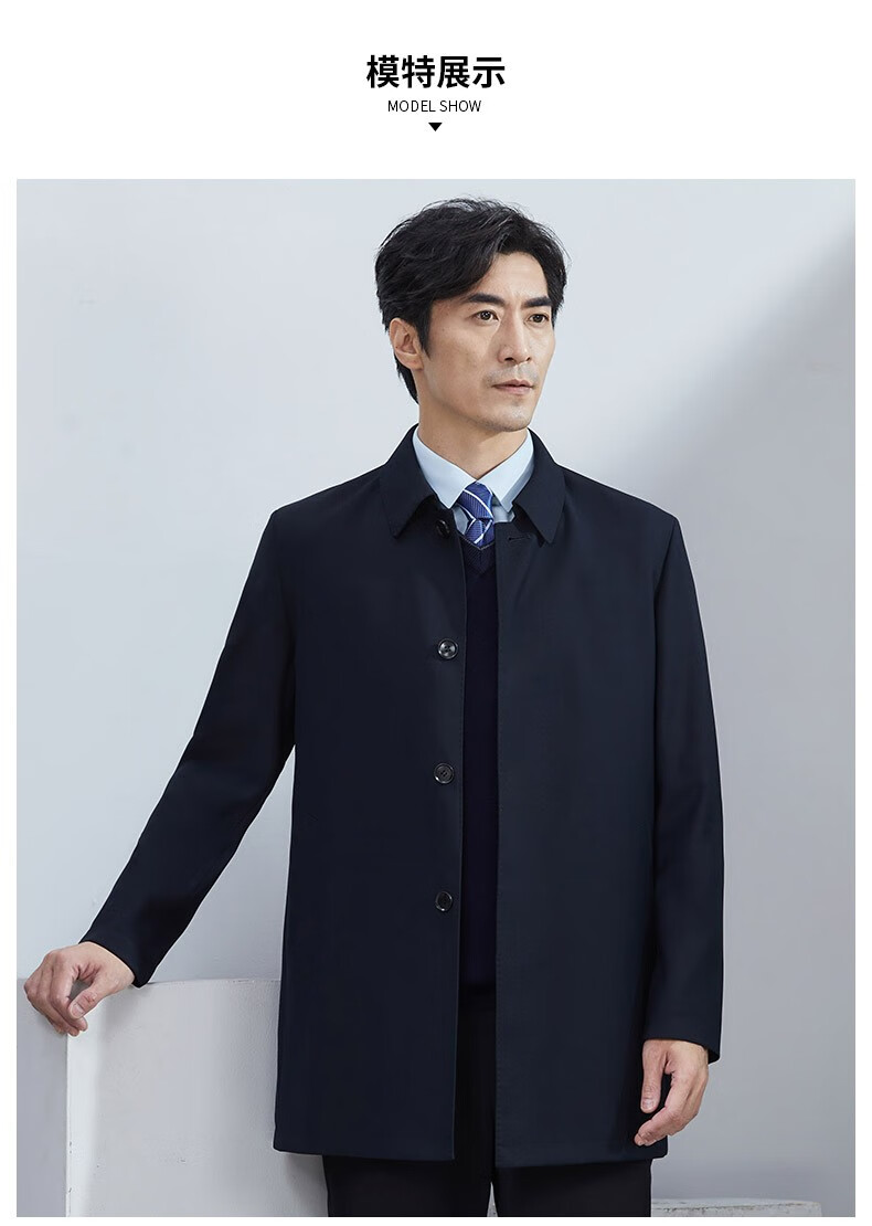 Hongdu Autumn and Winter New Windbreaker Men's Mid-Length Lapel Buttoned Formal Business Meeting Middle-aged Father's Jacket Navy CS7607-1 XL 180/96A
