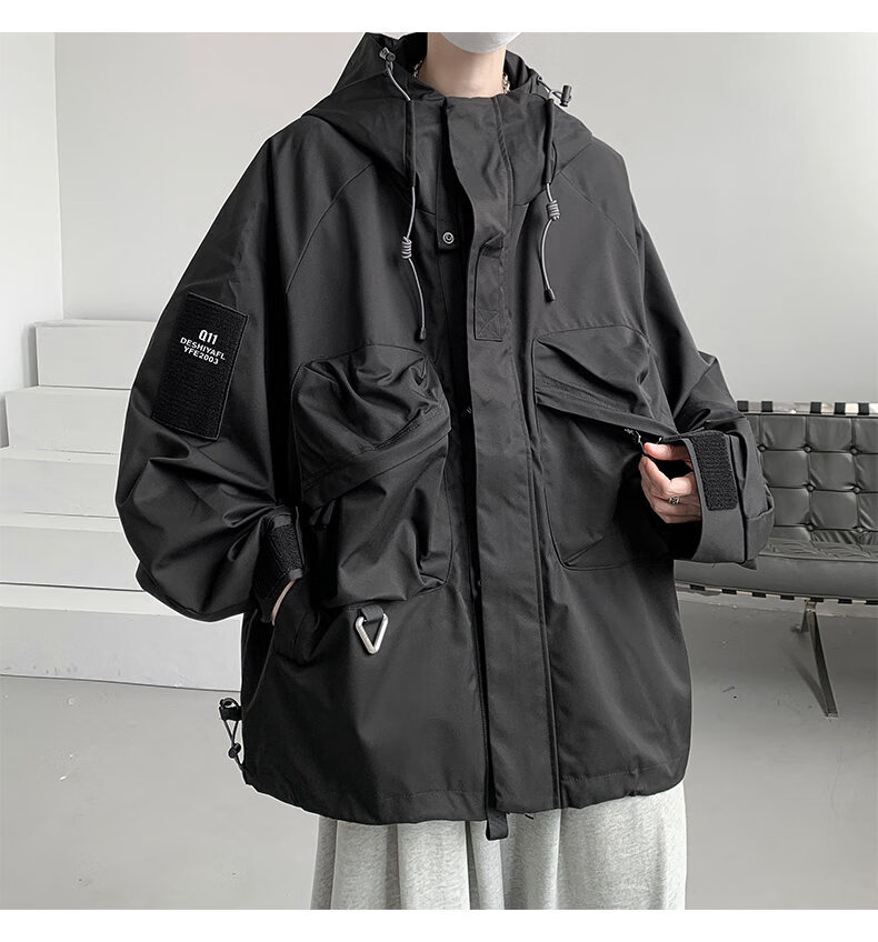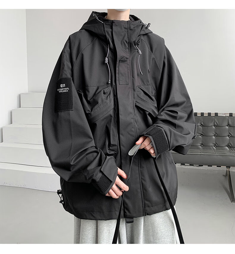 OEMG American functional velvet and thickened jacket for men and women in spring, autumn and winter trendy outdoor couple's thermal jacket black XL recommended 120-135 Jin Jin equals 0.5 kg