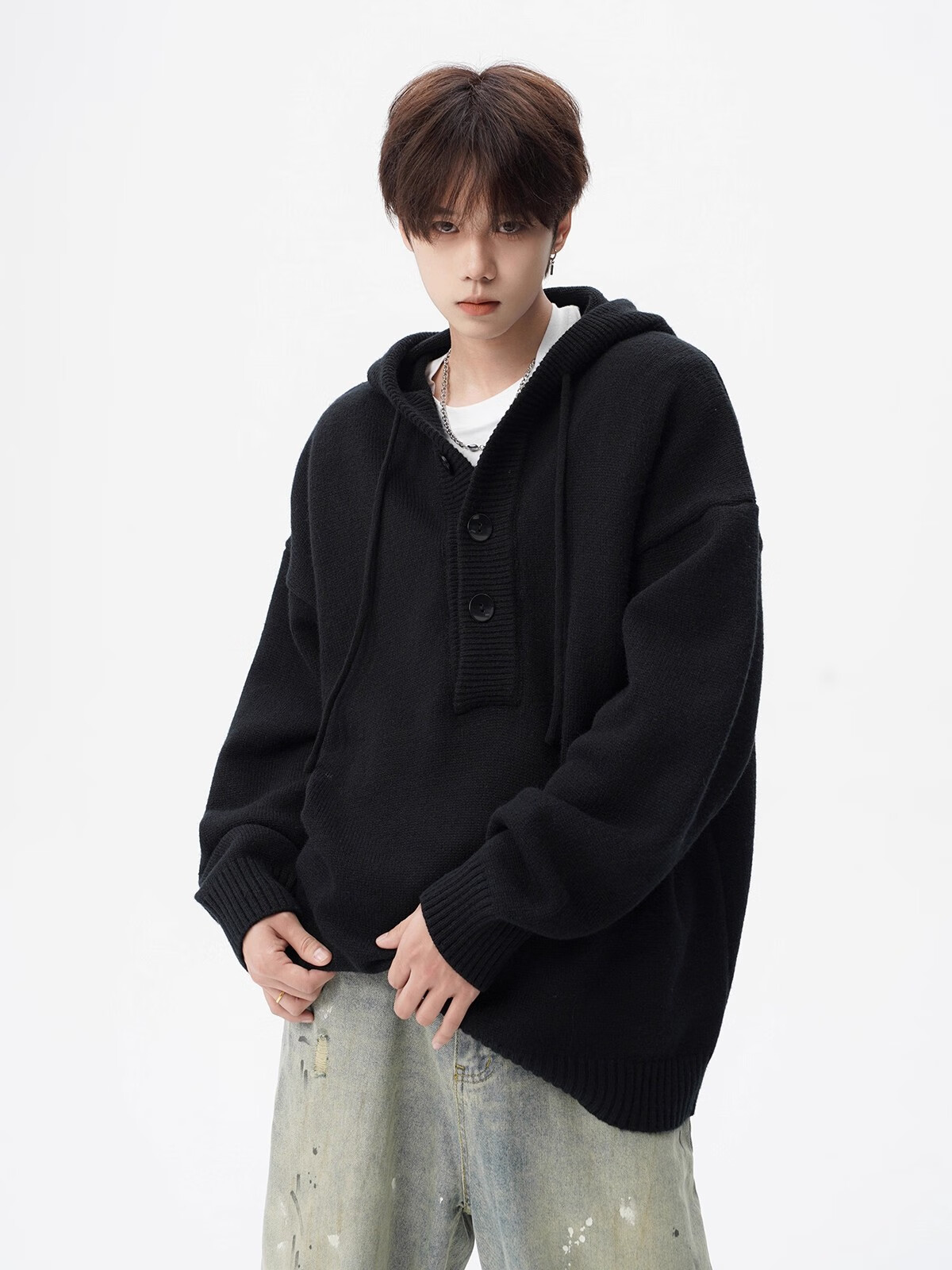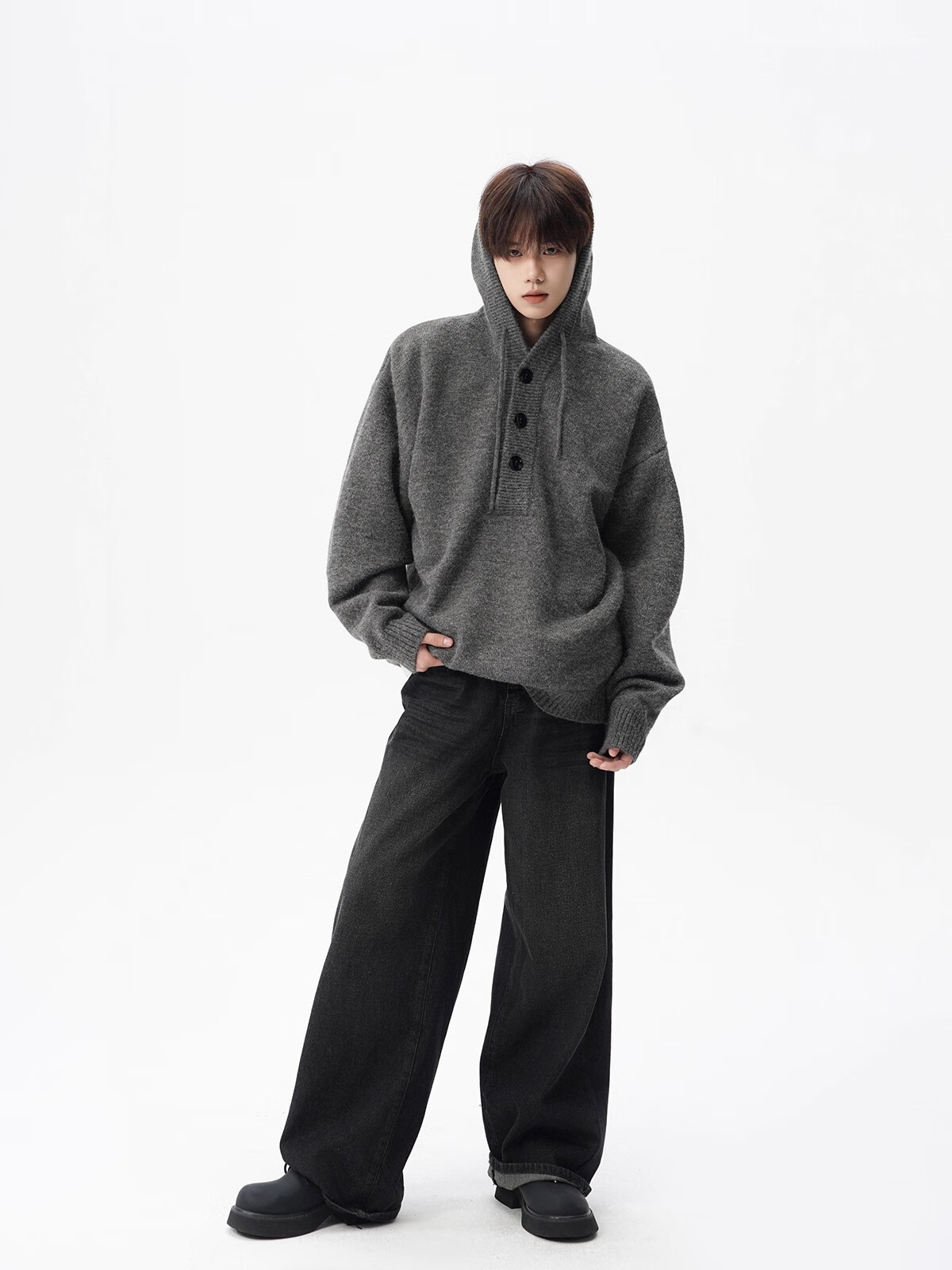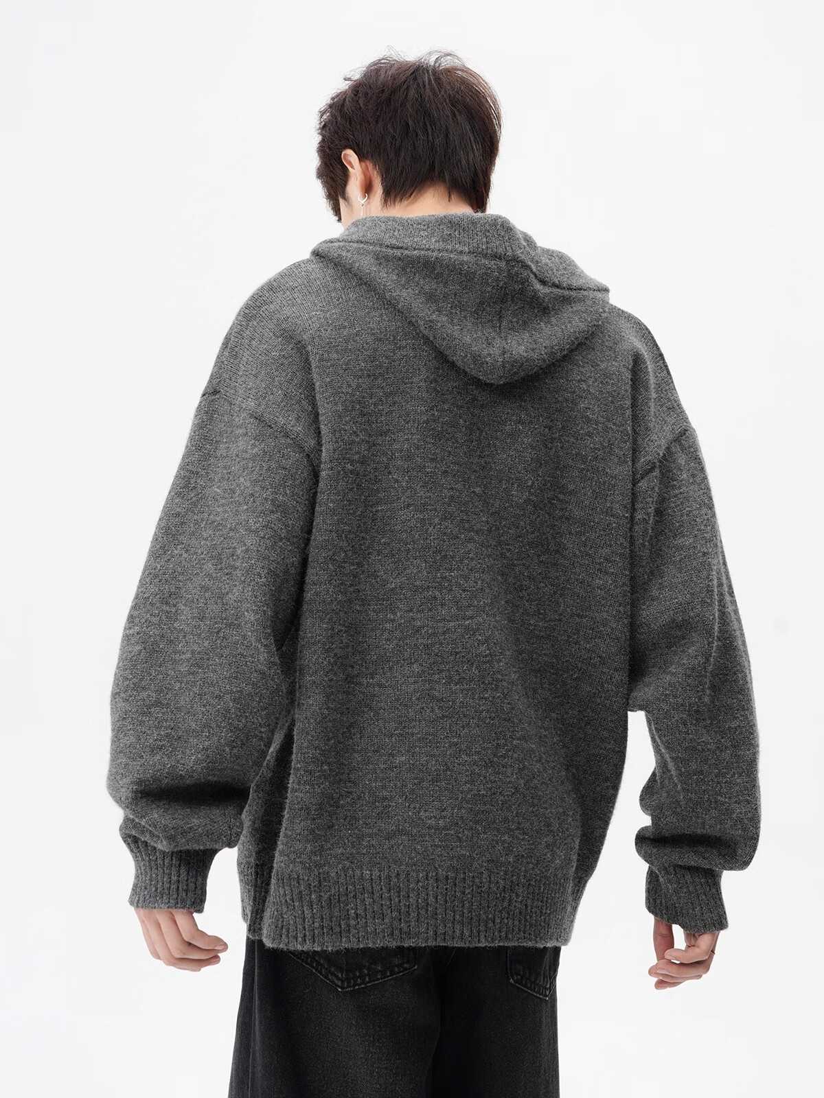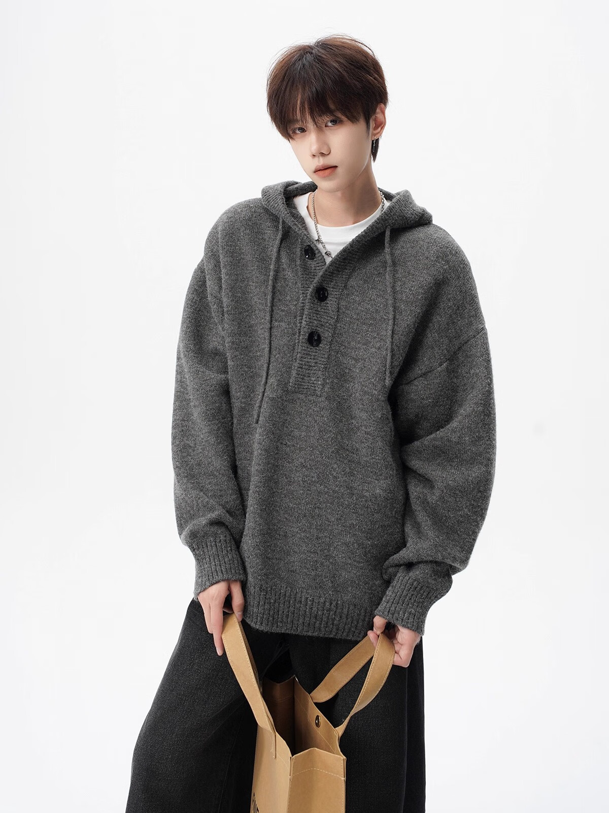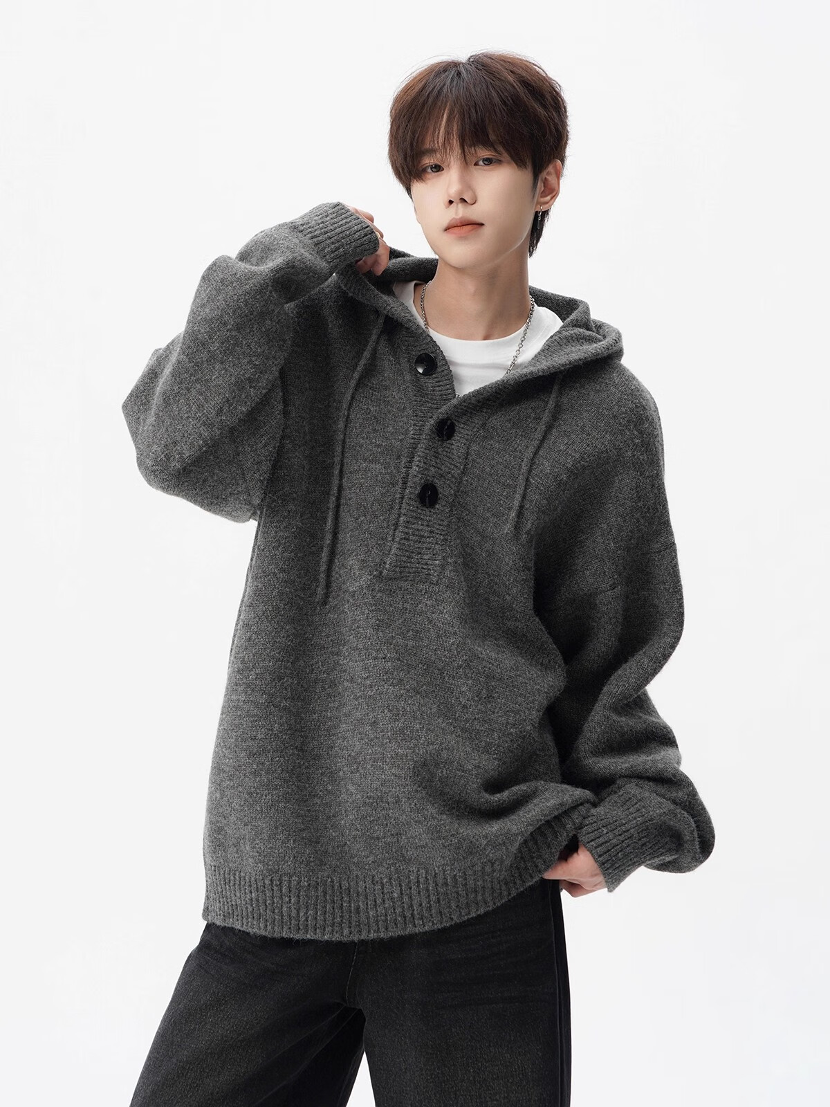 OEMG American heavyweight hooded sweater for men in autumn and winter trendy high-end knitted sweater button top lazy jacket gray XL recommended 110-130Jin Jin equals 0.5 kg