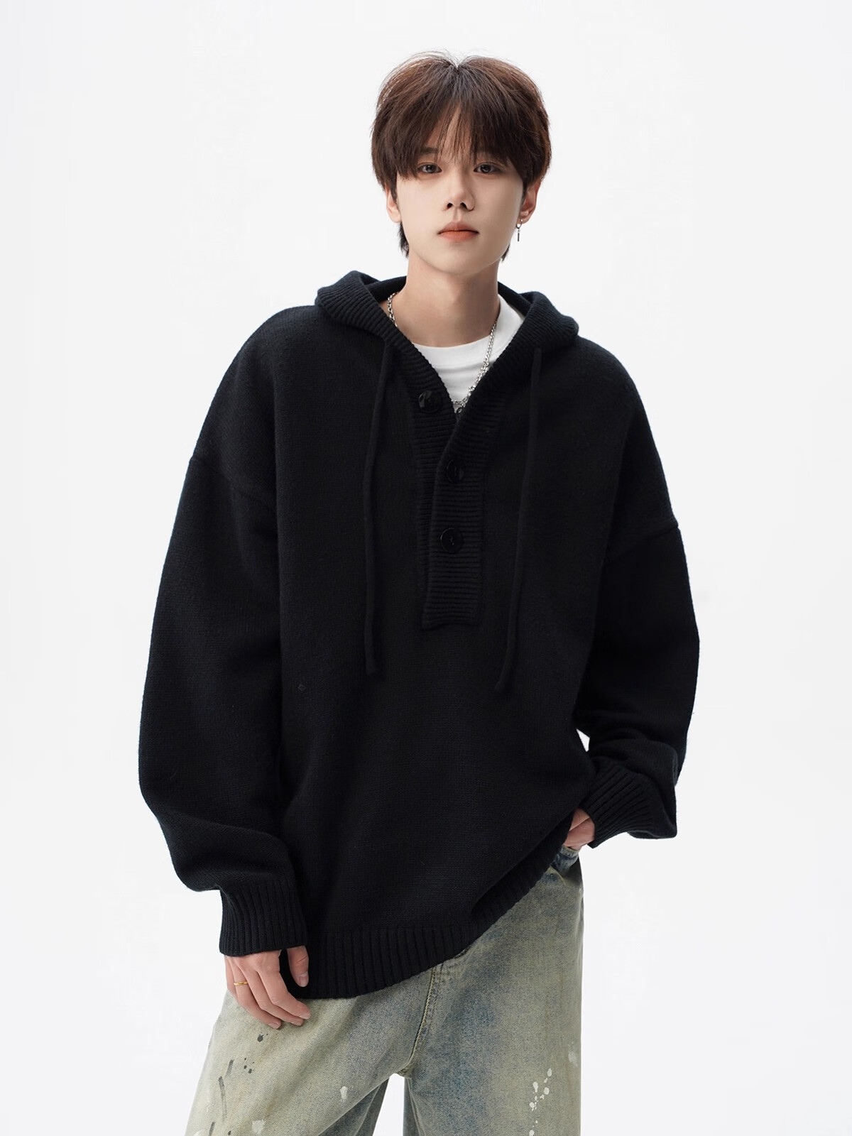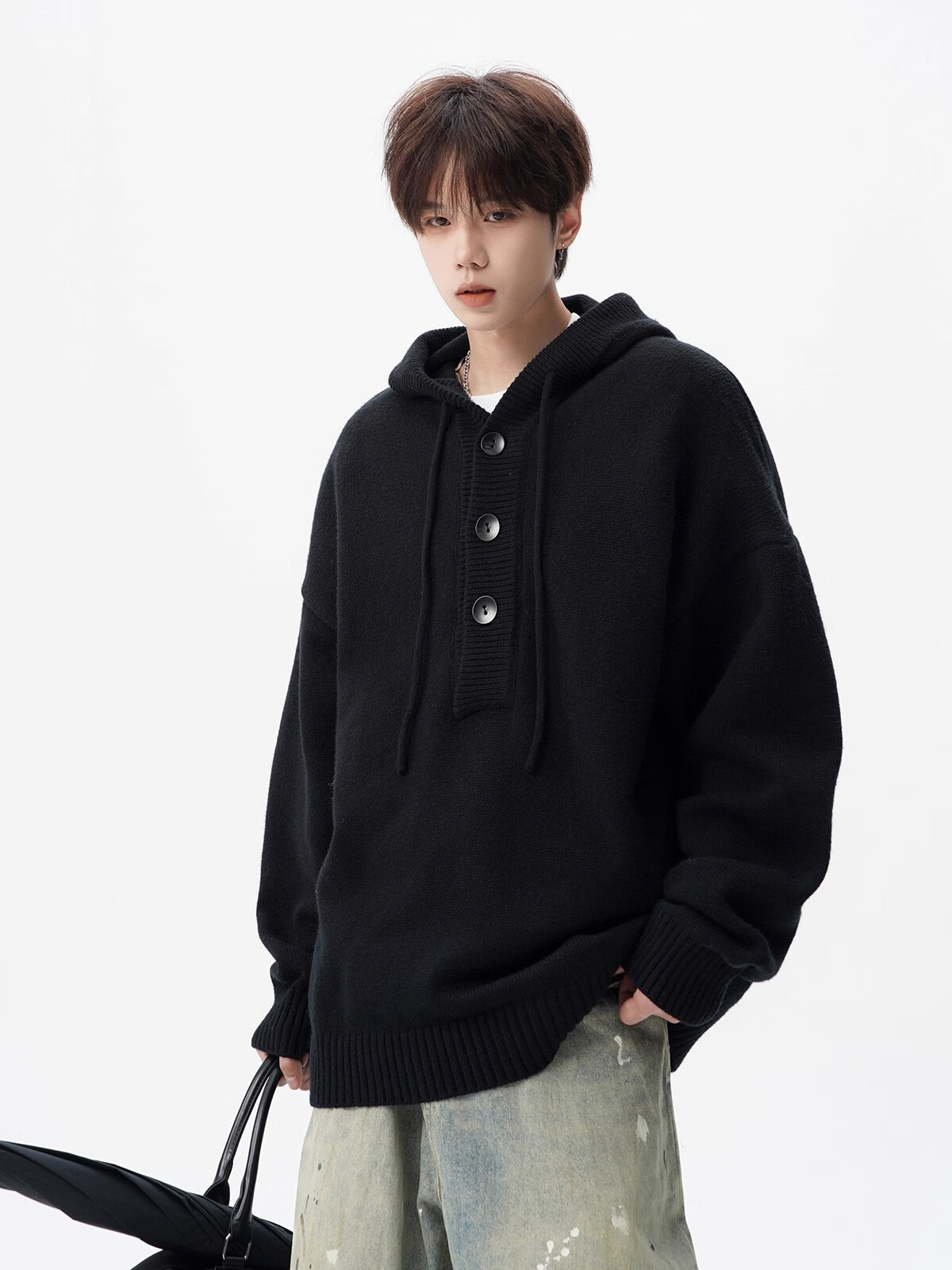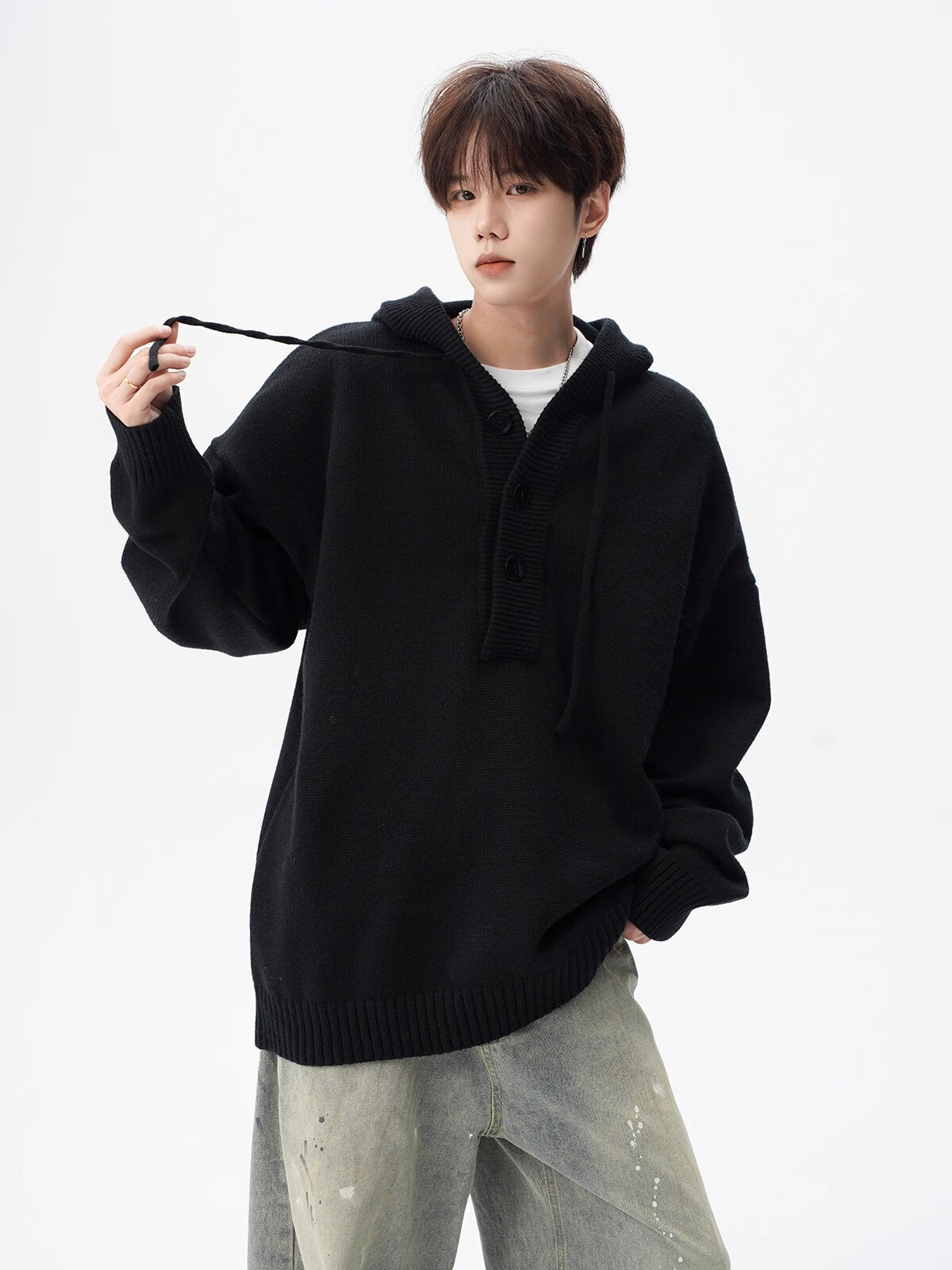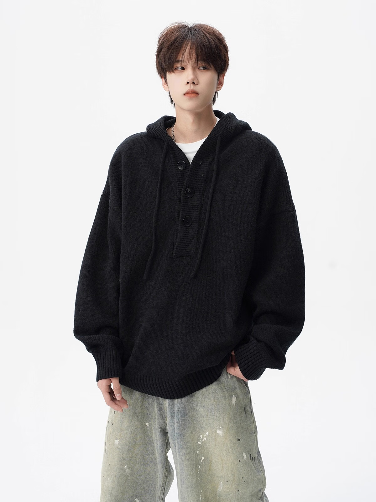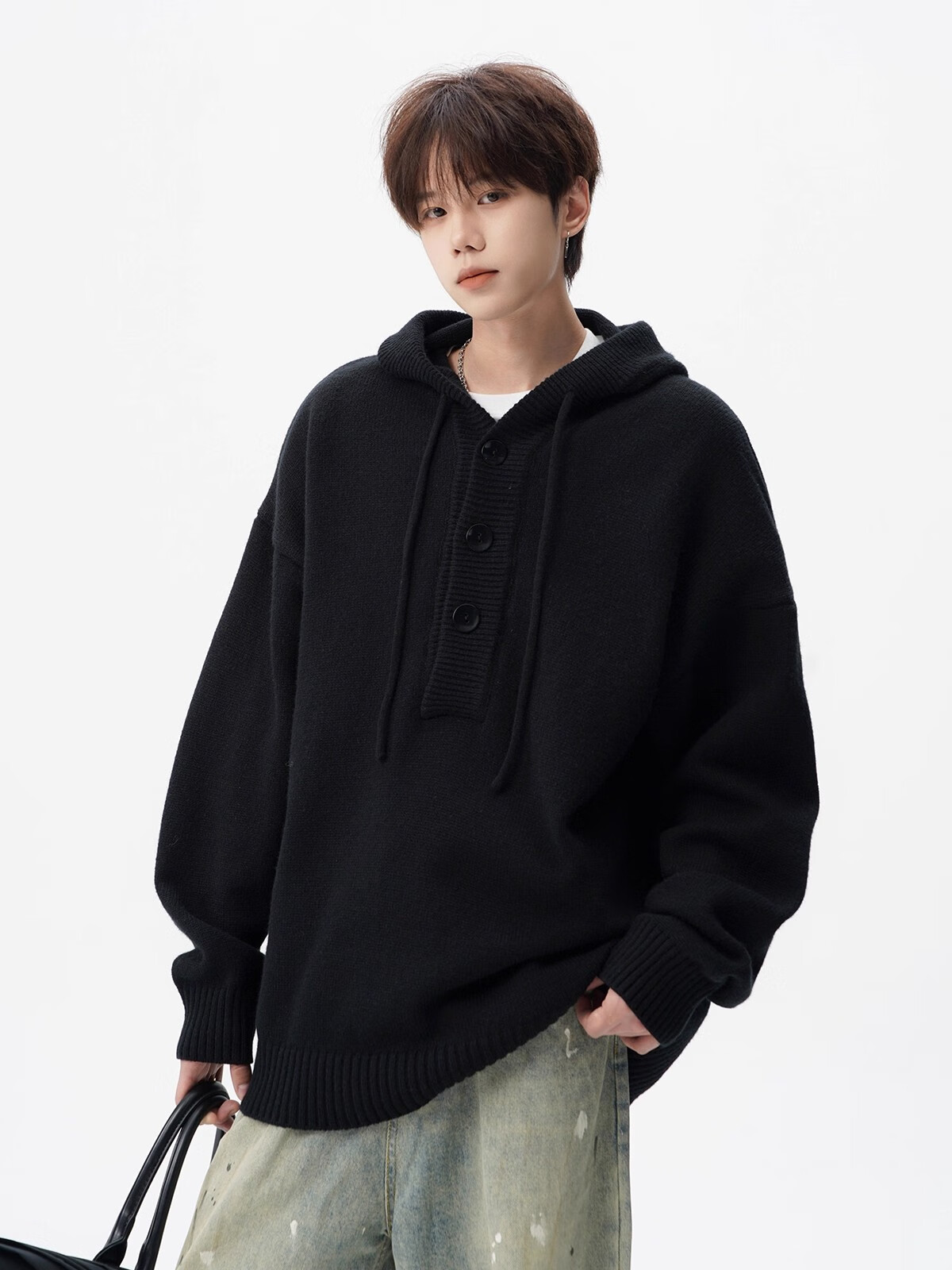 OEMG American heavyweight hooded sweater for men in autumn and winter trendy high-end knitted sweater button top lazy jacket gray XL recommended 110-130Jin Jin equals 0.5 kg