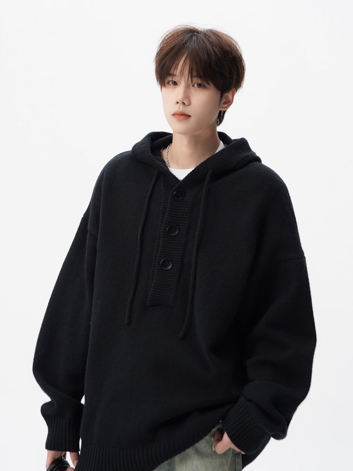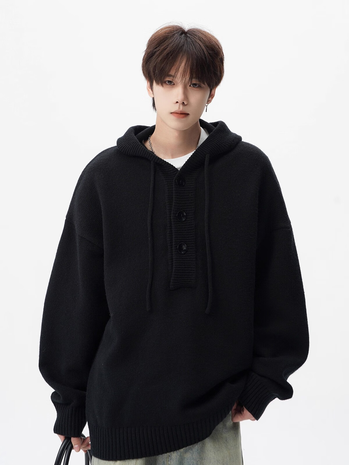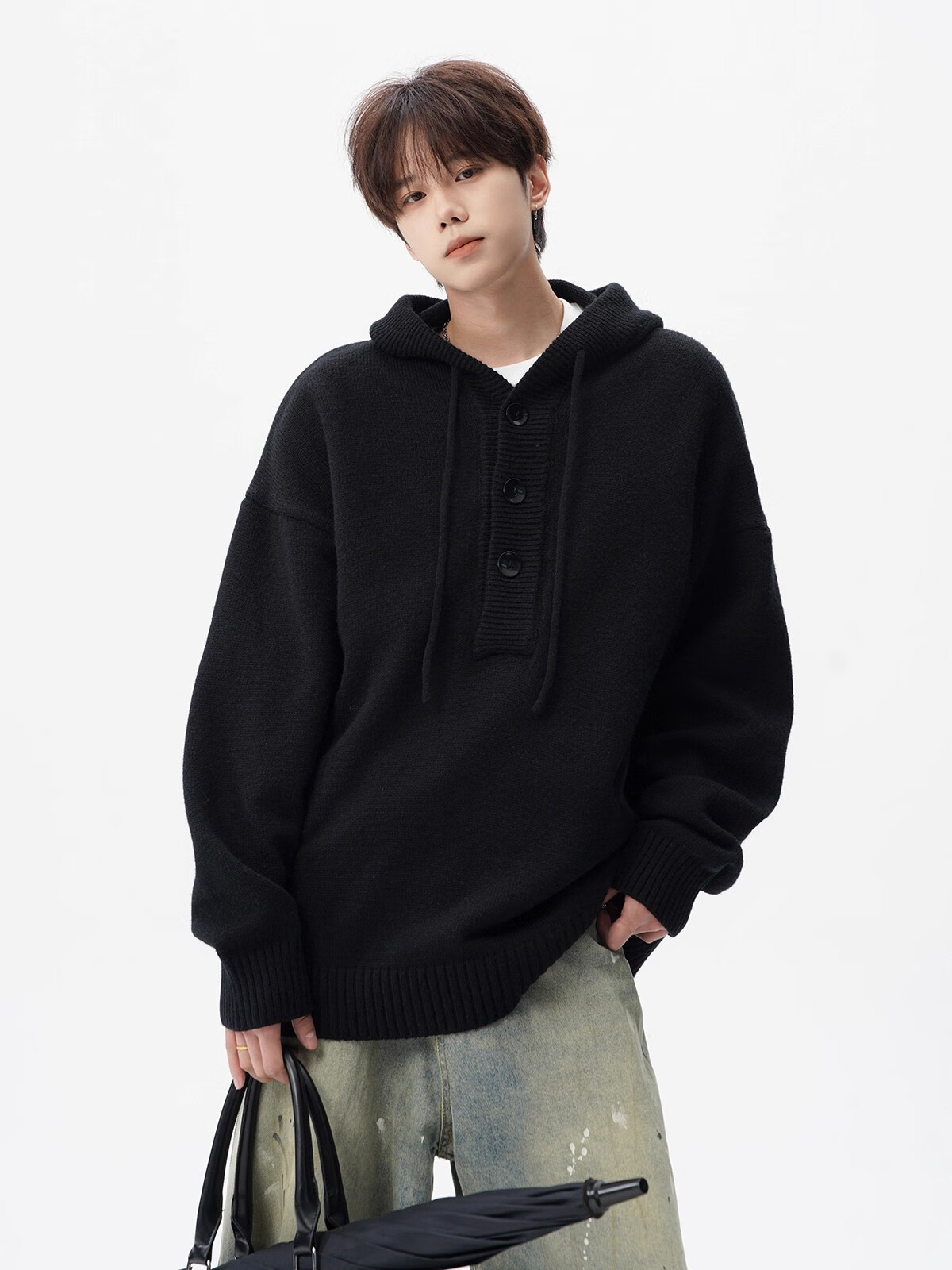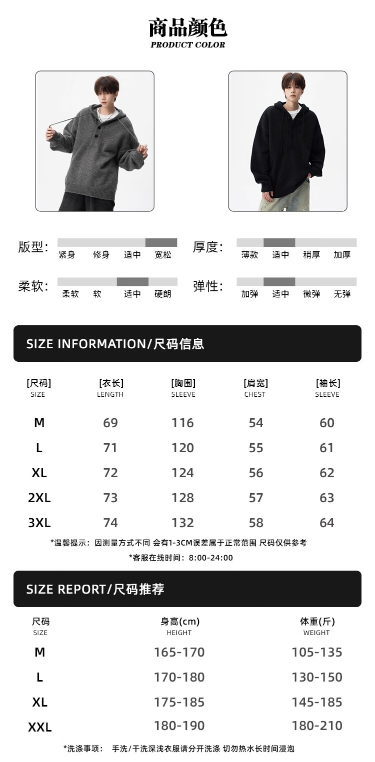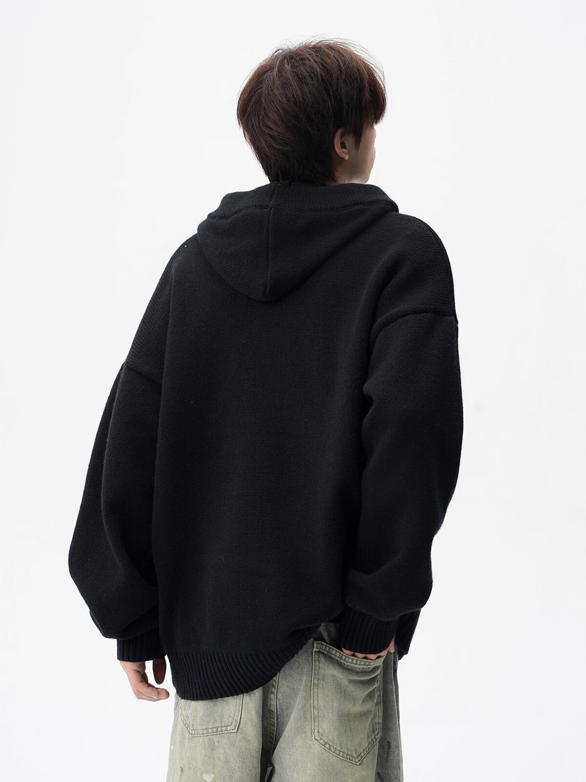 OEMG American heavyweight hooded sweater for men in autumn and winter trendy high-end knitted sweater button top lazy jacket gray XL recommended 110-130Jin Jin equals 0.5 kg