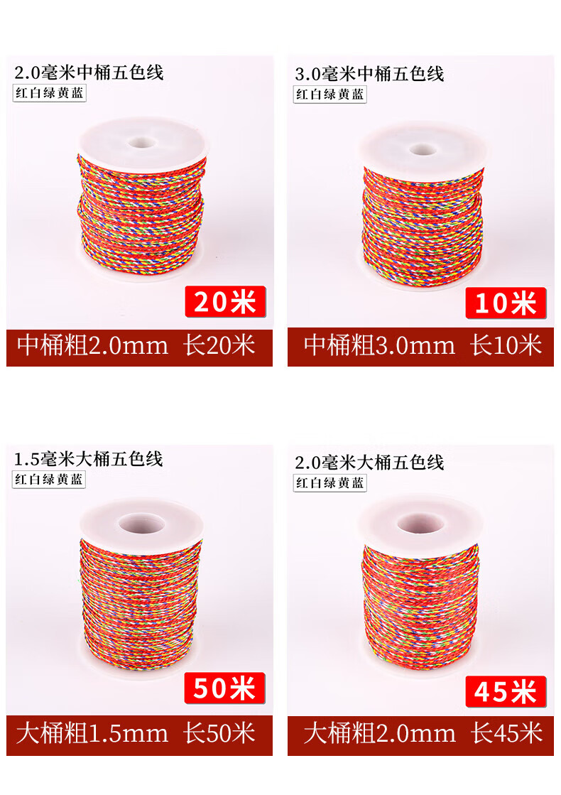 Kalevin five-color thread diy braided five-color red rope Dragon Boat Festival multi-colored thread braided bracelet necklace diamond beaded thread multi-colored rope small bundle 1.5mm 10 meters or so