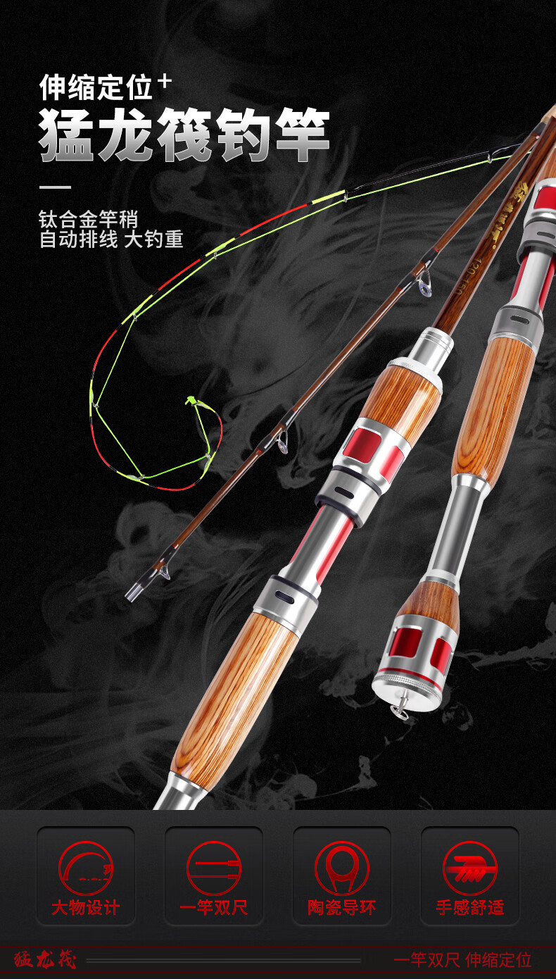Yiying Raft Rod Set, Bridge Raft Rod, Raft Fishing Rod, Full Set of Cannon Rod, Long Rod, Super Hard Road Sub-rod, Tilted Mouth Rod, Fishing Line Components, Water Drop Wheel, 18 Shaft, Black and Red, P200, Left Hand Type, No Specifications