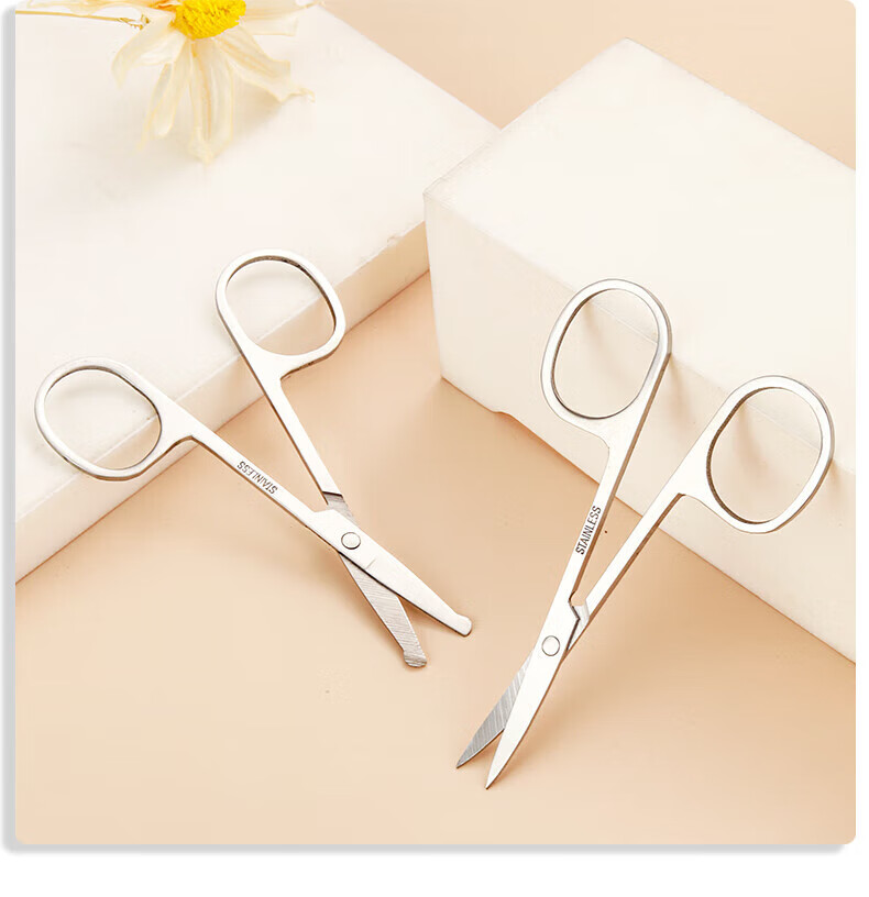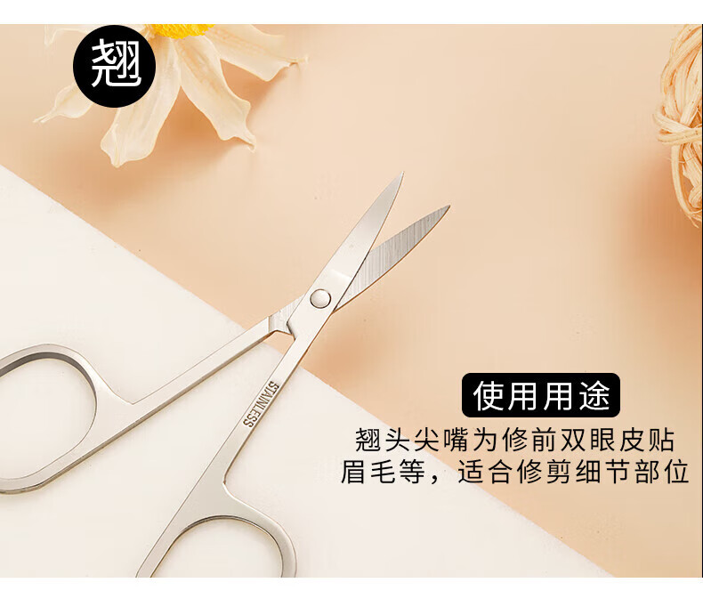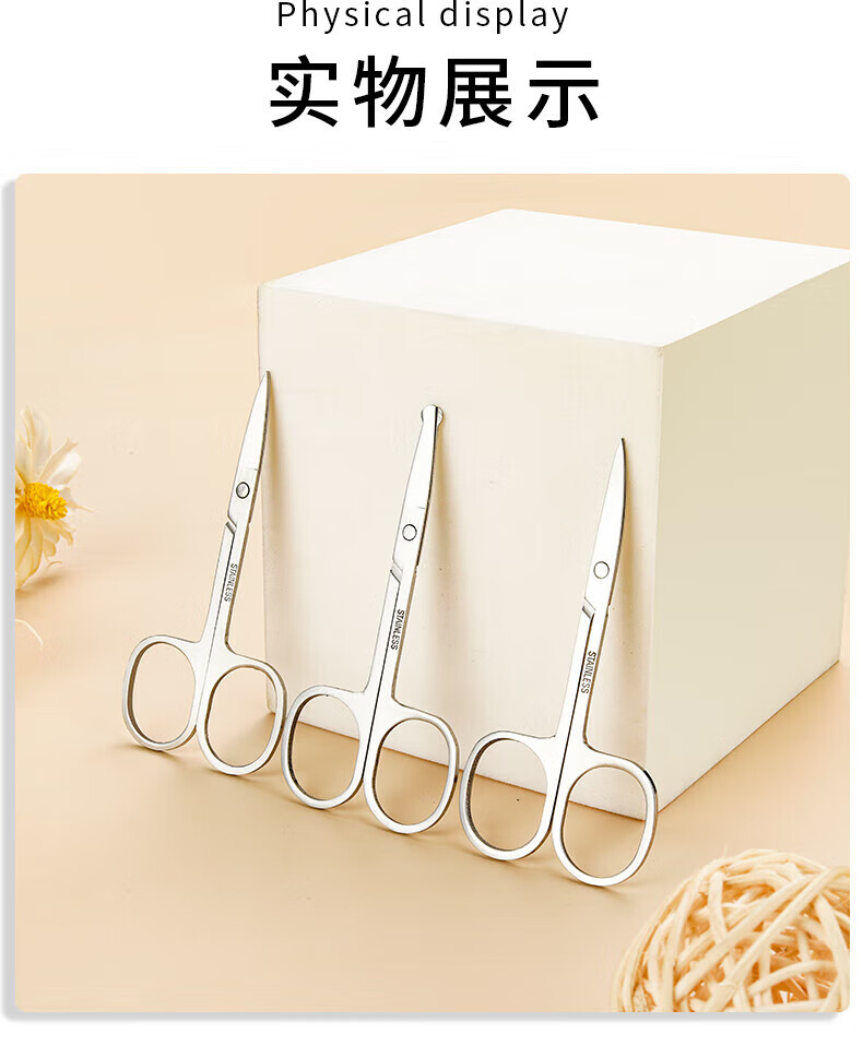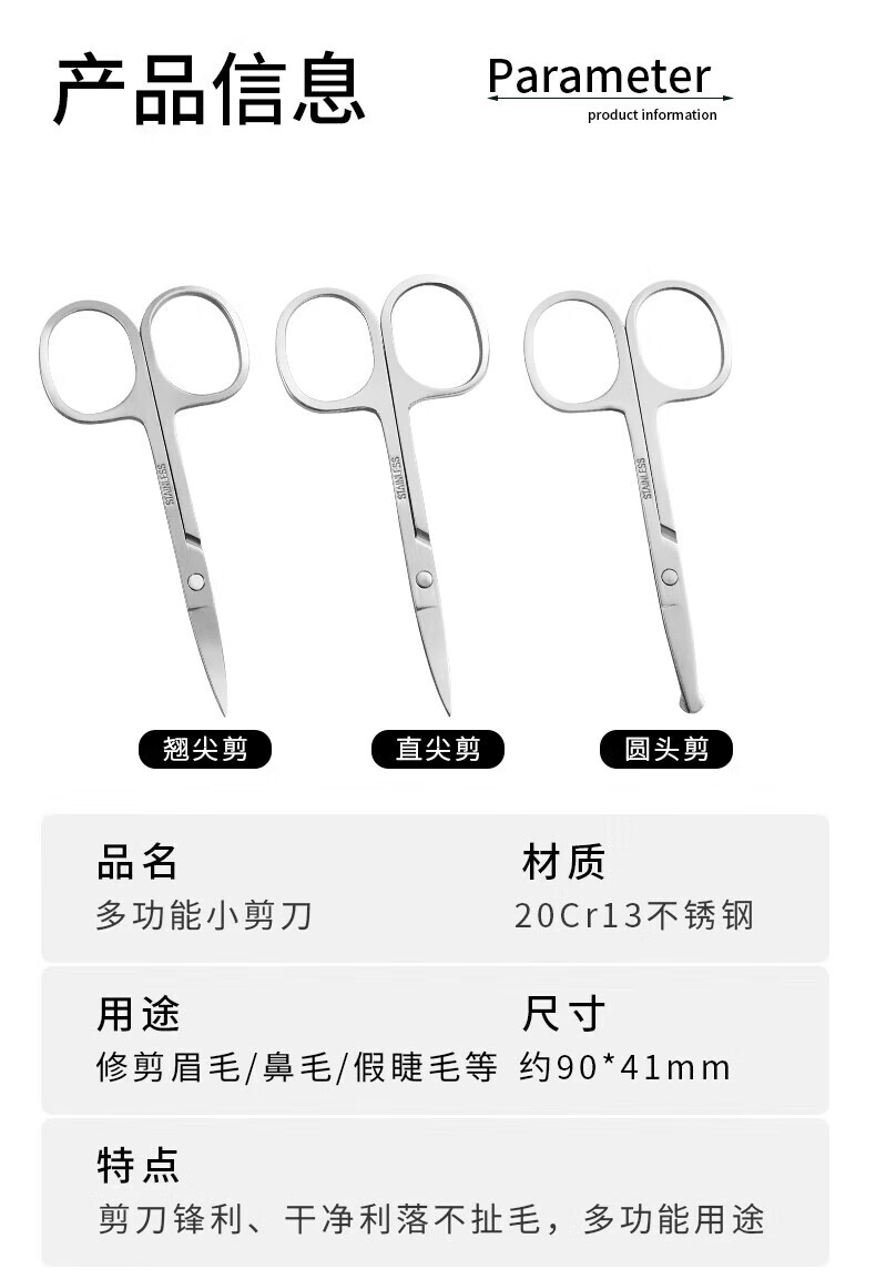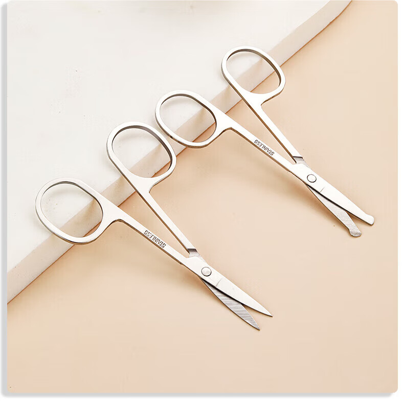 Eyebrow trimming scissors eyebrow nose hair trimmer men's stainless steel pointed beauty eyelashes makeup small scissors beauty artifact straight cut + tip + round tip