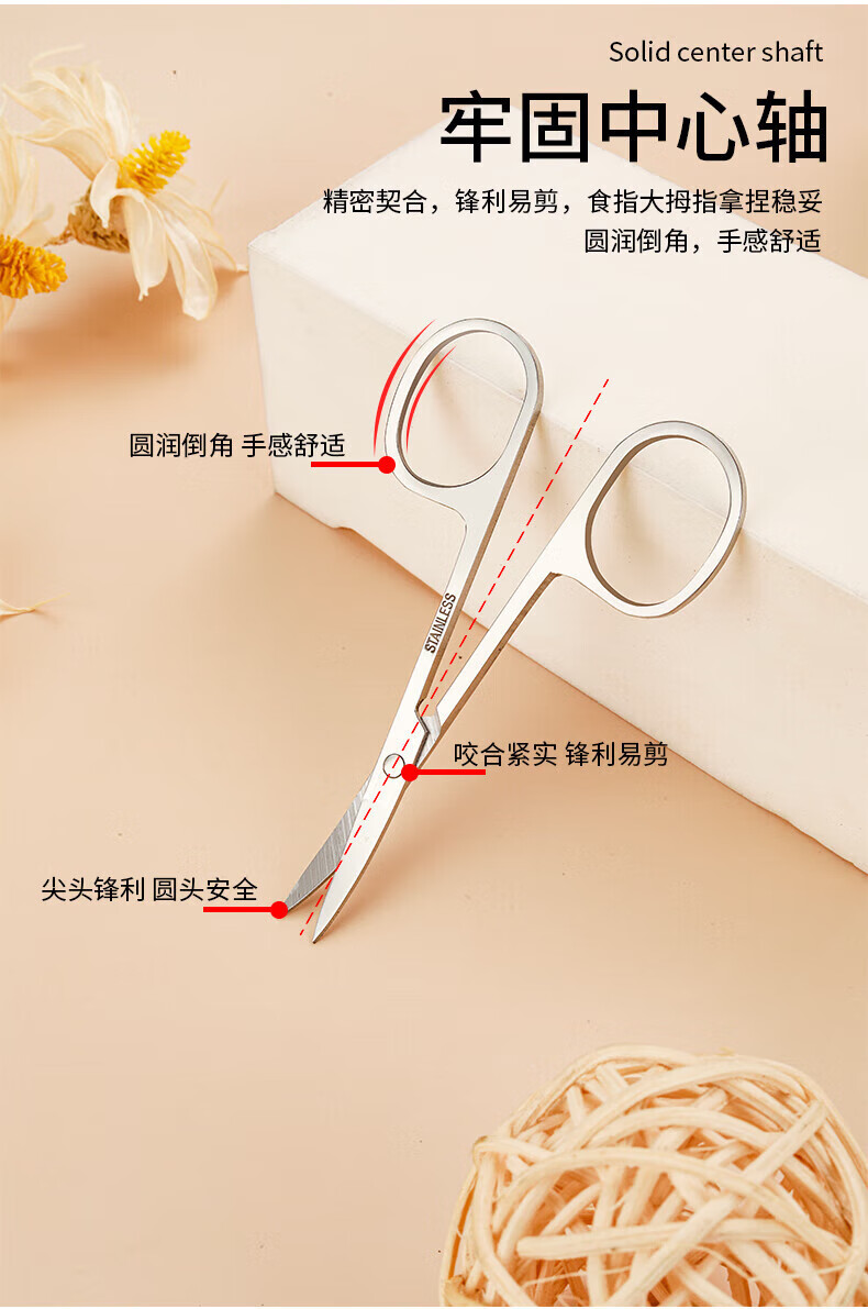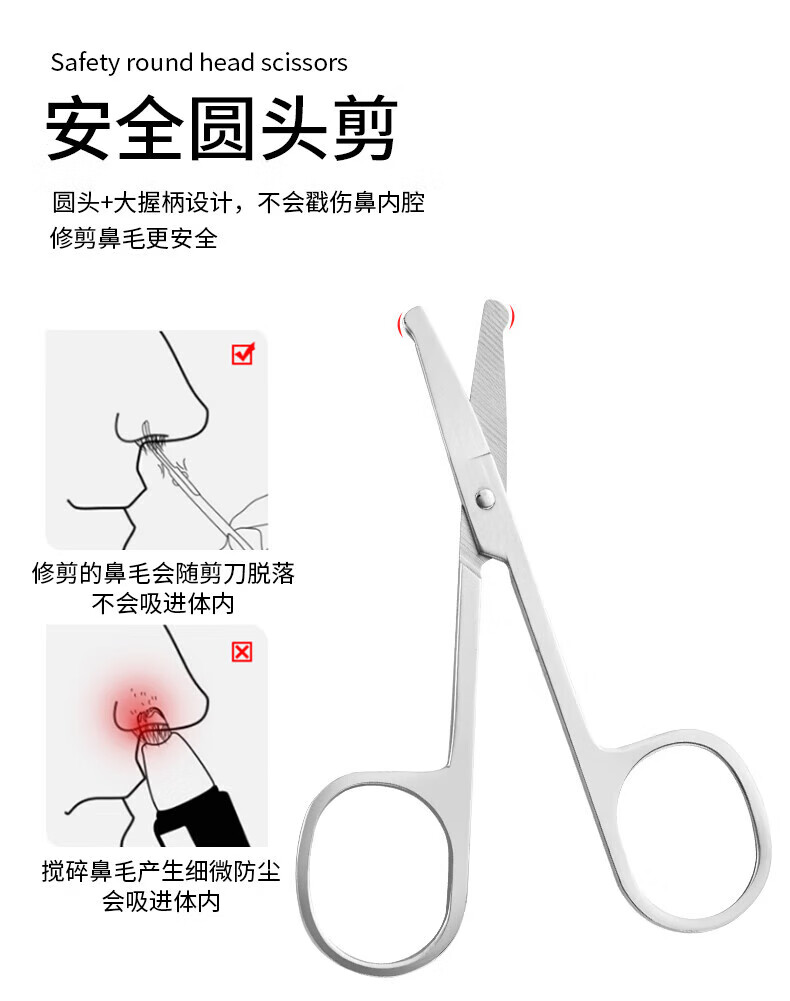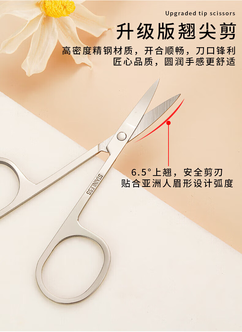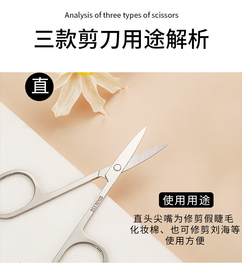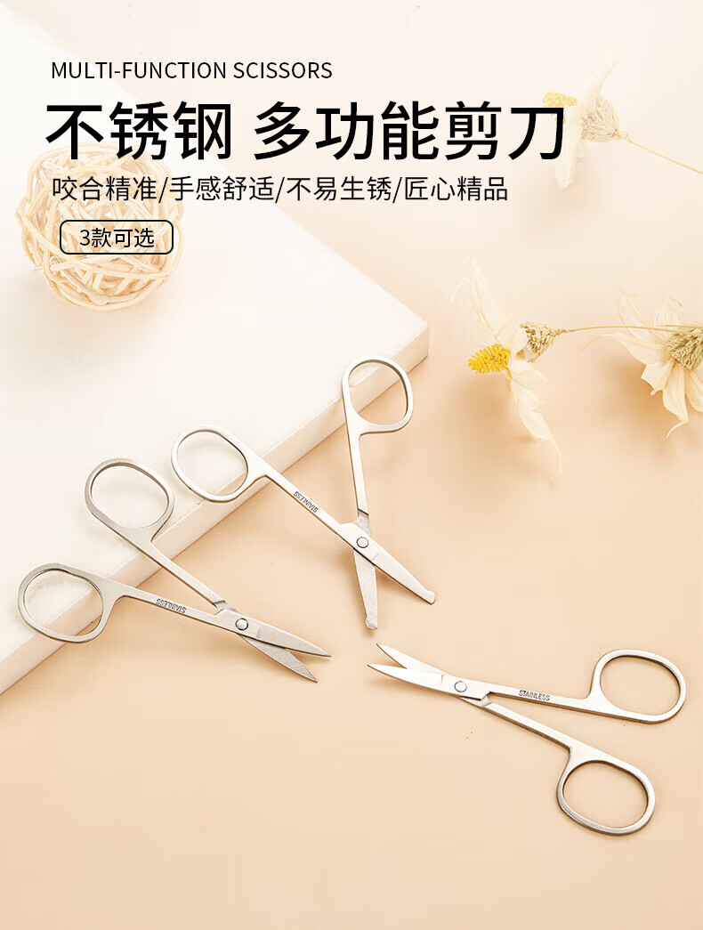 Eyebrow trimming scissors eyebrow nose hair trimmer men's stainless steel pointed beauty eyelashes makeup small scissors beauty artifact straight cut + tip + round tip