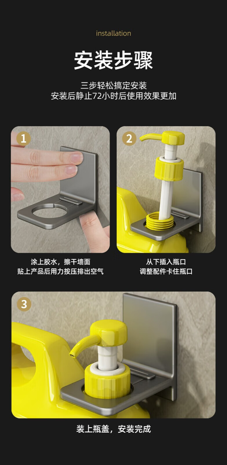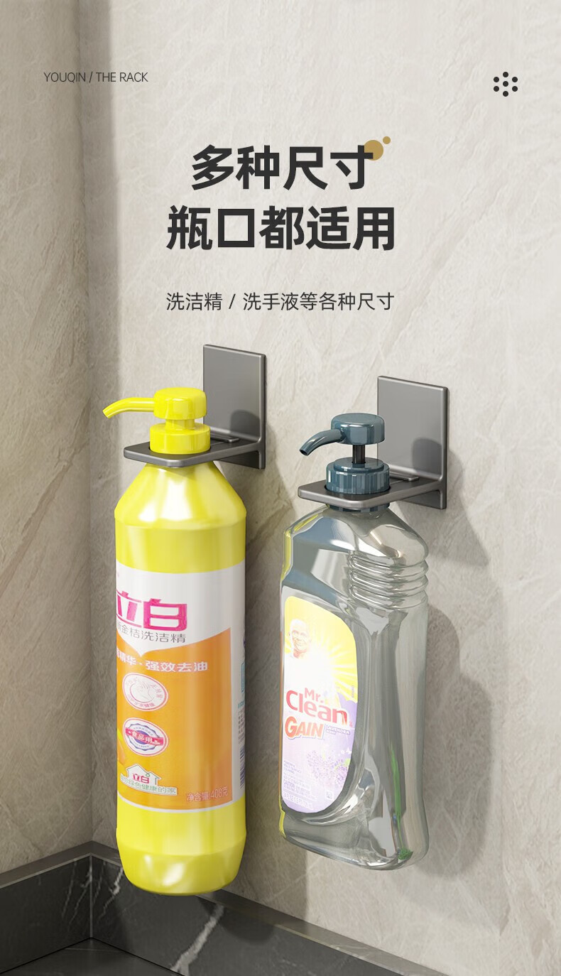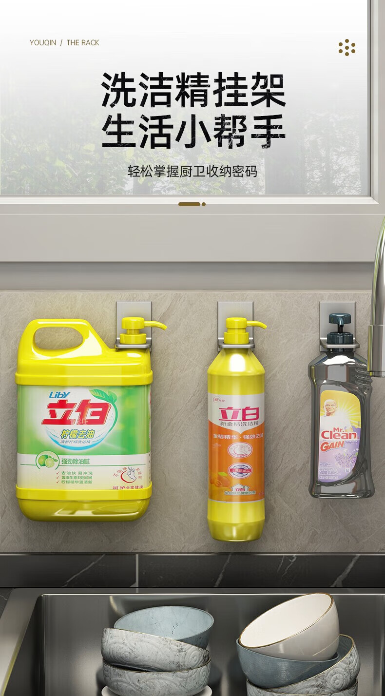 YOUQIN Gun Gray Kitchen Storage Rack Dishwashing Liquid Rack No Punching Wall-mounted Sink Hand Sanitizer Bracket Storage Artifact (Gun Gray) 2 Pack High Strength Load-bearing + Size Available