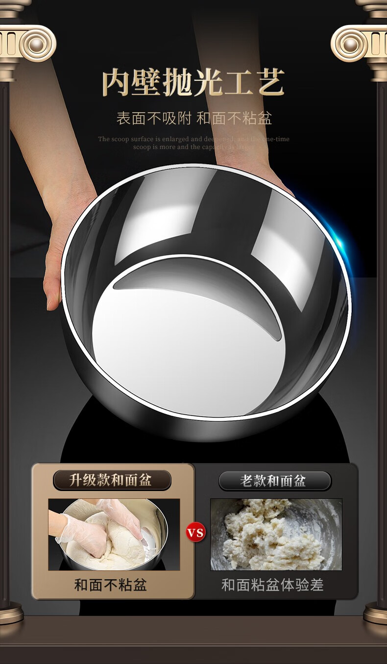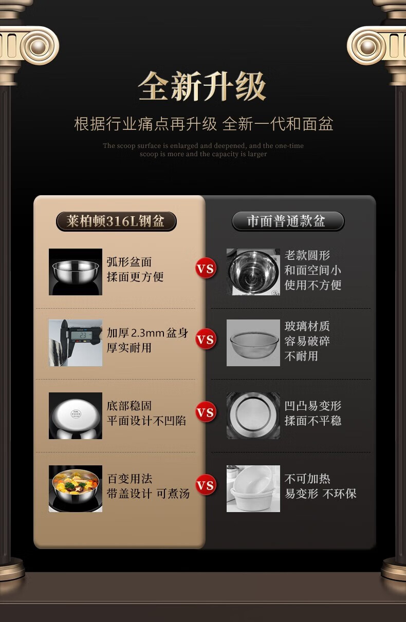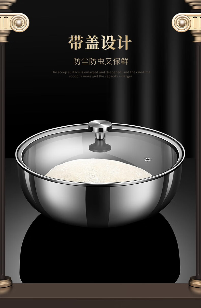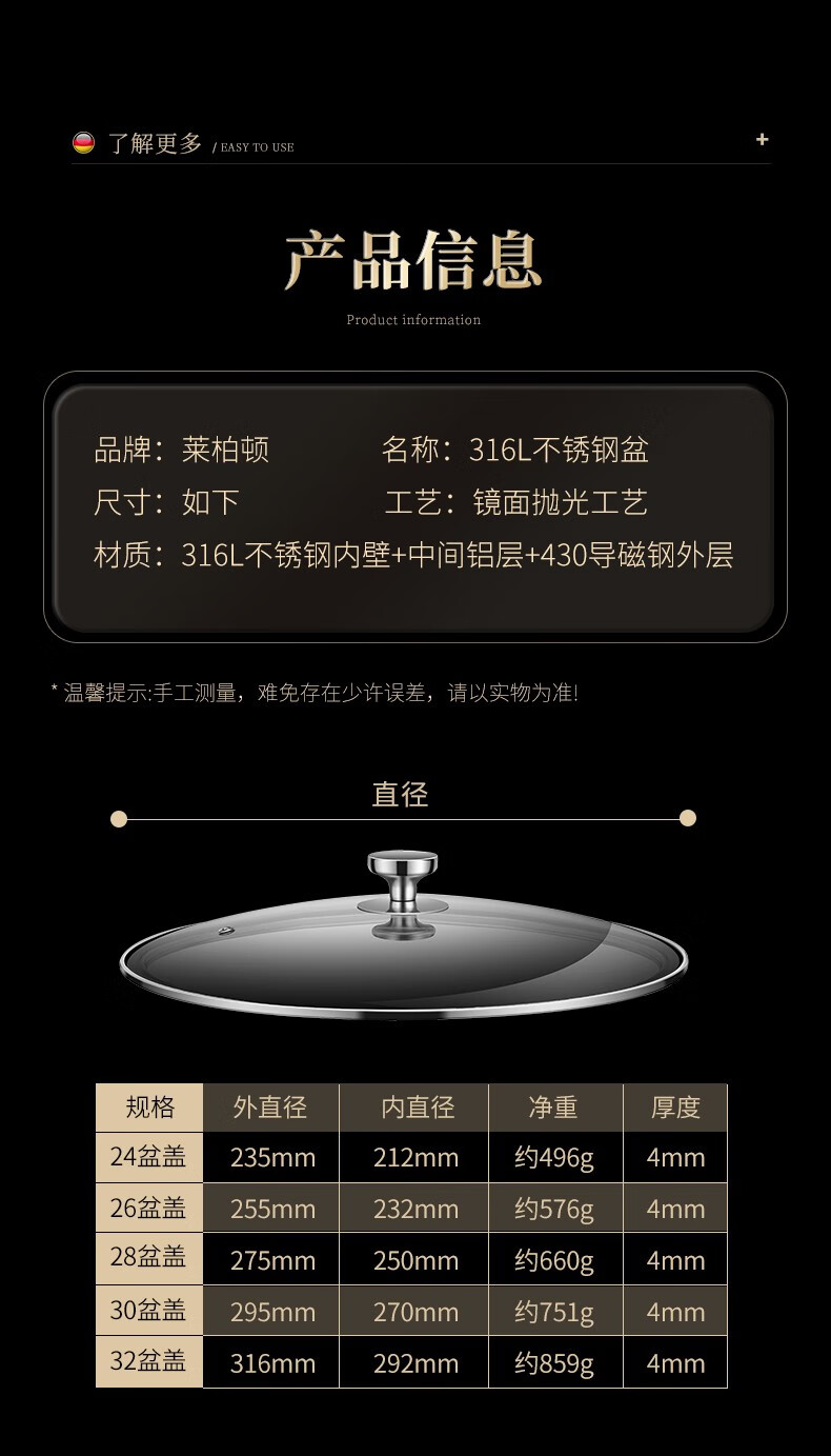 Laberton 316 stainless steel basin and basin with lid food grade household thickening dough kneading vegetable basin washing bottle basin inner diameter 36cm basin + tempered glass lid 13.5L